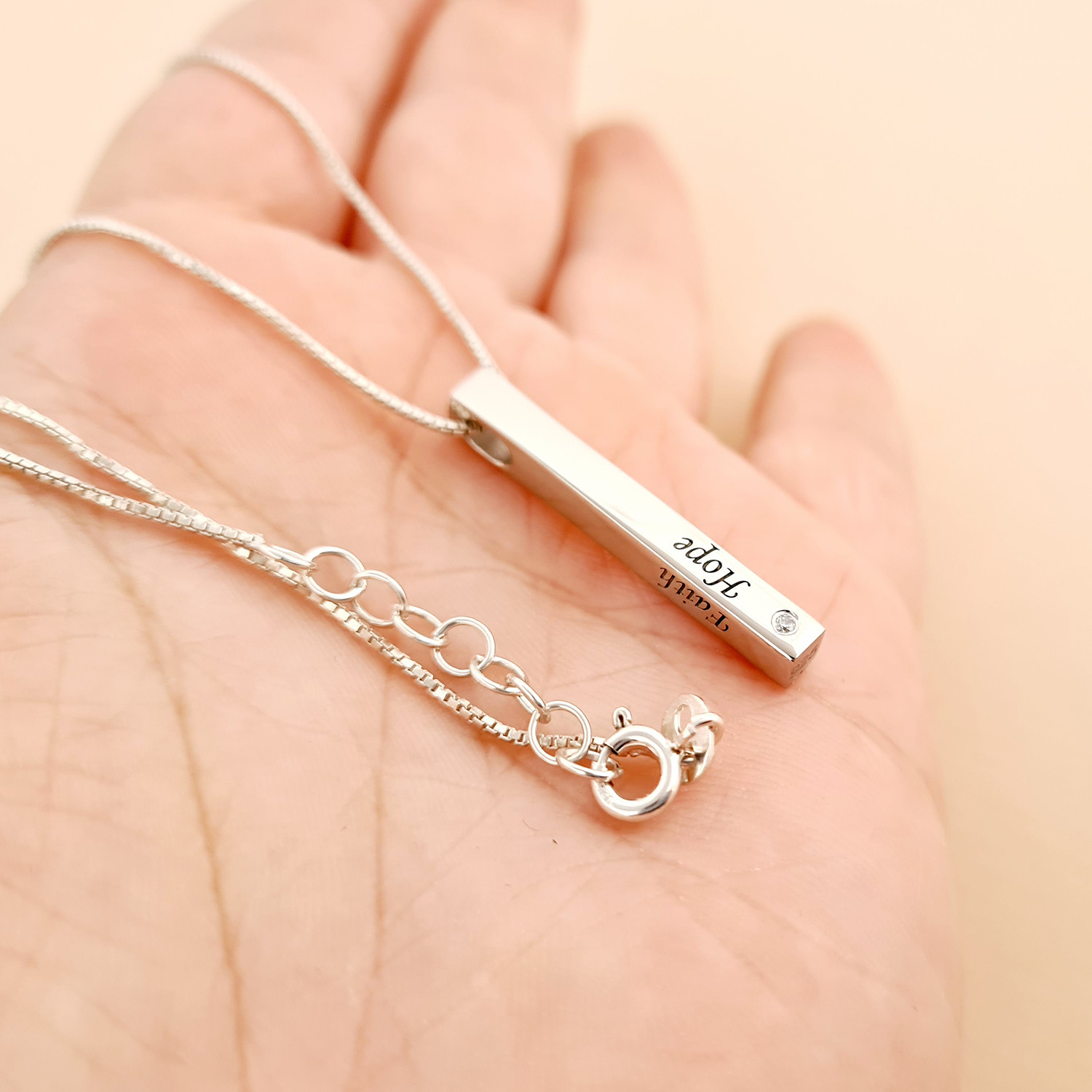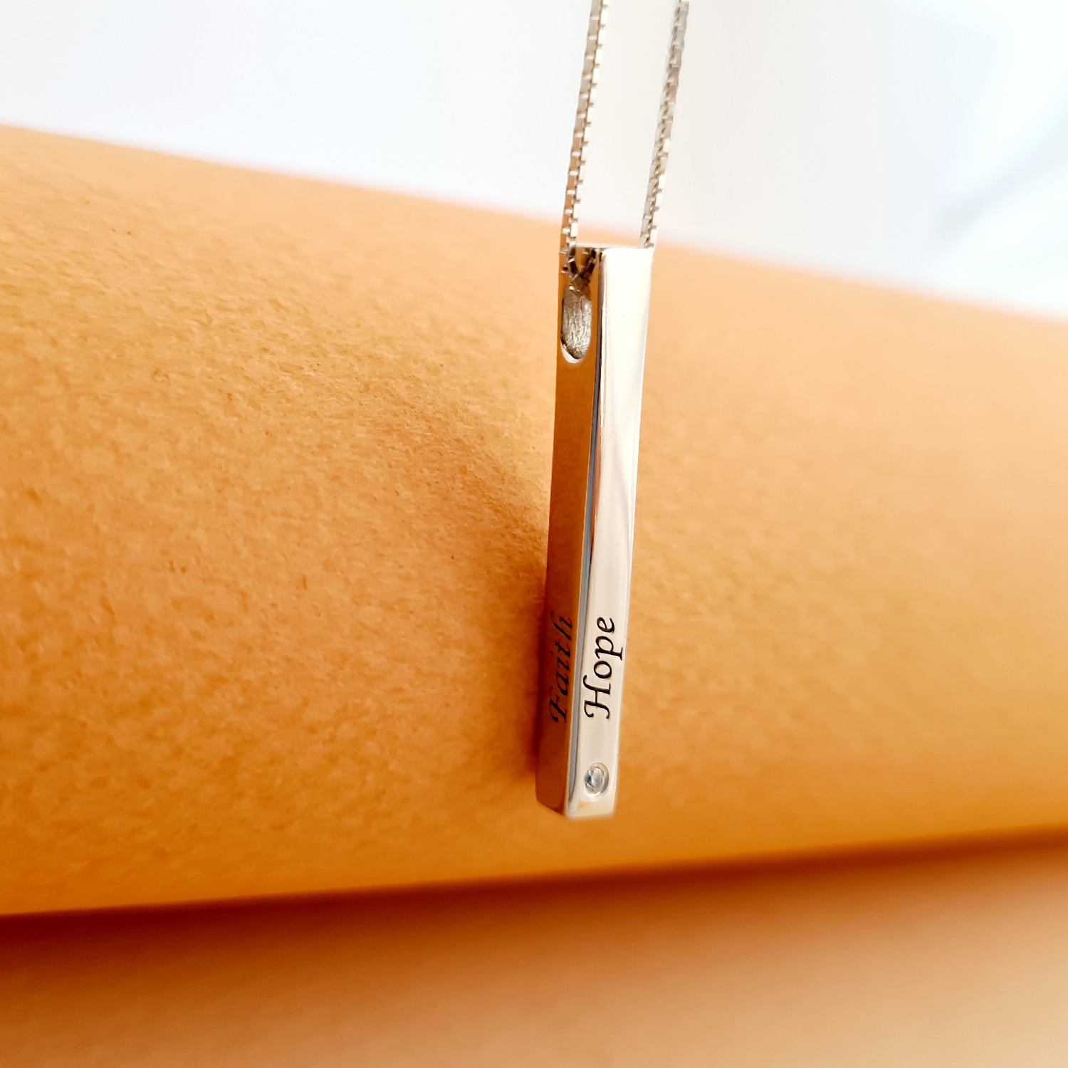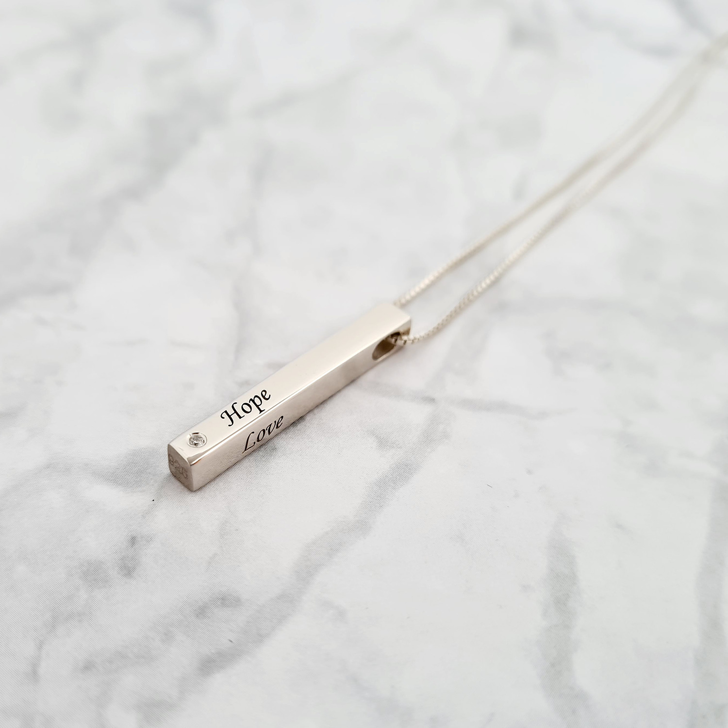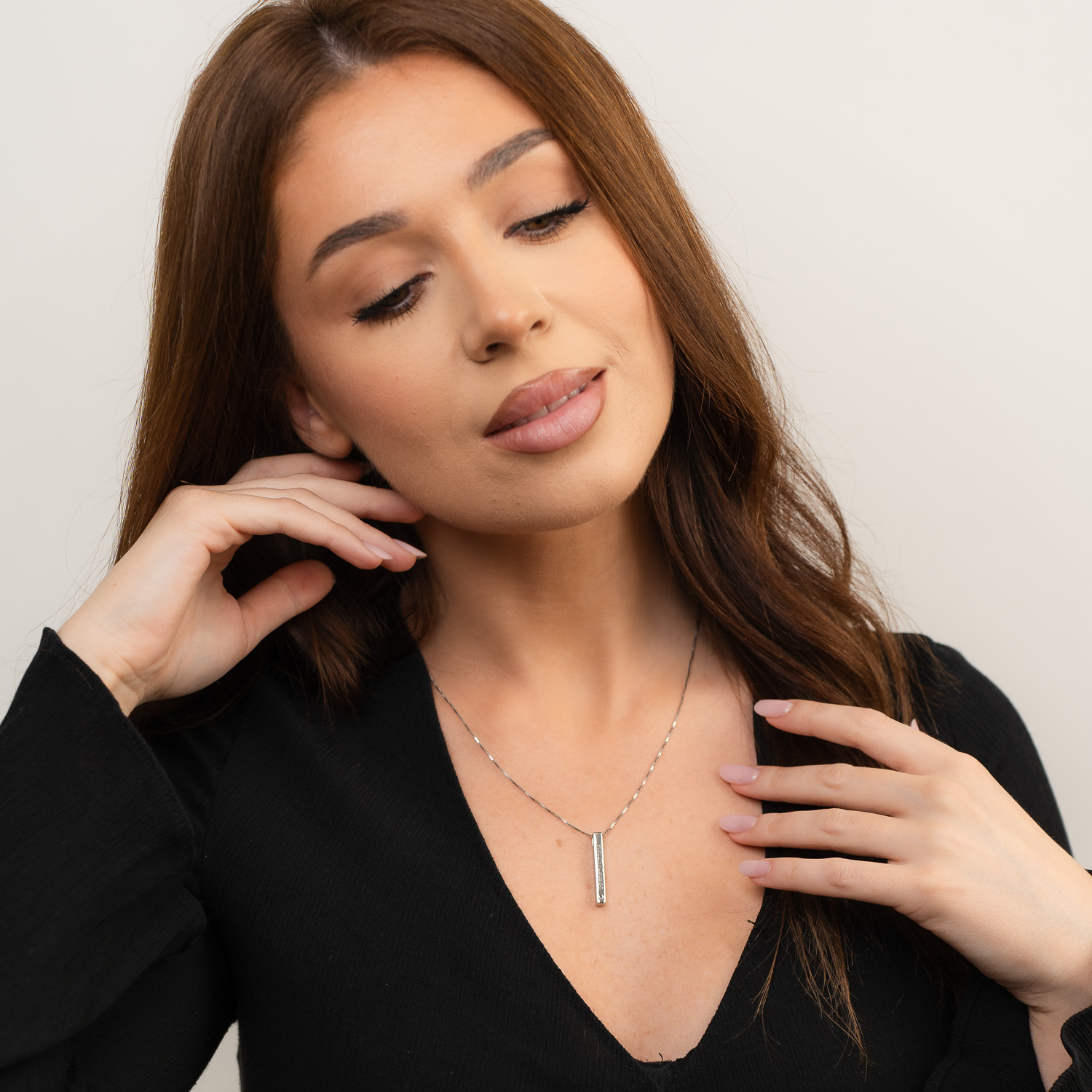 Lantisor cu Diamant natural - Pandantiv personalizat bara plina Argint masiv - Argint 925 Rodiat