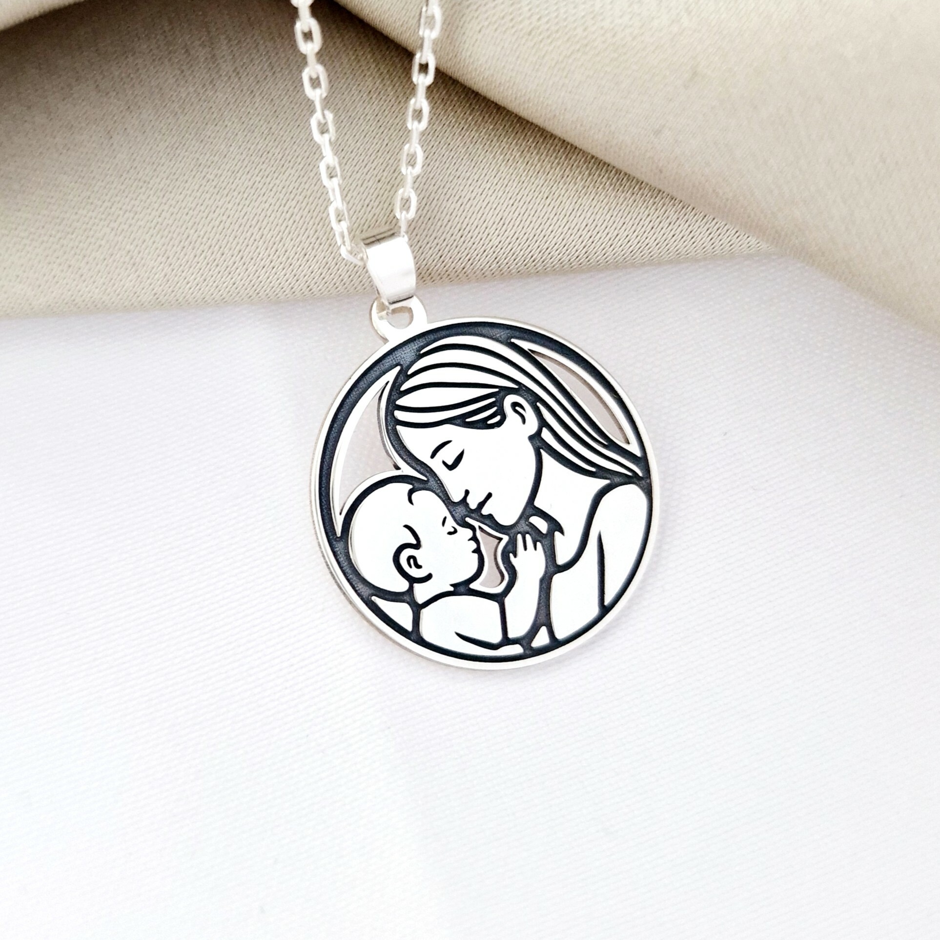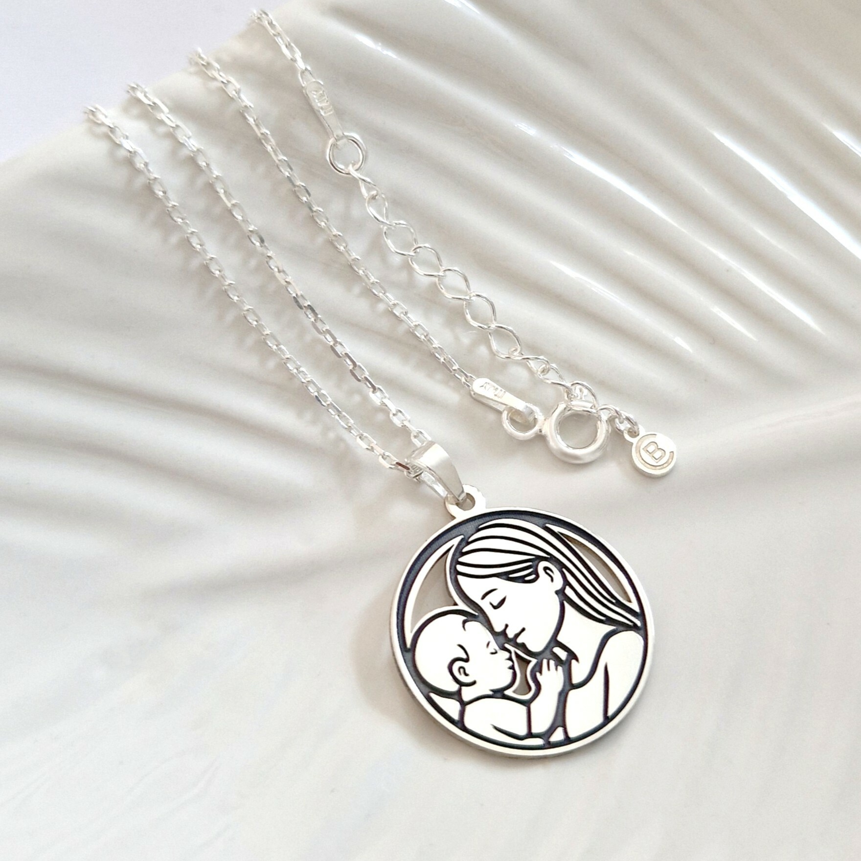 Acest lănțișor din Argint 925 surprinde emoția unică dintre mamă și bebeluș într-un medalion rotund cu gravură fină. Designul delicat și lanțul forzatina completează perfect simbolul iubirii necondiționate. Este o piesă de suflet, creată pentru a fi purtată cu dragoste și mândrie.