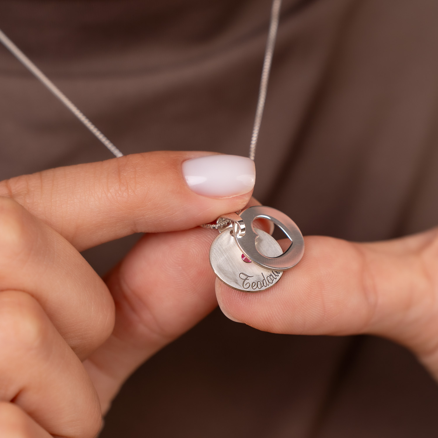 Pandantivul reprezinta o versiune noua a colierelor medalion cu mesaj ascuns. Acesta este creat dintr-un banut finisat mat cu un Cristal Swaorovski in mijloc si un mesaj gravat pe margine roata. Un al banut finisat lucios are decupat in centru o inima si este suprapus intr-o asezare perfecta peste banutul personalizat. Impreuna formeaza un pandantiv deosebit.