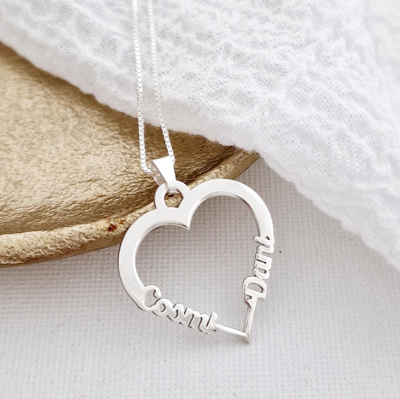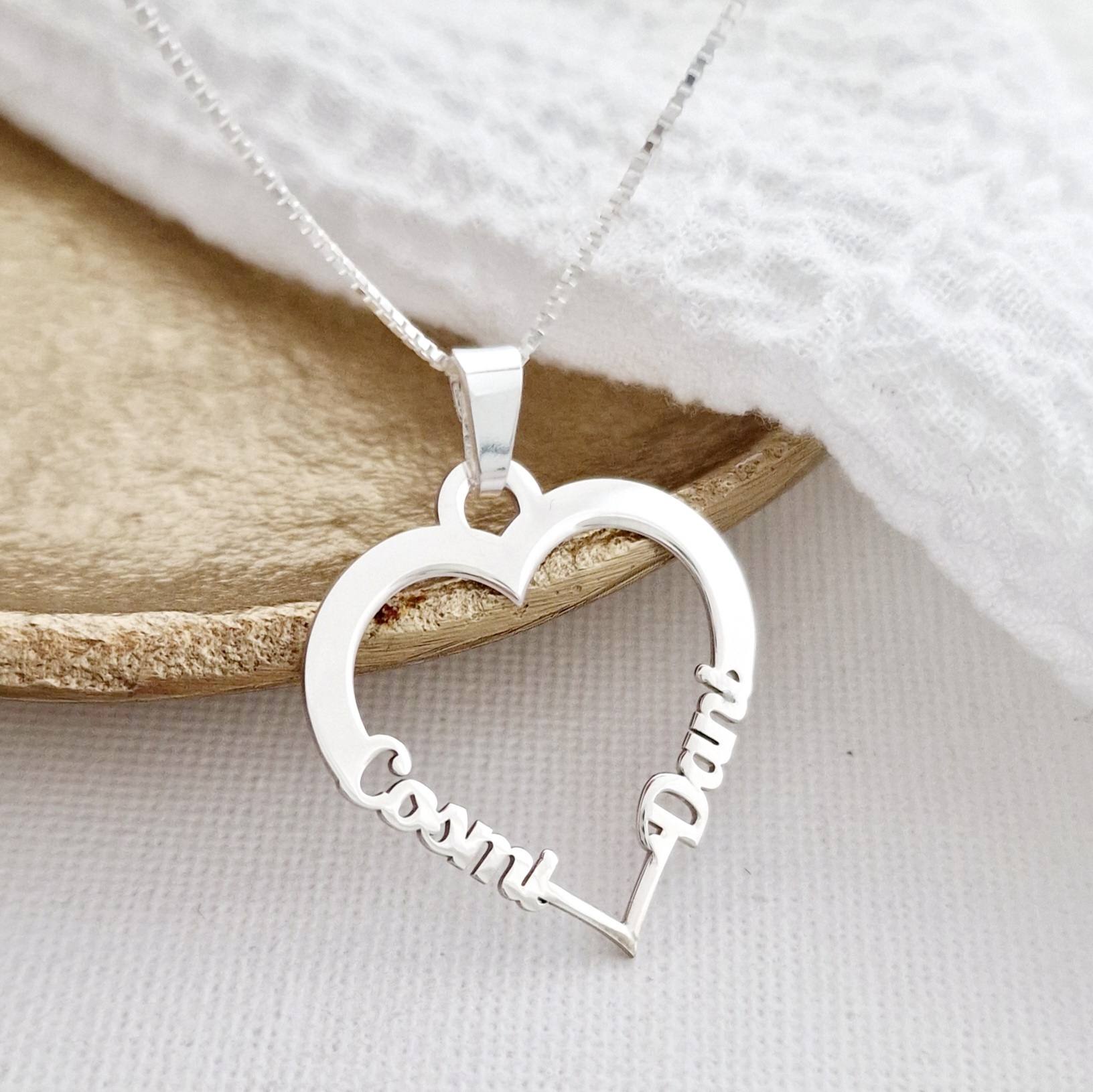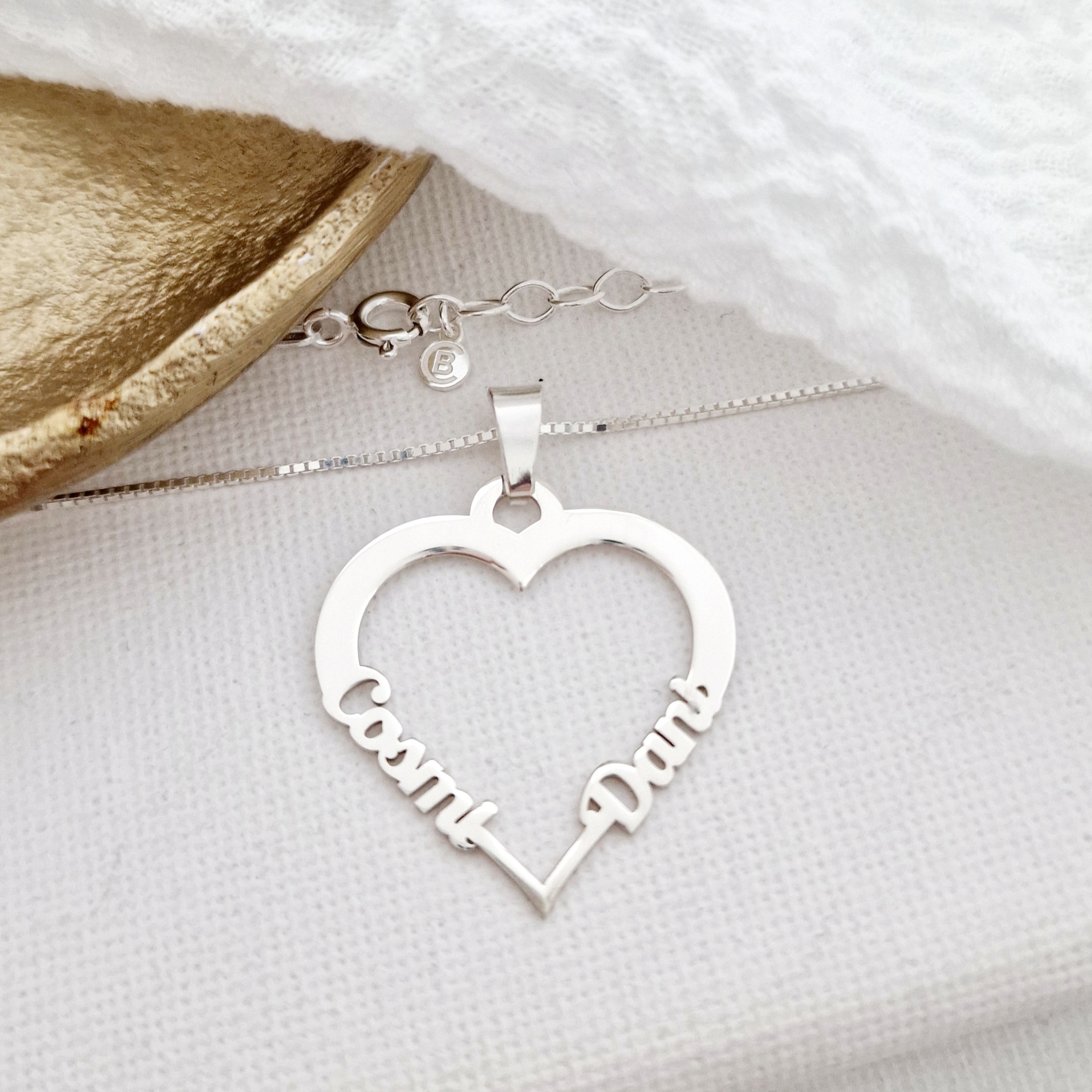 Lantisor cu pandantiv Inima - 2 nume decupate lateral - Argint 925