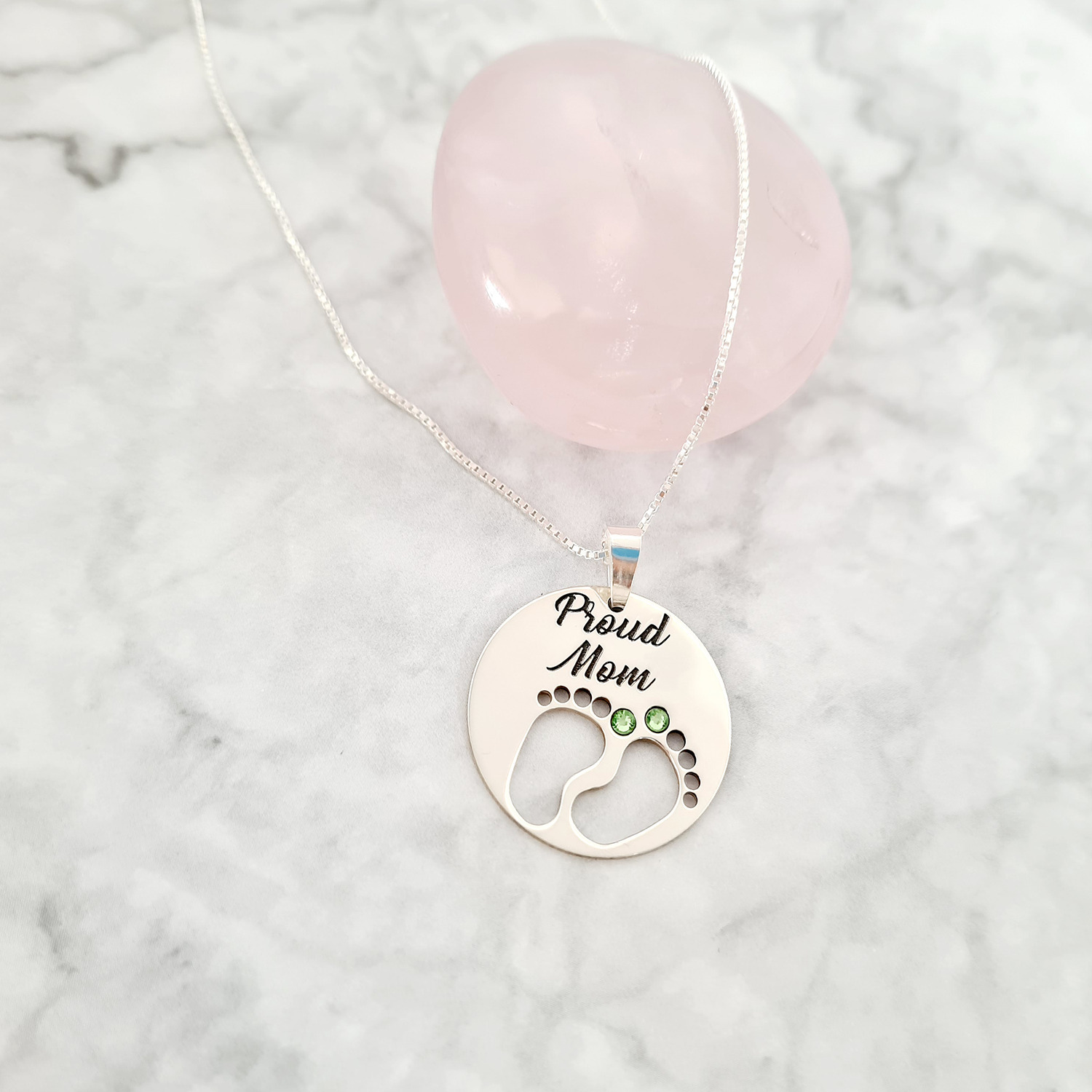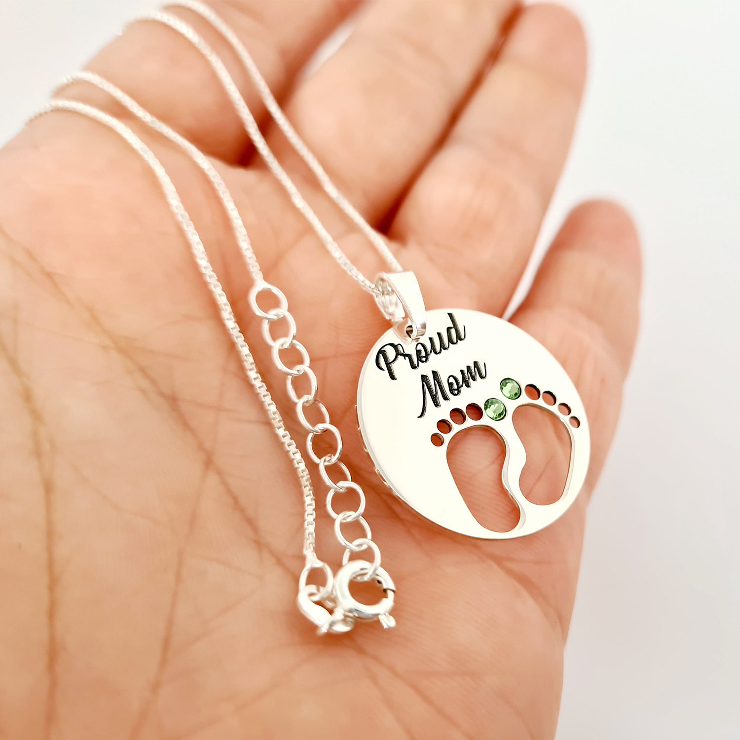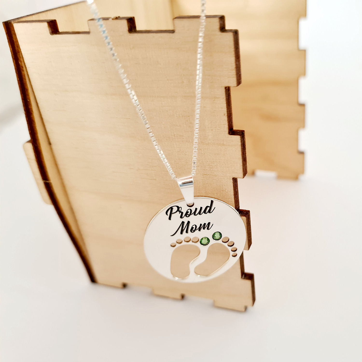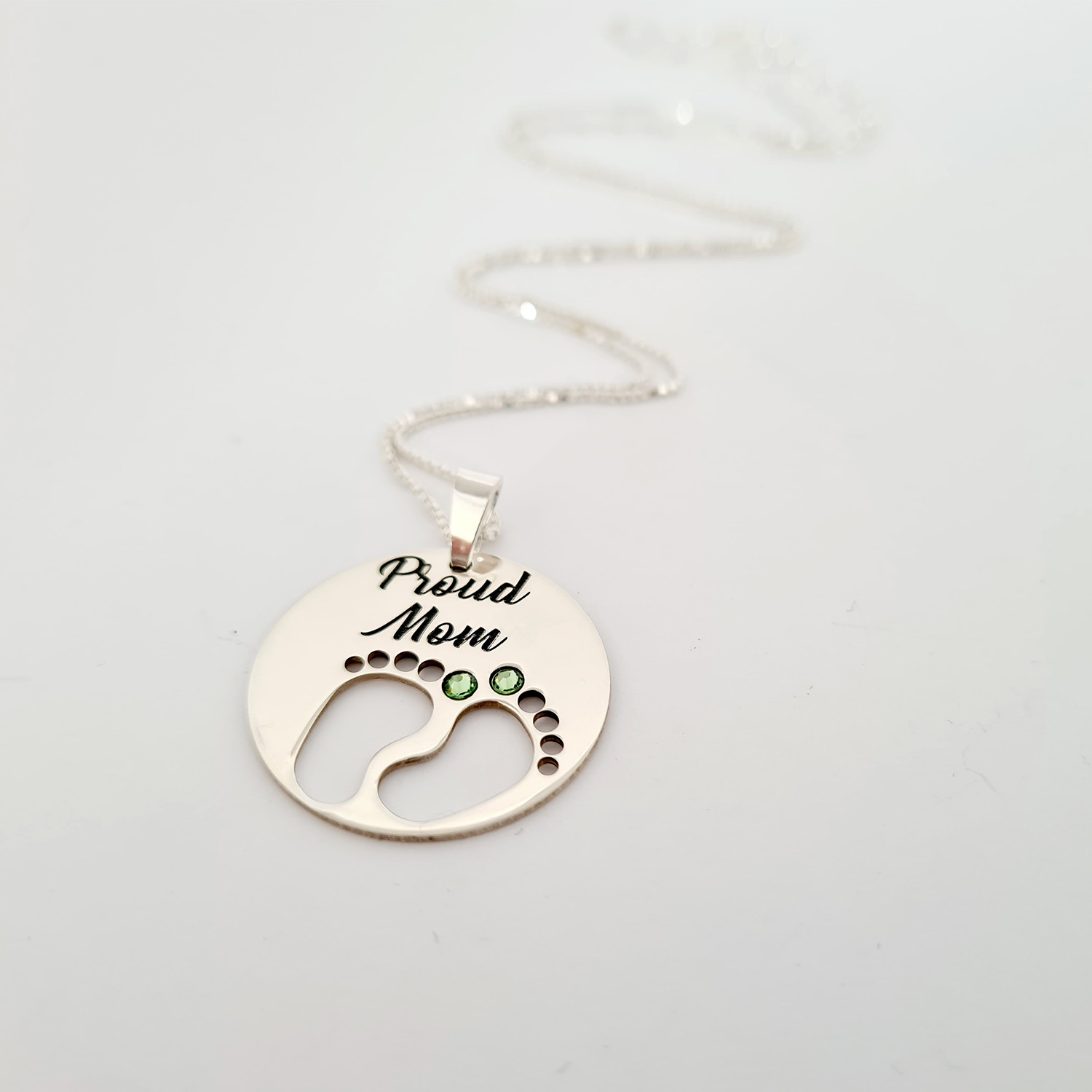 Lantisor cu pandantiv personalizat - Proud mom - Picioruse decupate cu cristale Swarovski - Argint 925