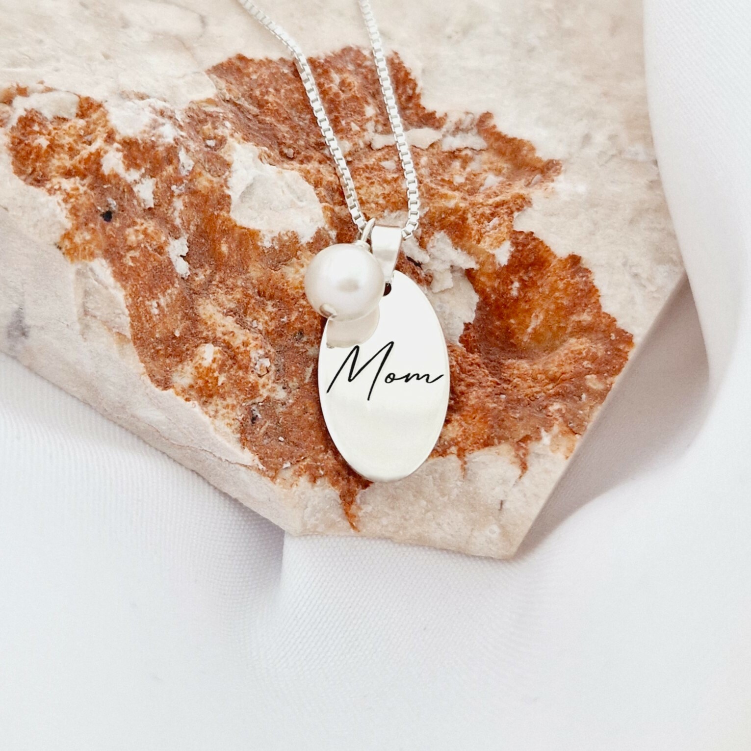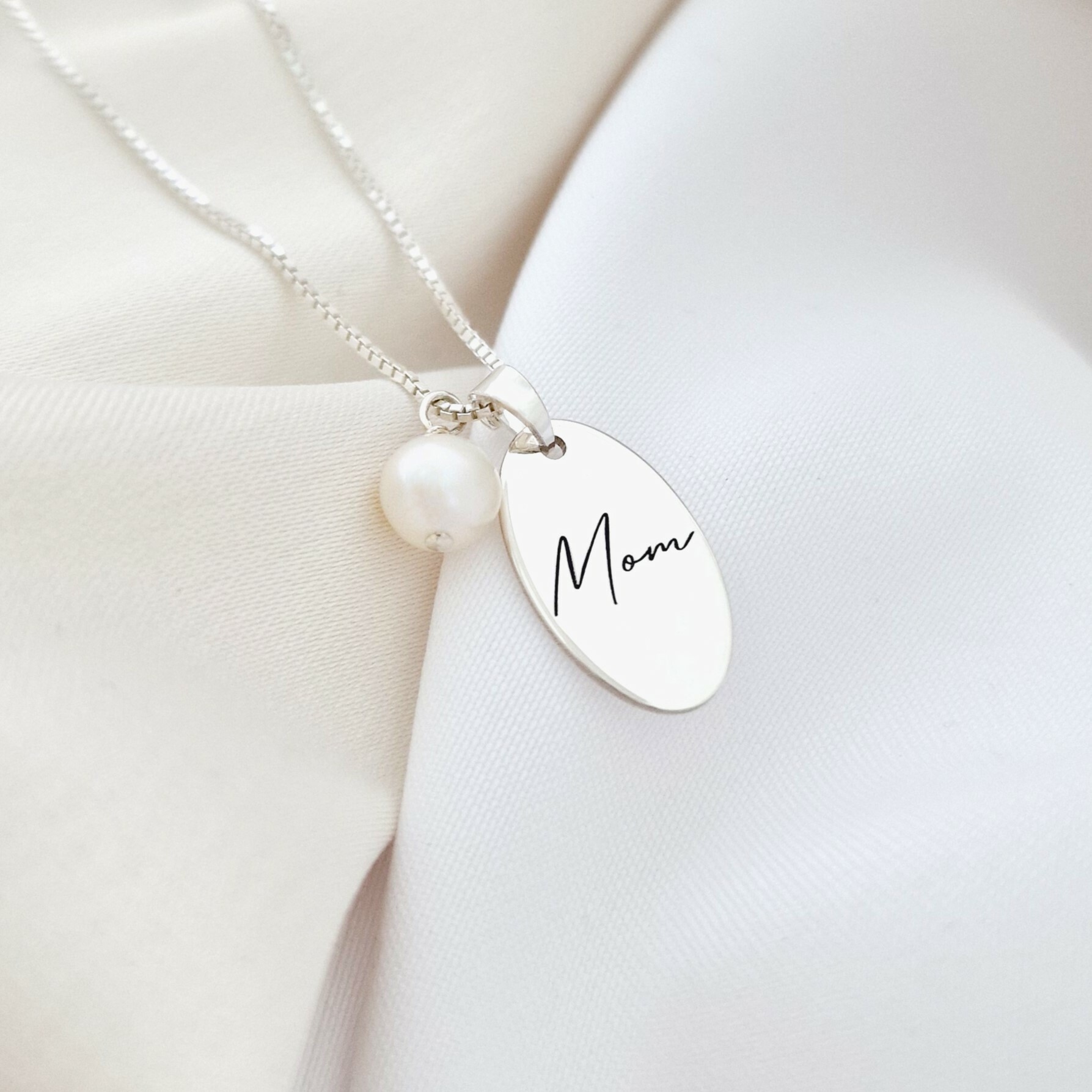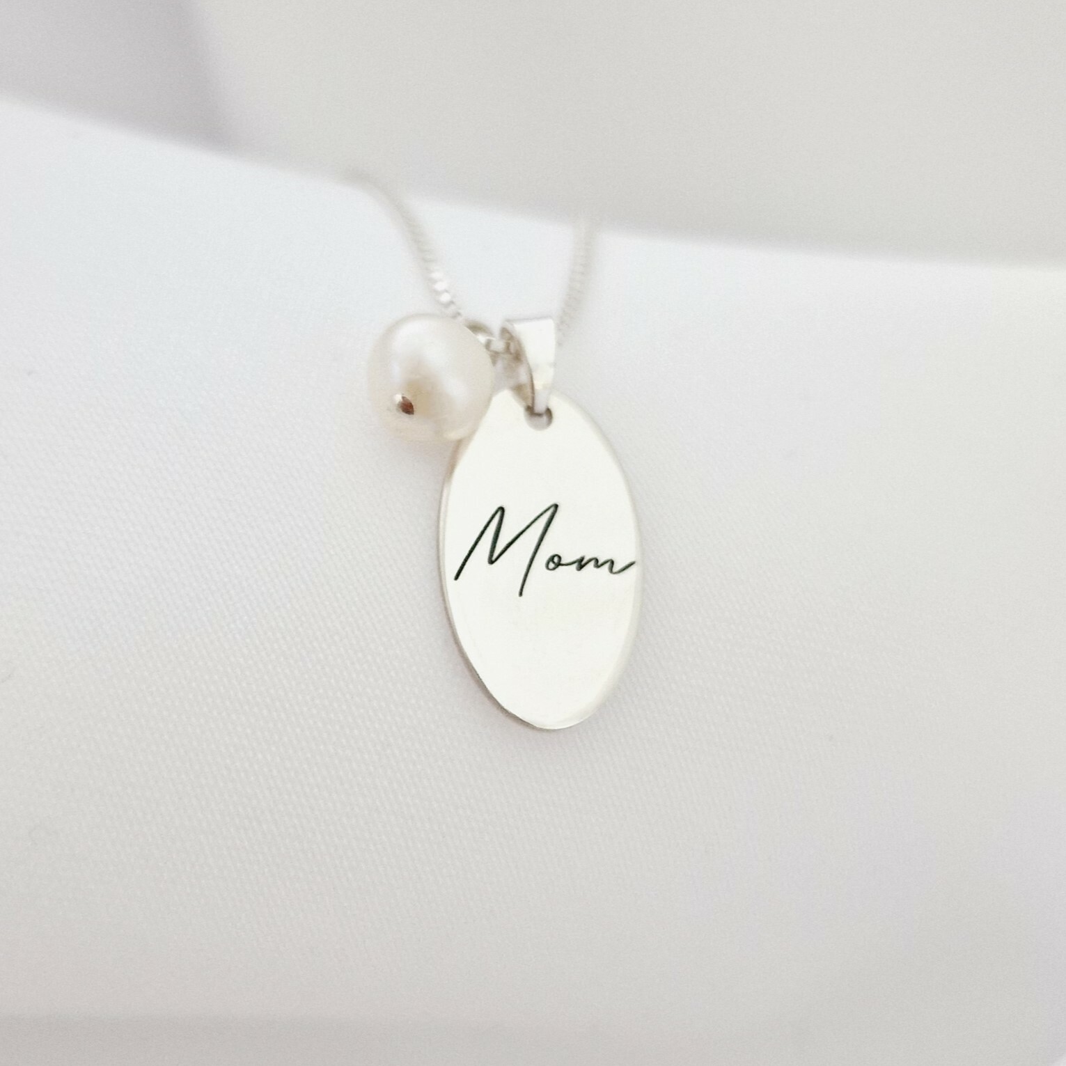 Lantisor cu picatura de Perla - Model pandantiv oval MOM -Argint 925