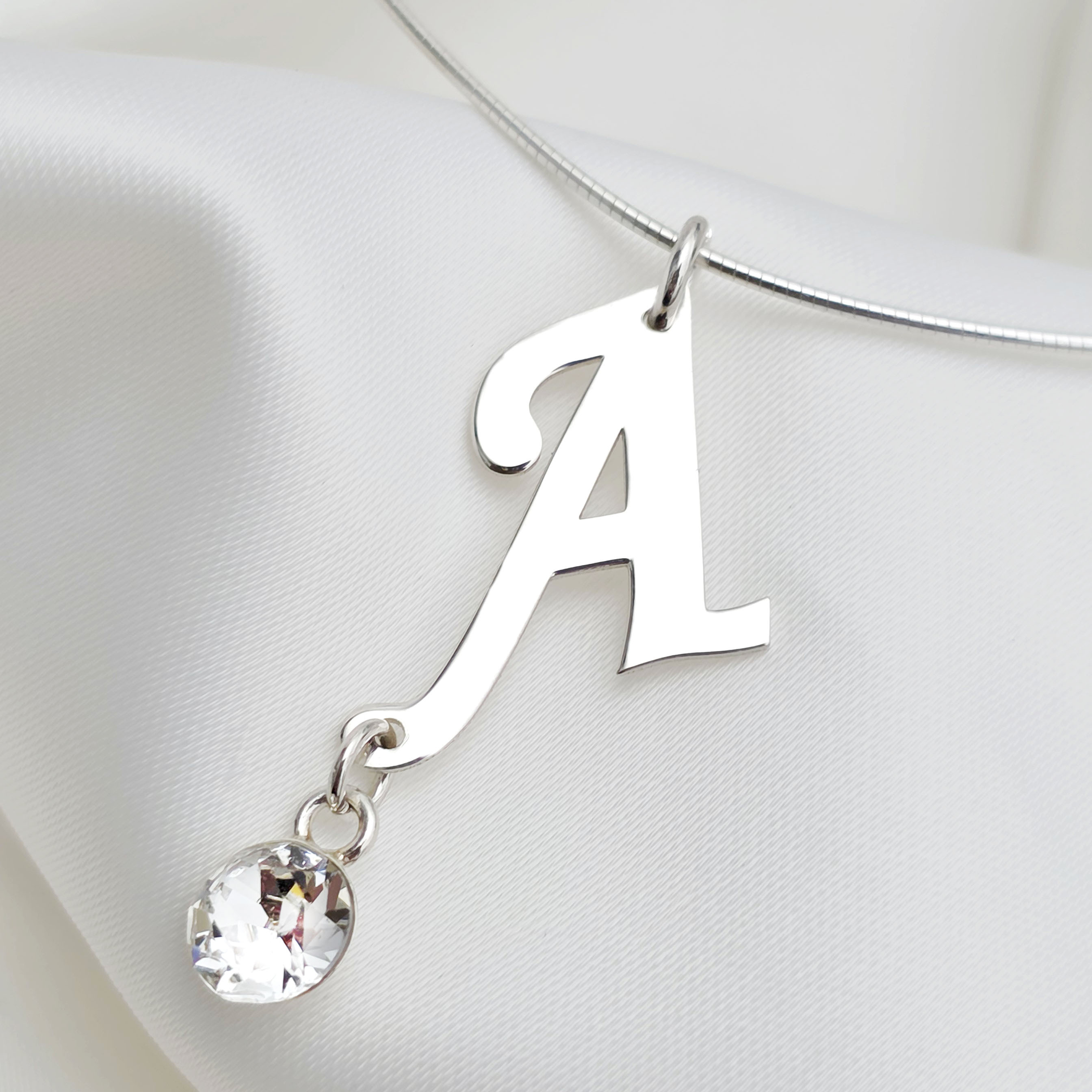 Lantisor fix - Pandantiv cu initiala personalizata si Cristal Swarovski - Argint 925