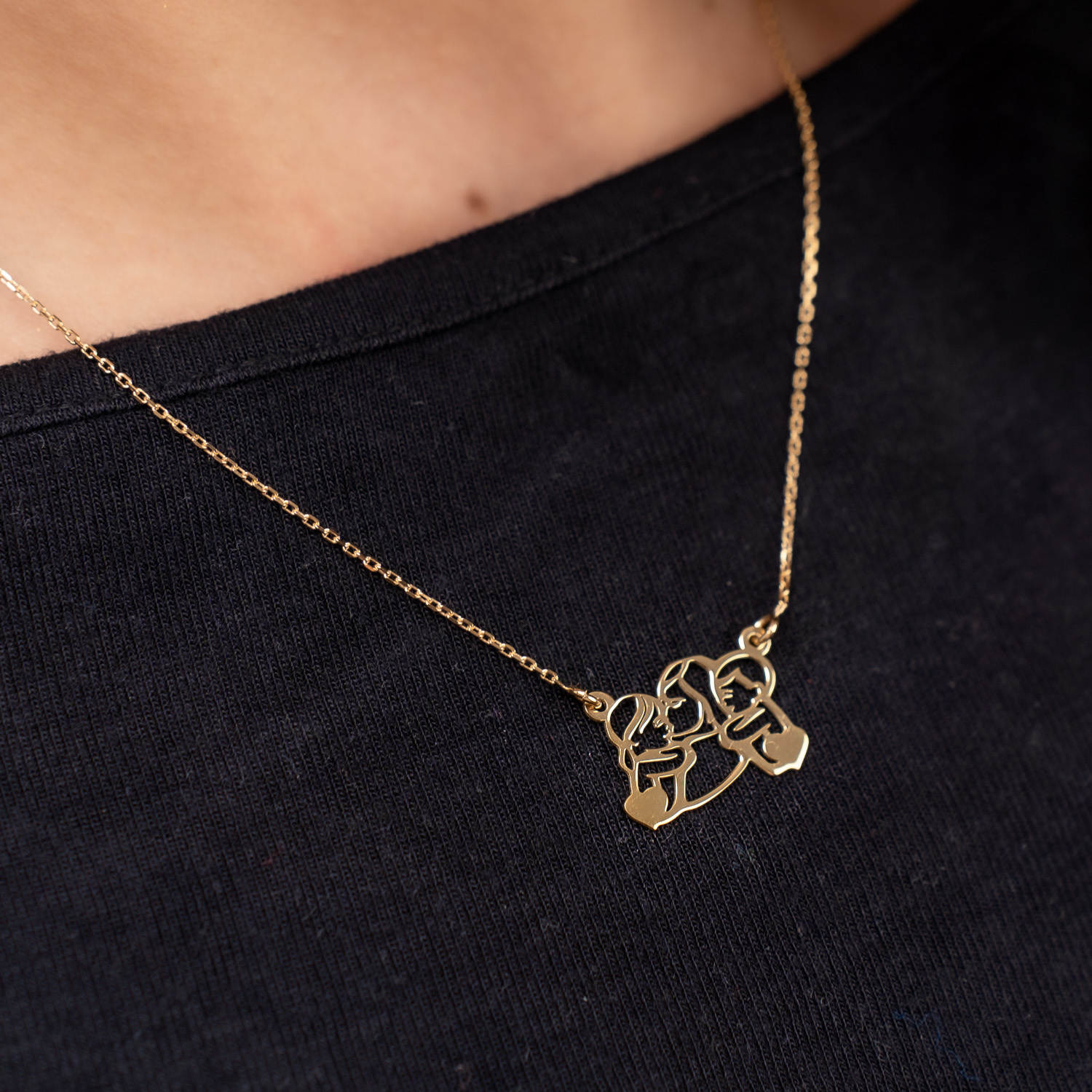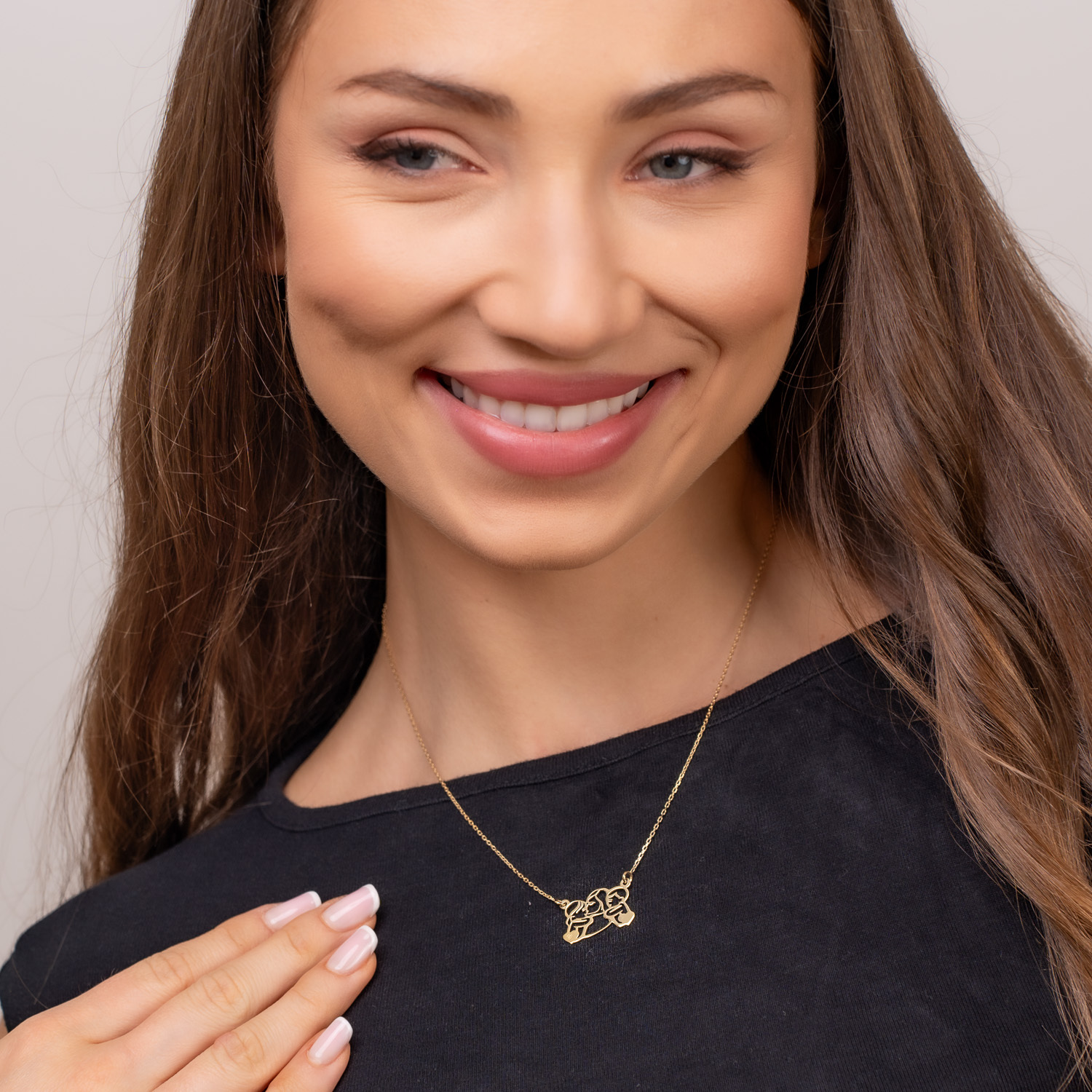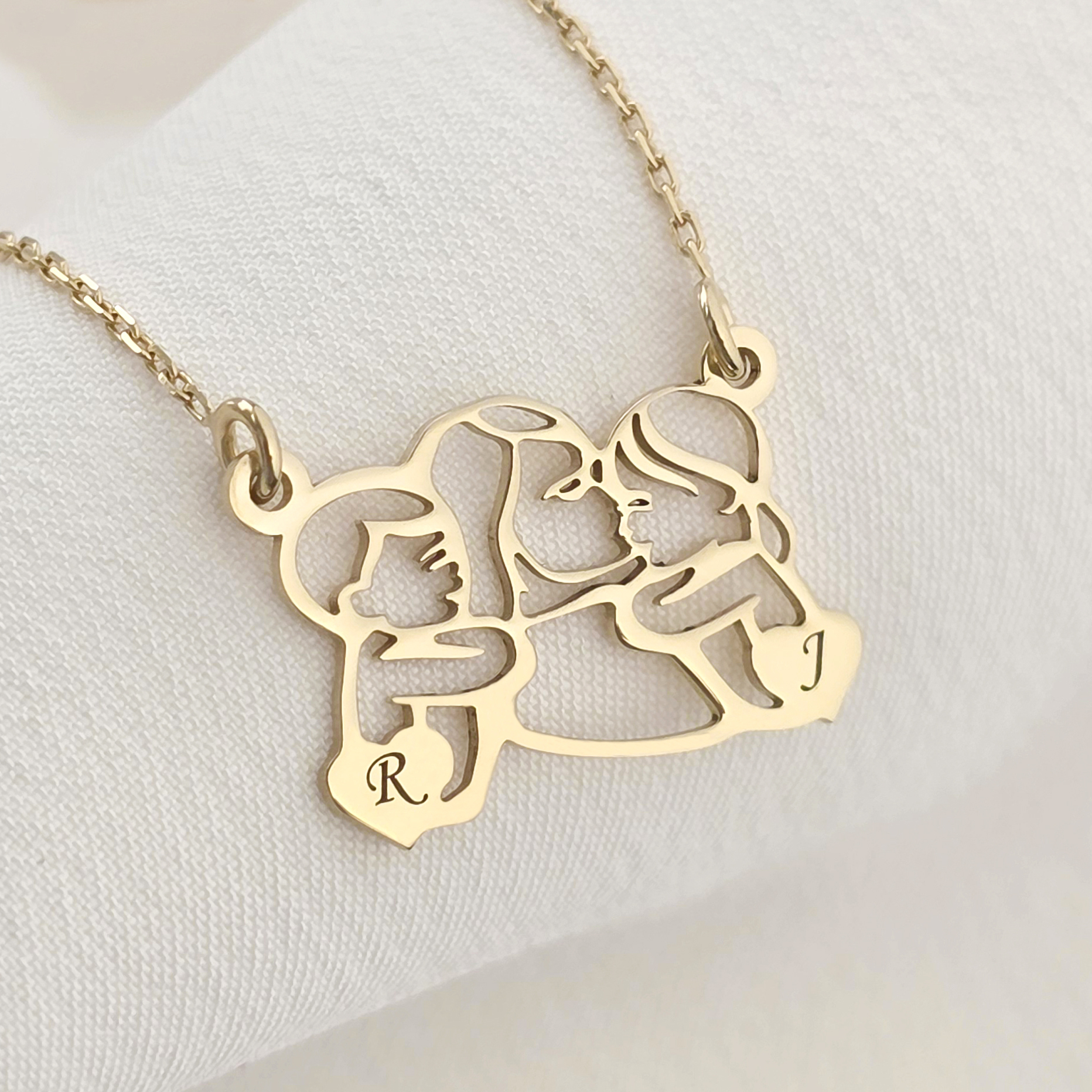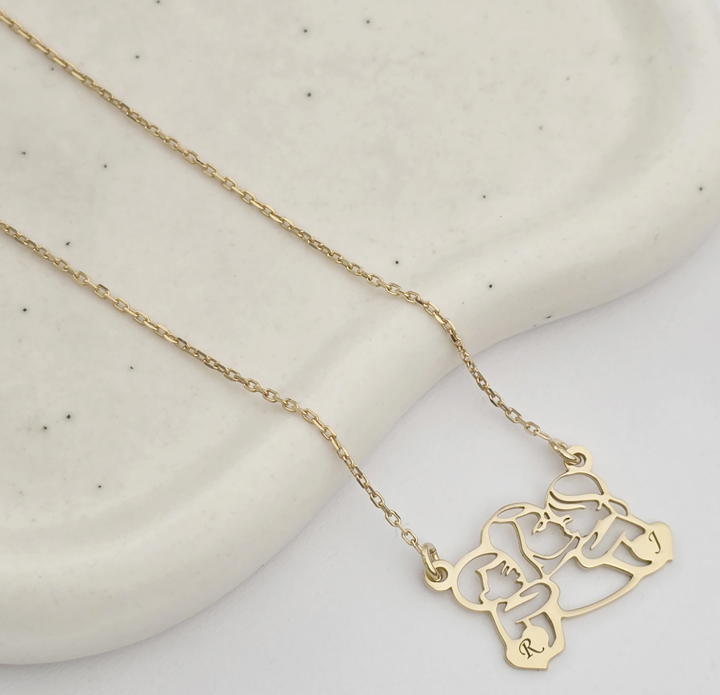 Lantisor In inima mamei - Pandantiv Mama&copii si inimi cu initiale - Argint 925 placat cu Aur Galben 18K