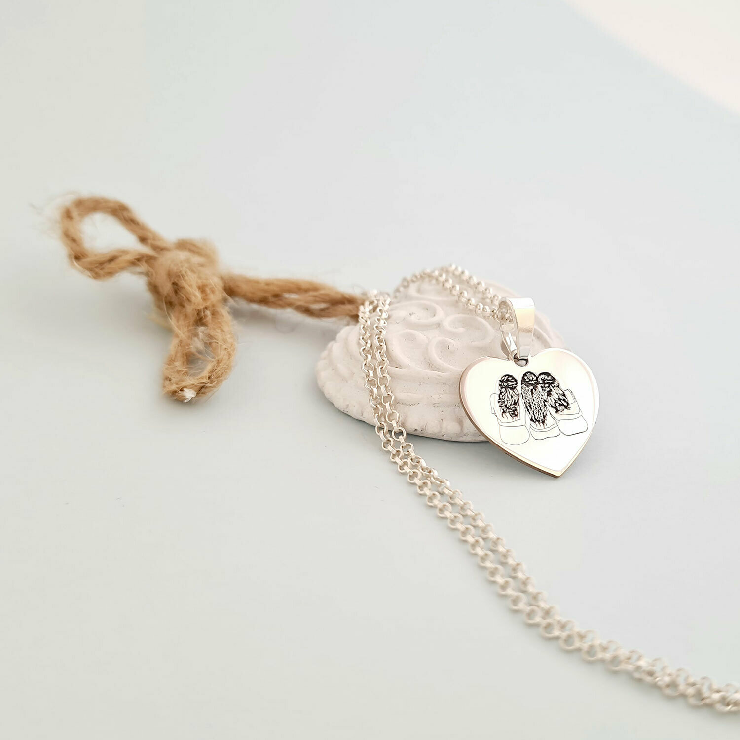 Lantisor inima 3 Surori/Prietene cu Par Valvoi - Argint 925