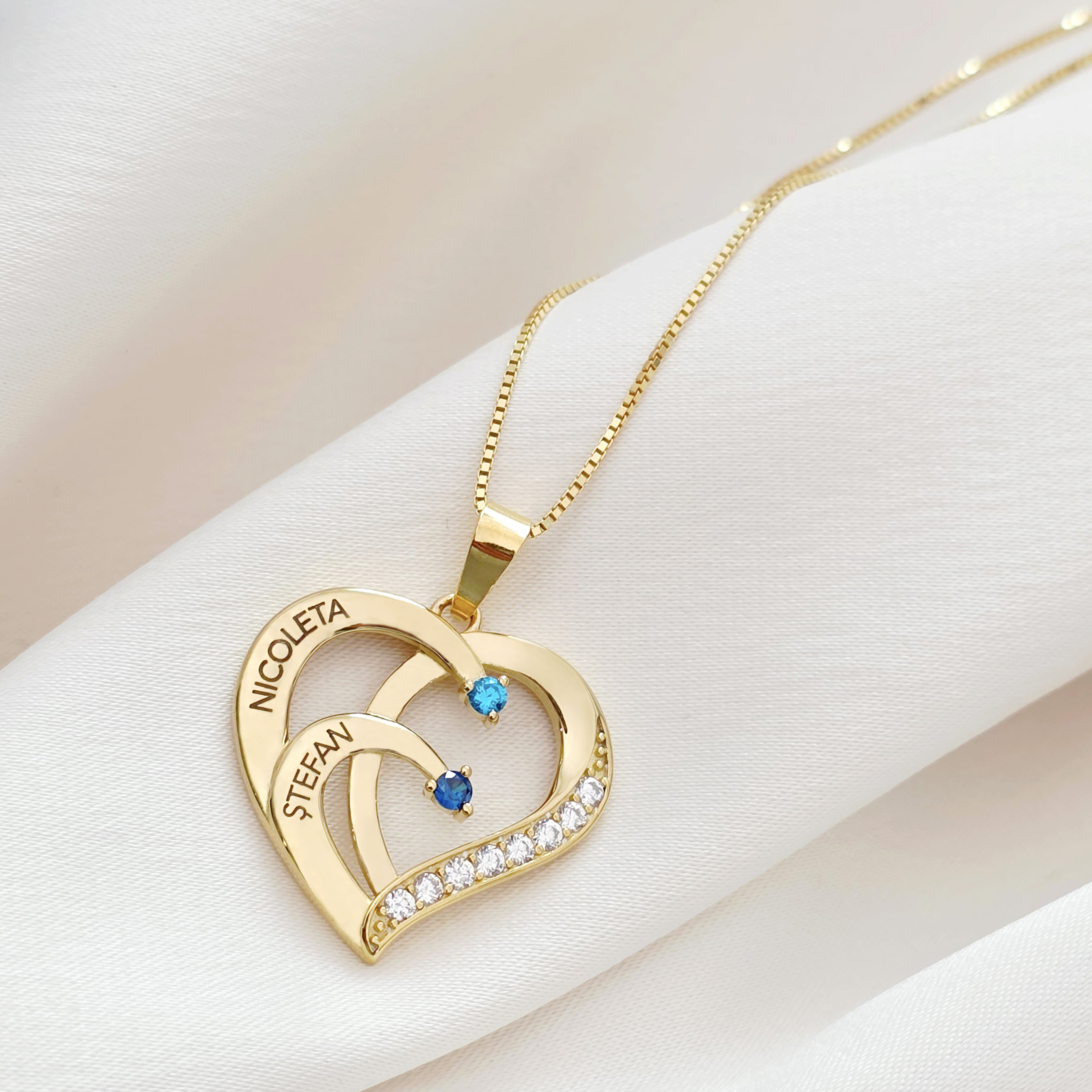 Lantisor Inima cu Poveste - 2 nume si Cristale Zirconia - Argint 925 placat cu Aur 18K
