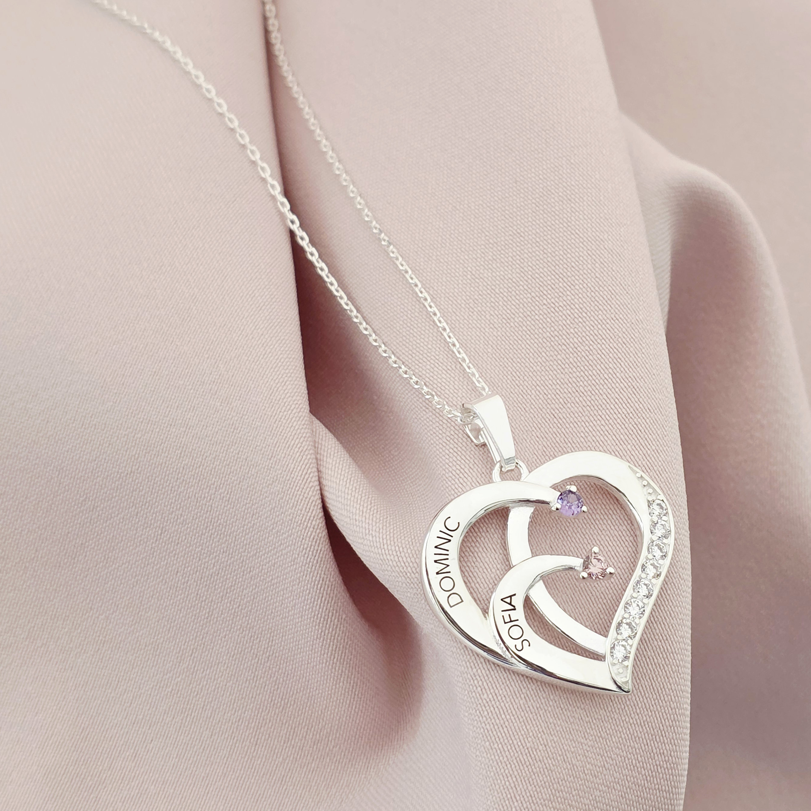 Lantisor Inima cu Poveste - 2 nume si Cristale Zirconia - Argint 925