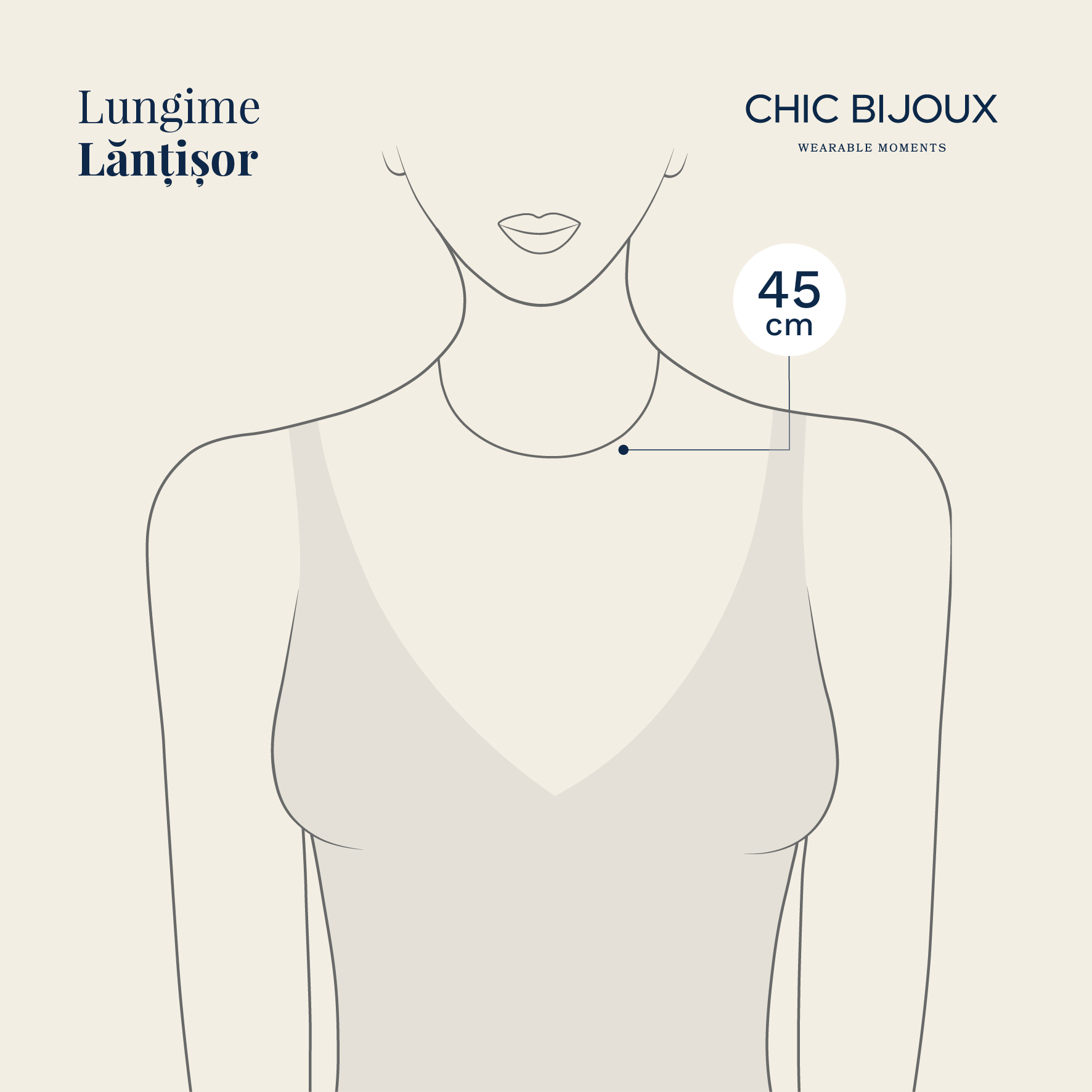 In functie de modelul bijuteriei, fiecare are mentionata pe pagina de produs dimensiunea lantisorului. Dimensiunile noastre standard incep de la 38 cm si ajung pana la 48 cm.