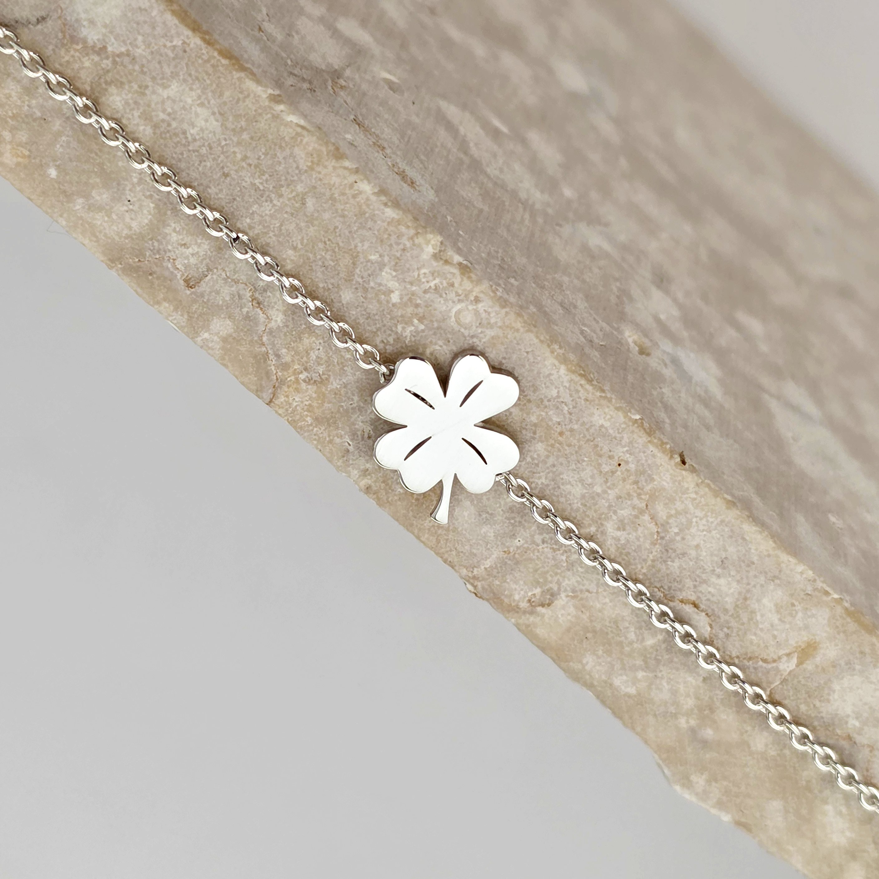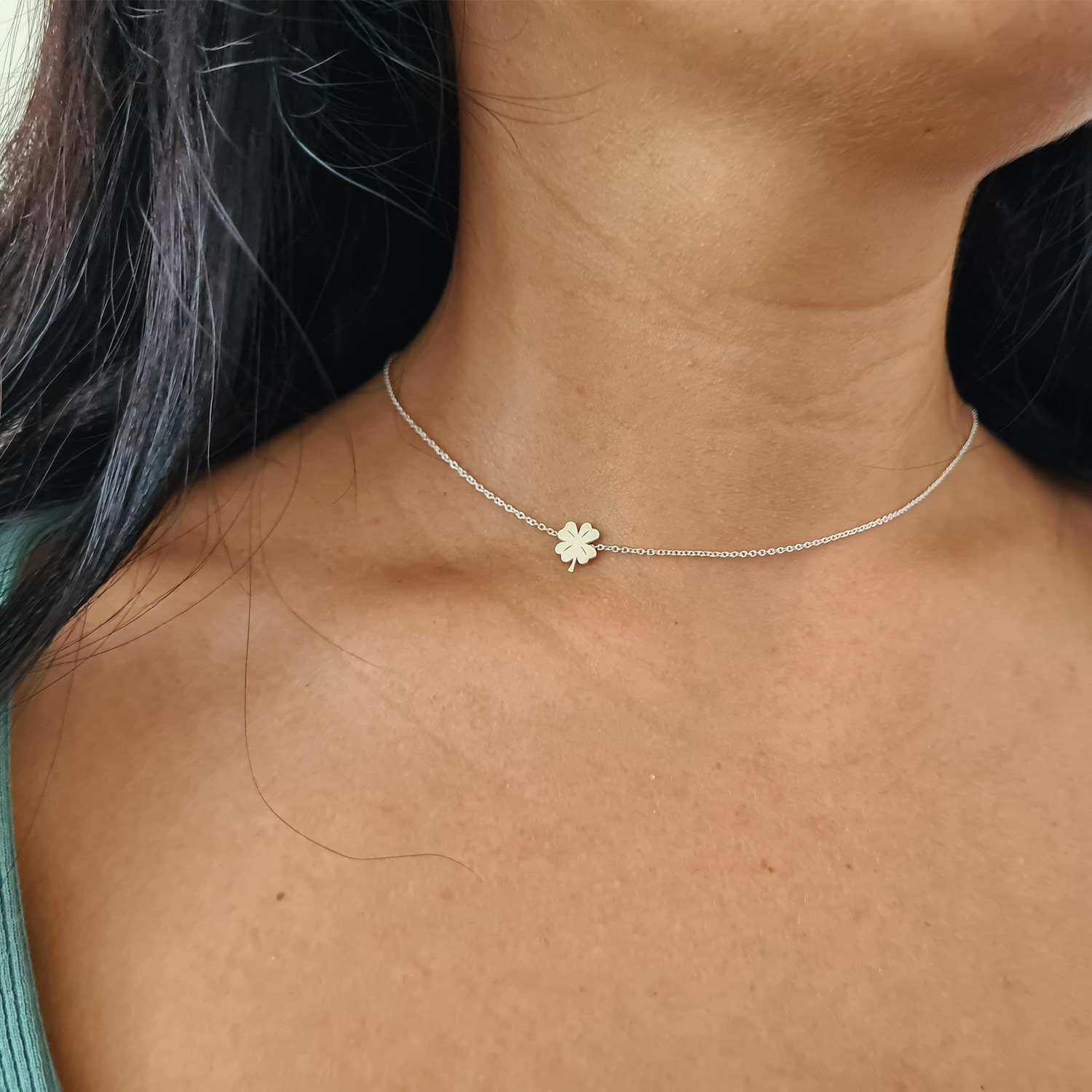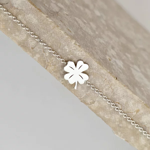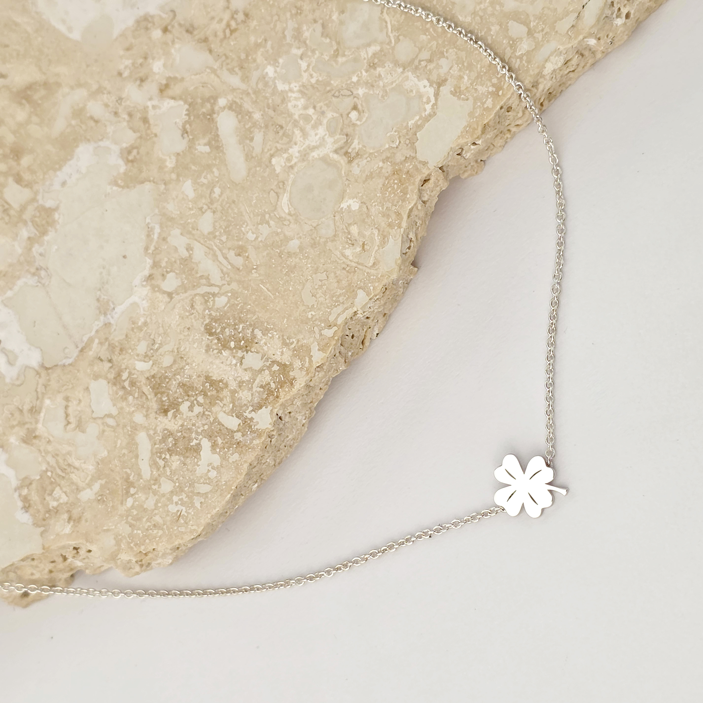 Lantisor minimalist - Pandantiv lateral Trifoi cu 4 foi - Argint 925