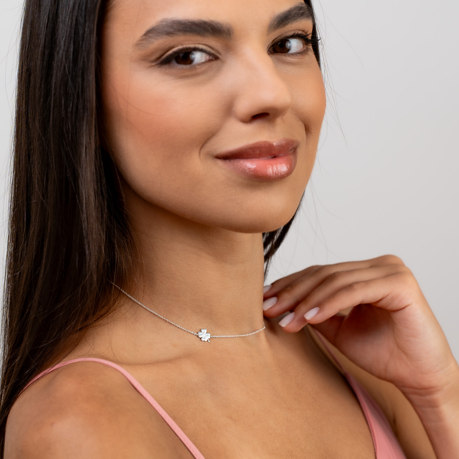 Atemporal si gratios, colierul nostru delicat cu un mic trifoi in lateral reprezinta adevaratul semn al elegantei clasice. Purtat de femeia moderna cu un gust fara precedent si o dragoste pentru stilul minimalist, acest colier capteaza atentia si adauga o scanteie originala tinutei tale.