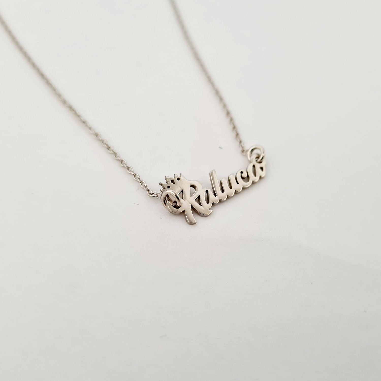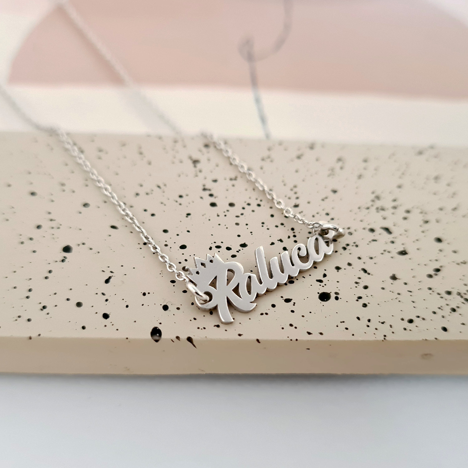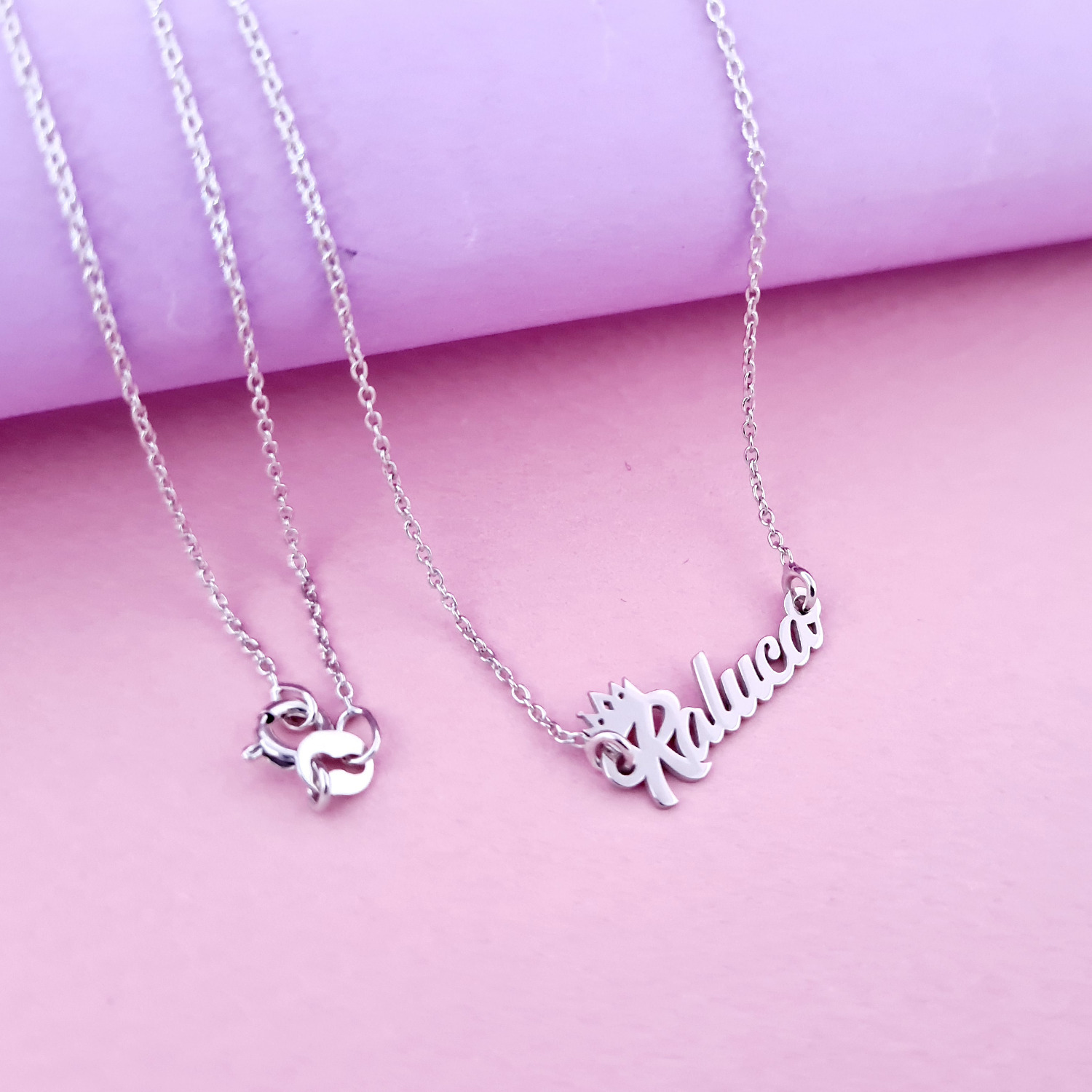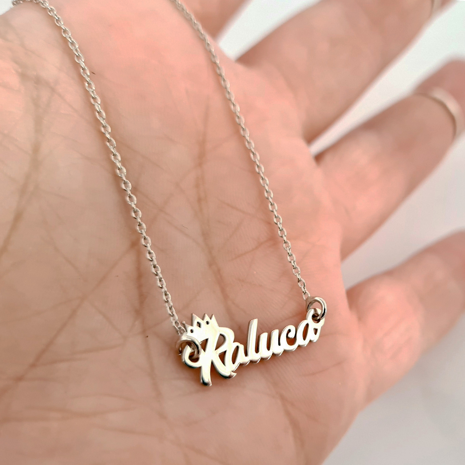 Lantisor personalizat cu nume si simbol coronita - Font elegant - Argint 925