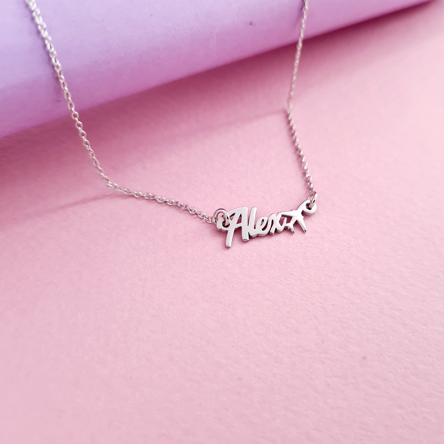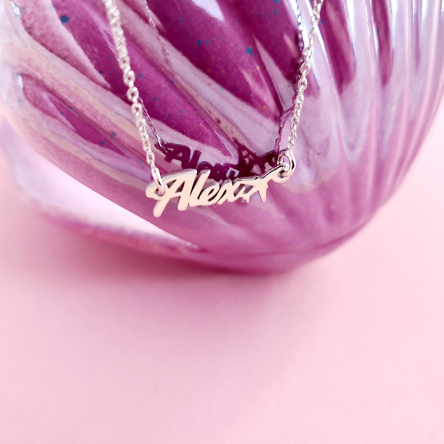 Lantisor personalizat cu nume si simbol avion - Font elegant - Argint 925
