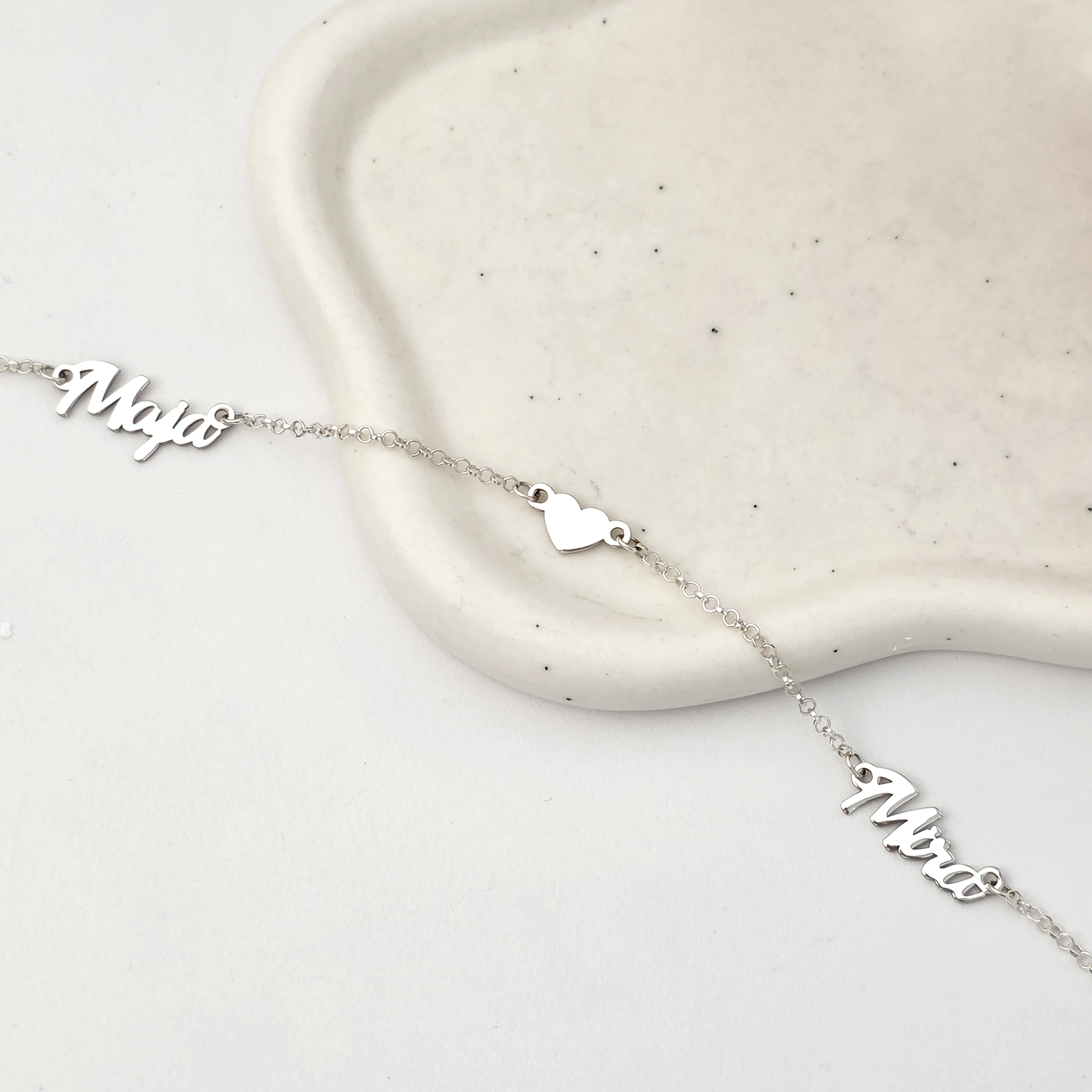 Lantisor Personalizat cu Doua Nume si o Inimioara din Argint 925 – Eleganta Unica