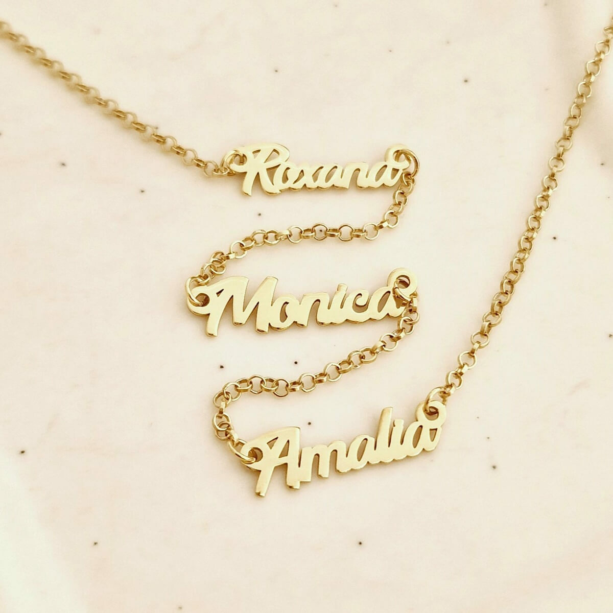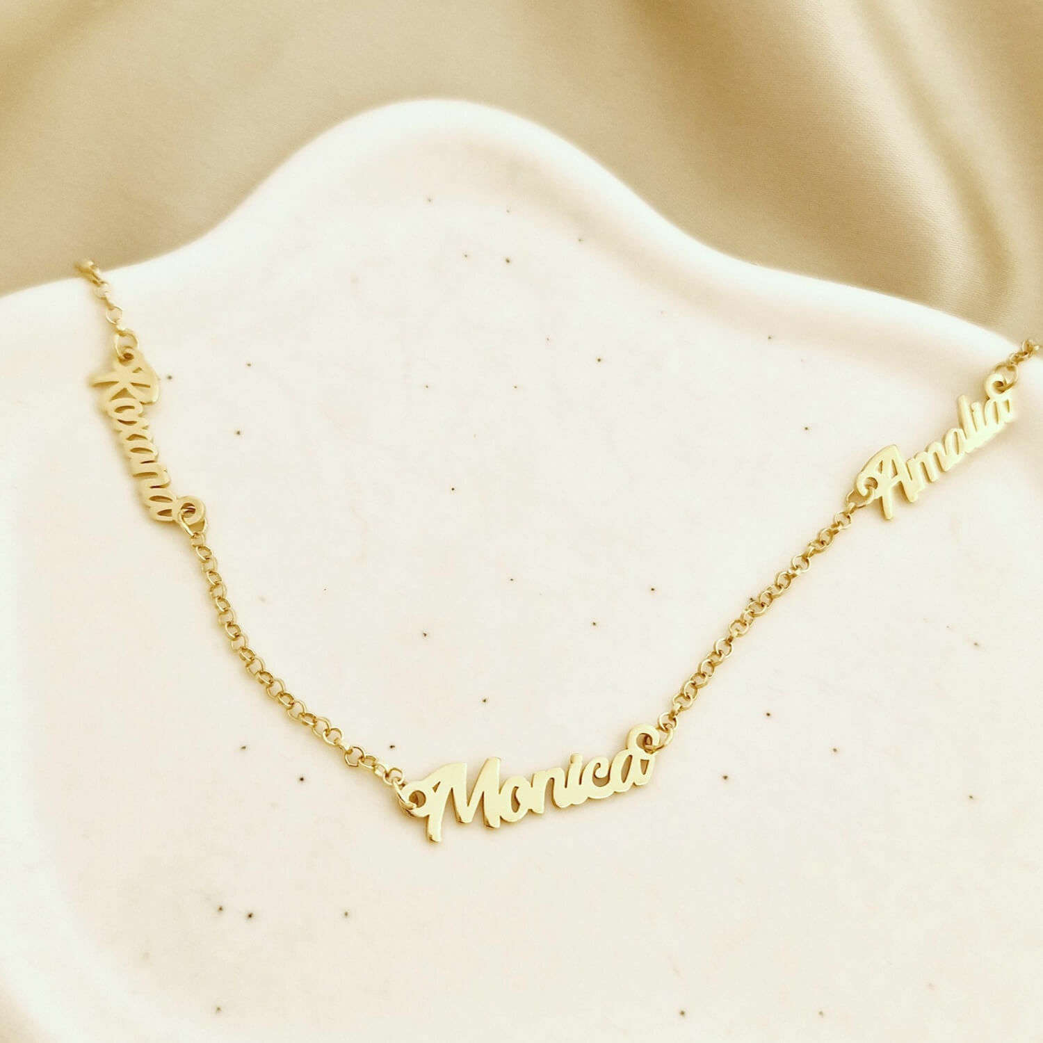 Lantisor Personalizat cu Trei Nume din Argint 925 placat cu Aur galben 18K – Eleganta Unica