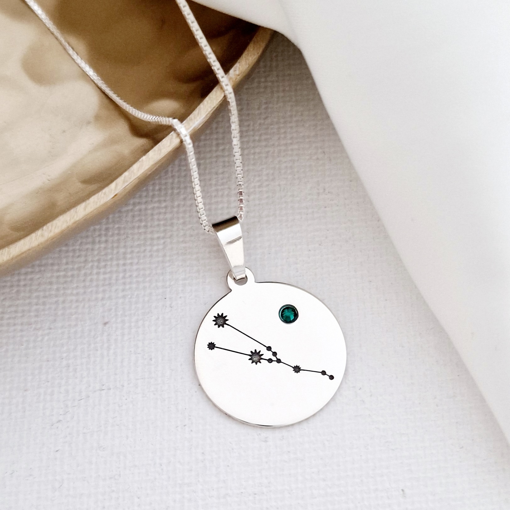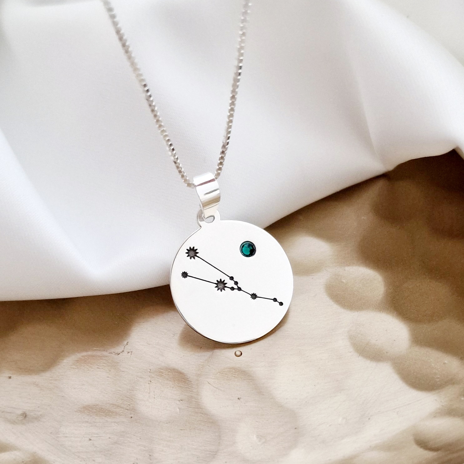 - Pe fata, pandantivul este gravat cu constelatia corespunzatoare zodiei. Daca iti doreti si altceva inscriptionat (nume, data, mesaj) poti selecta casuta pentru personalizare spate.