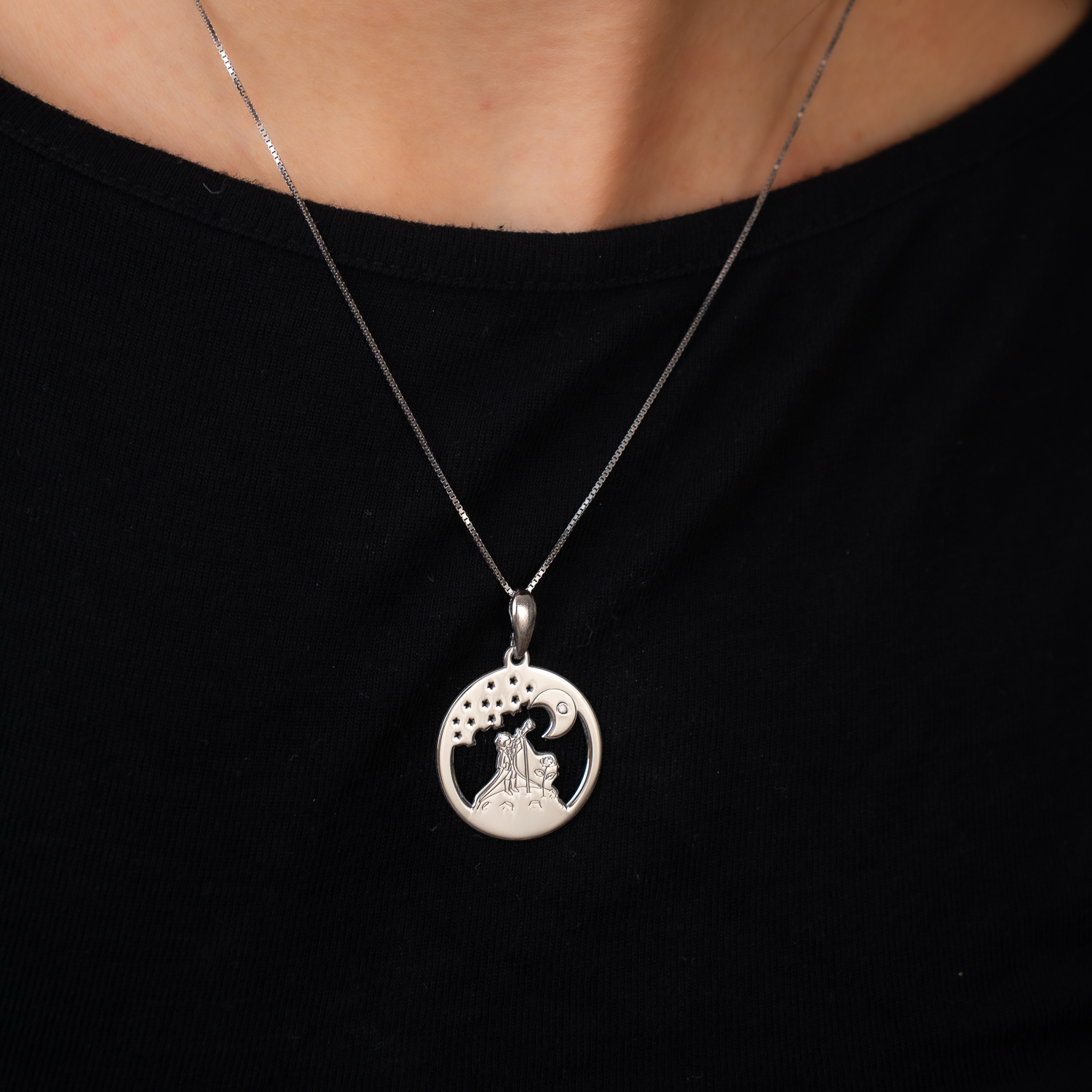 Lantisor personalizat cu Diamant natural - Pandantiv Micul Print sub cerul instelat - Argint 925 Rodiat