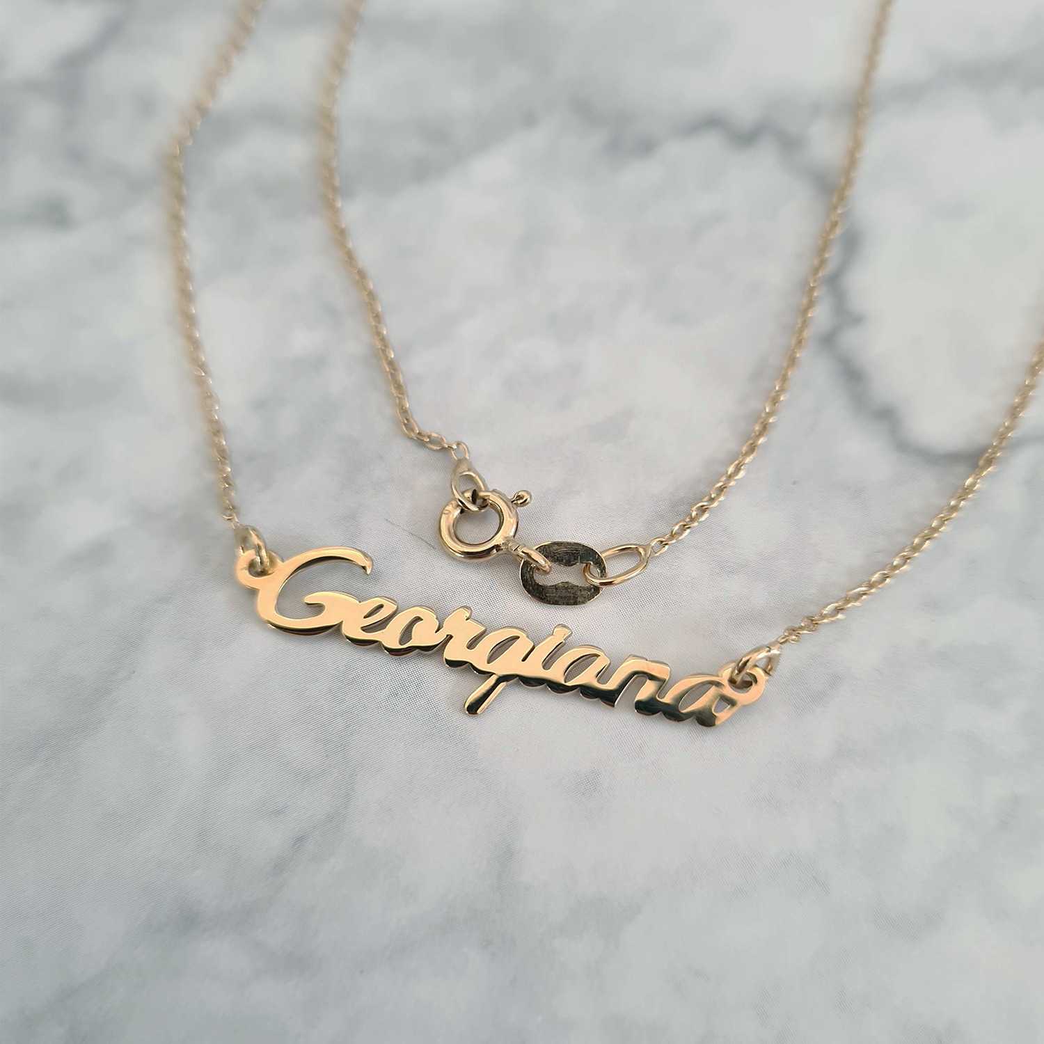 Lantisorul cu nume poate fi realizat din Aur 9K, Aur 14K (galben, alb sau roz) sau din Argint 925, clasic, rodiat sau placat cu Aur 18K (galben sau roz). Fiecare bijuterie este atent finisata manual, astfel incat sa te bucuri de un lantisor cu nume elegant, durabil si potrivit stilului tau personal.