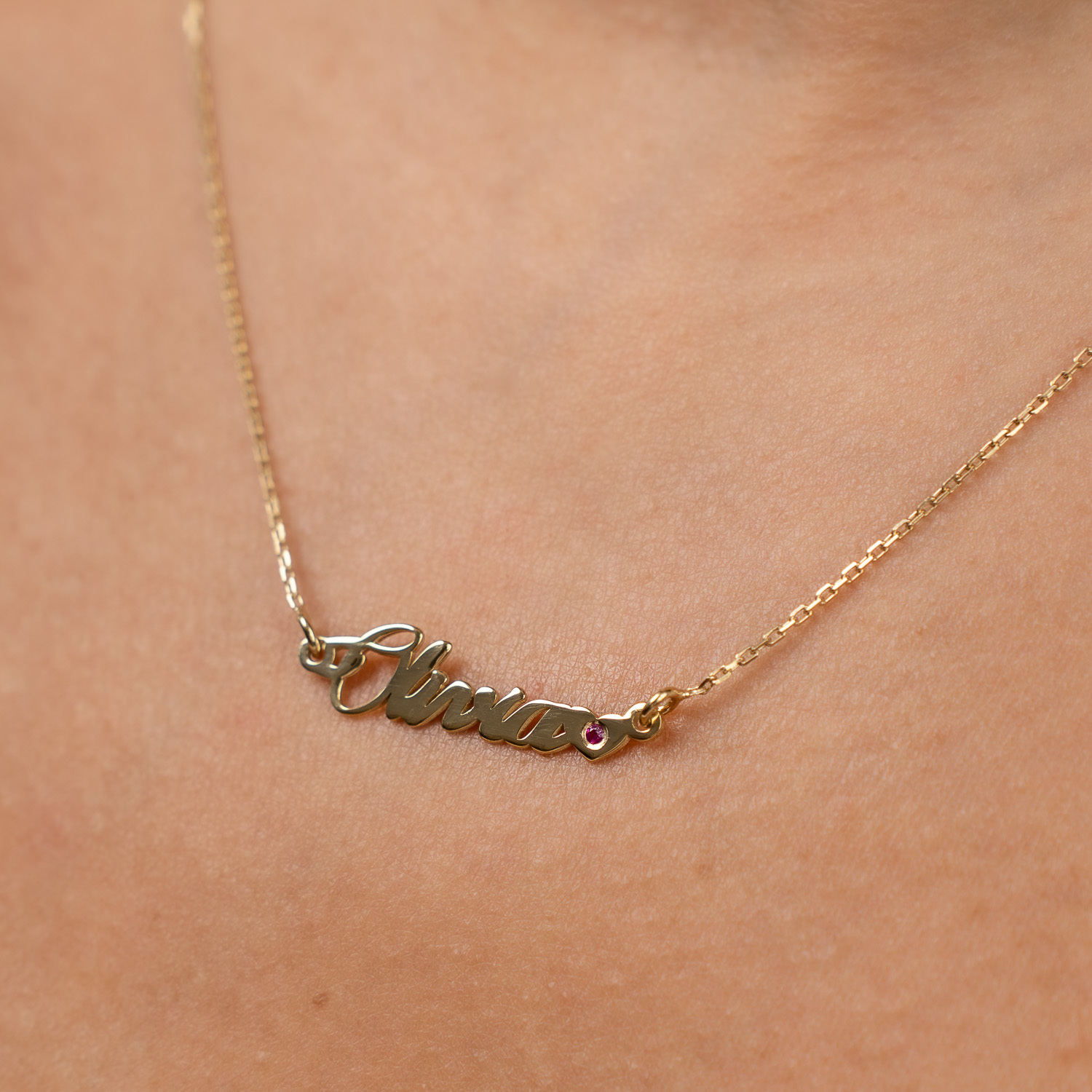 Colier Personalizat cu Nume si Inima Decorata cu Rubin – Eleganta Emotiei