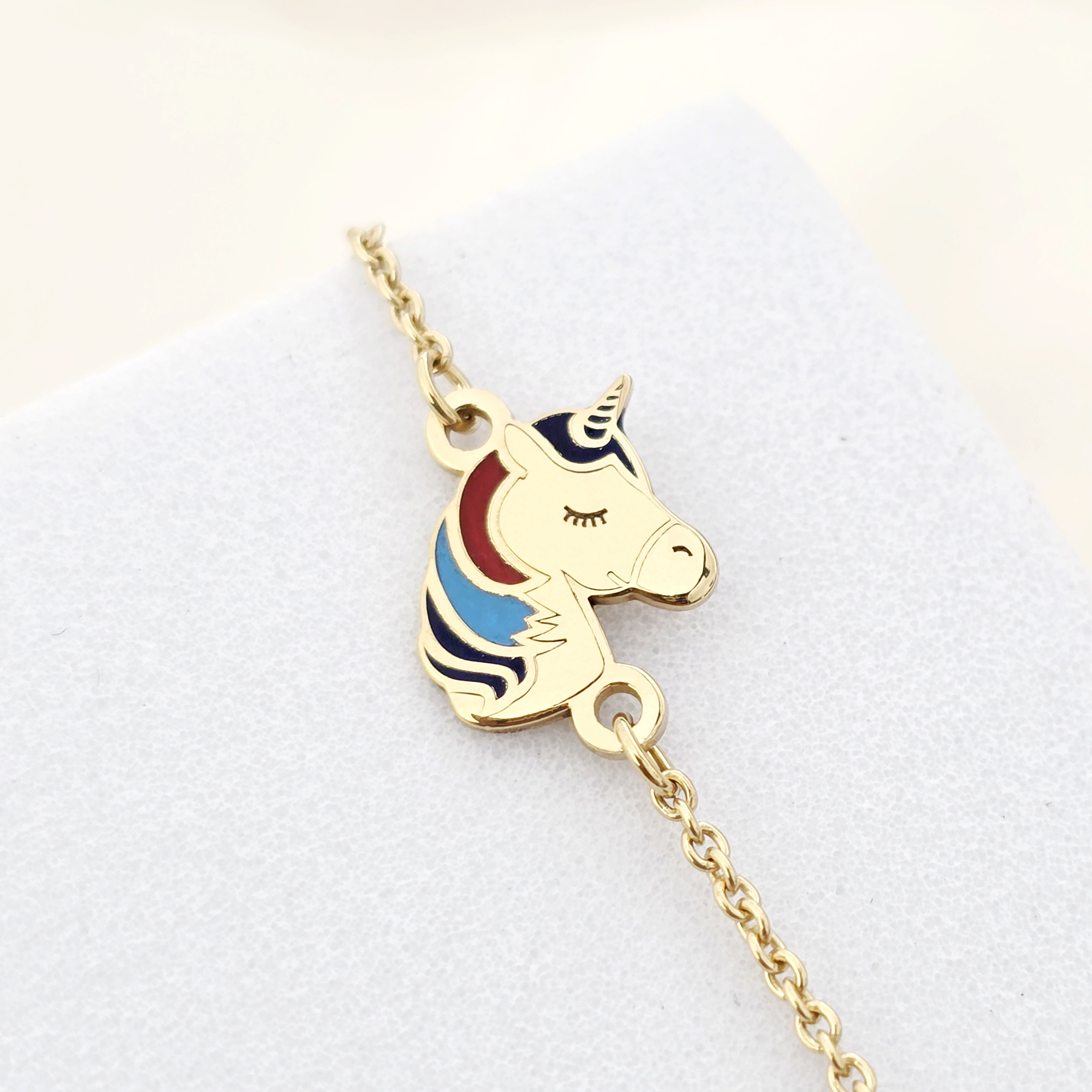 - Unicornul de 12x9 mm este prins in lateral si este decorat cu email colorat, astfel ca, bijuteria prinde viata si personalitate.