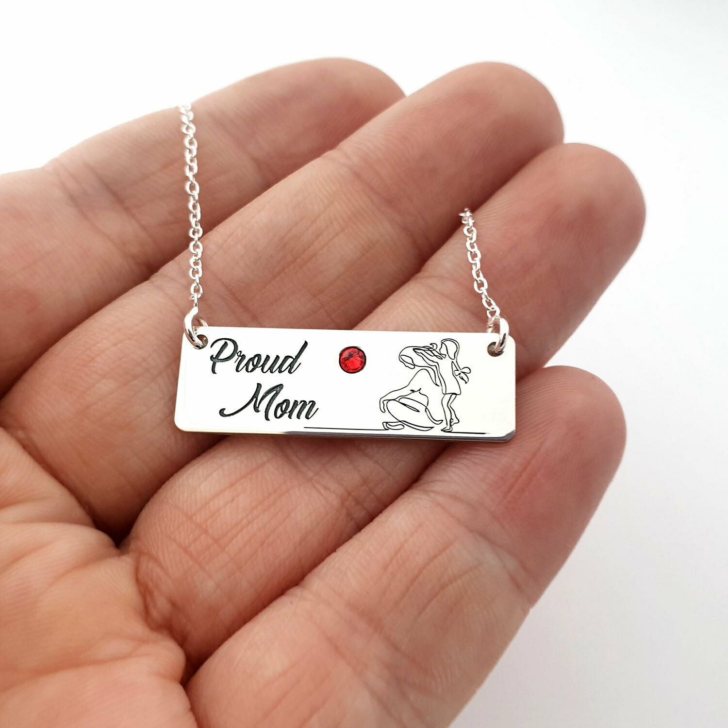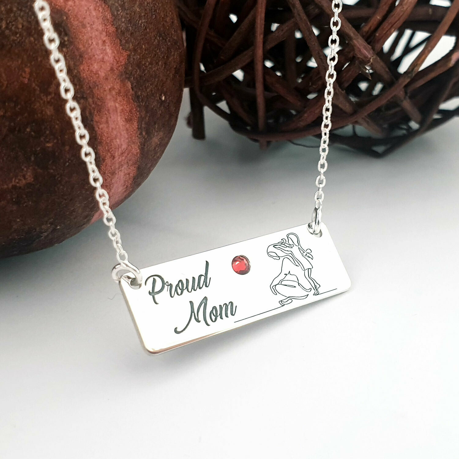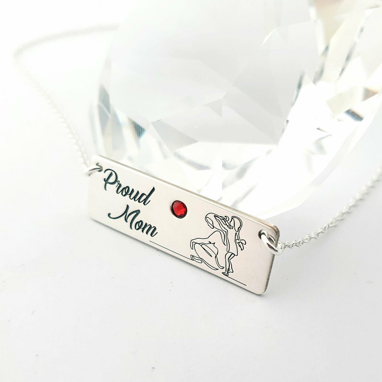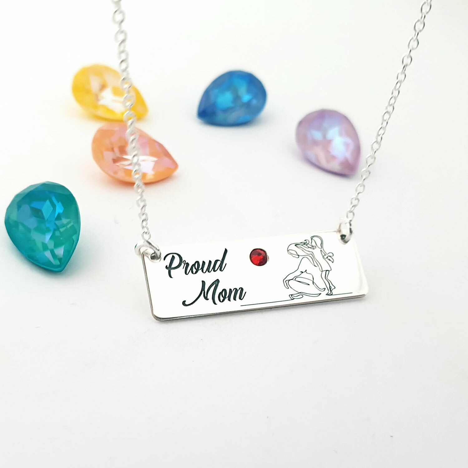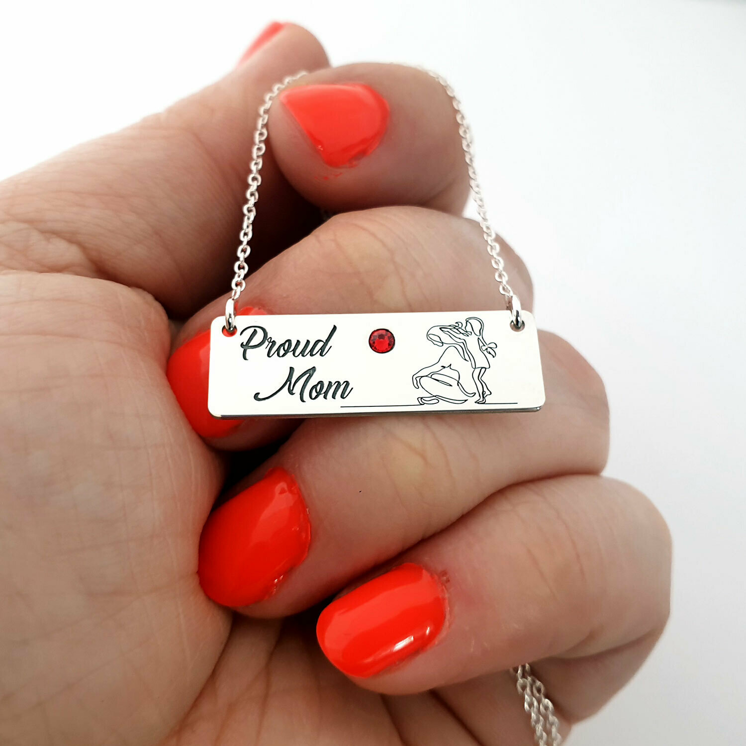 Lantisor personalizat cu pandantiv placuta - Proud mom - Argint 925 - Cristal Swarovski