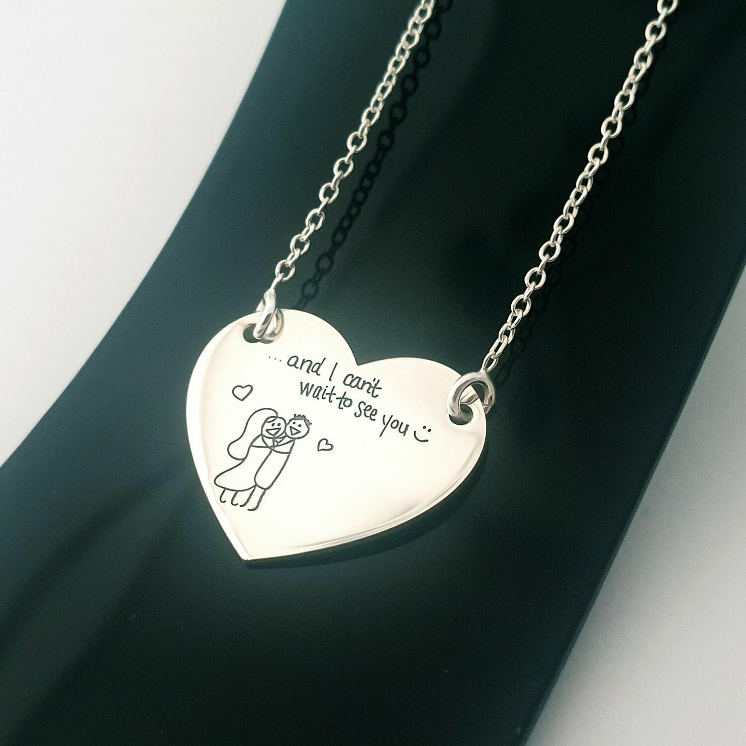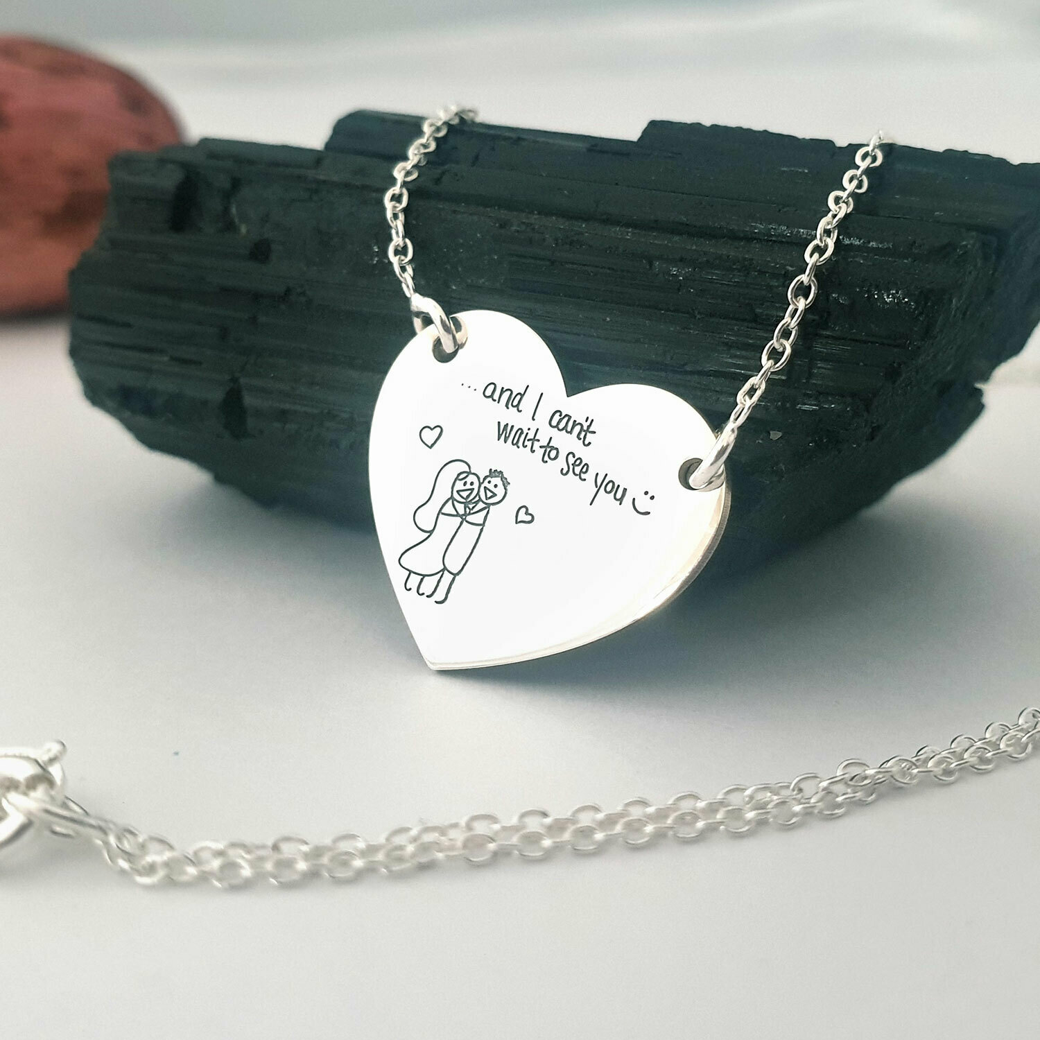 Lantisor personalizat - Gravura scrisului de mana si/sau desen personal - Pandantiv Inima - Argint 925