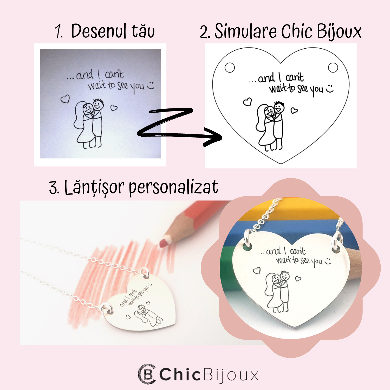 - Pentru a putea transforma desenul si/sau scrisul de mana intr-o gravura unica incarca o imaginea cat mai clara direct in comanda sau poti sa o trimiti pe mail: comenzi @ chicbijoux.ro