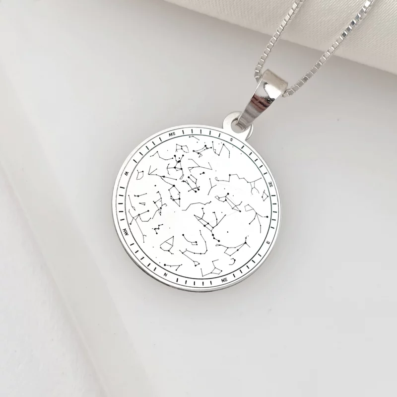 Lantisor personalizat - Harta Stelara - Stele si Constelatii gravate - Argint 925