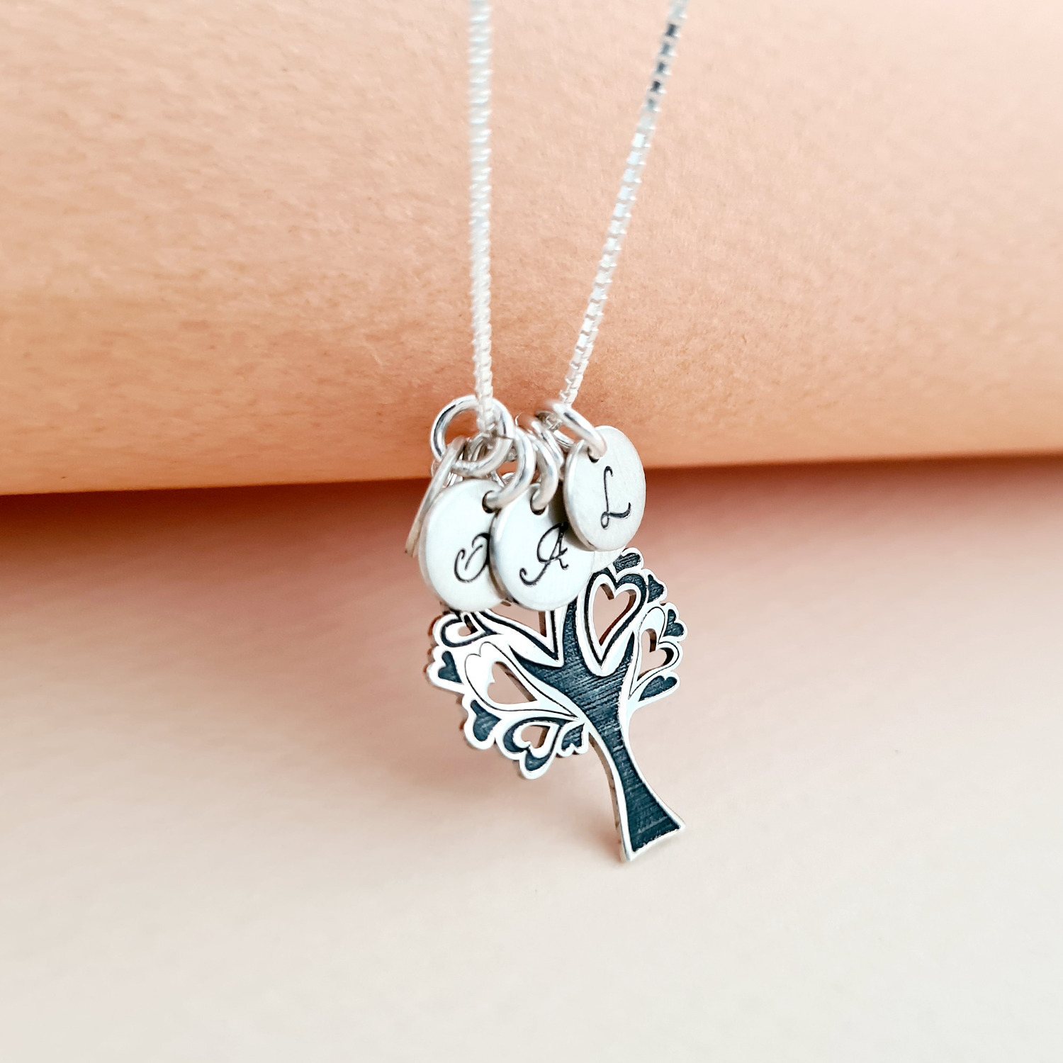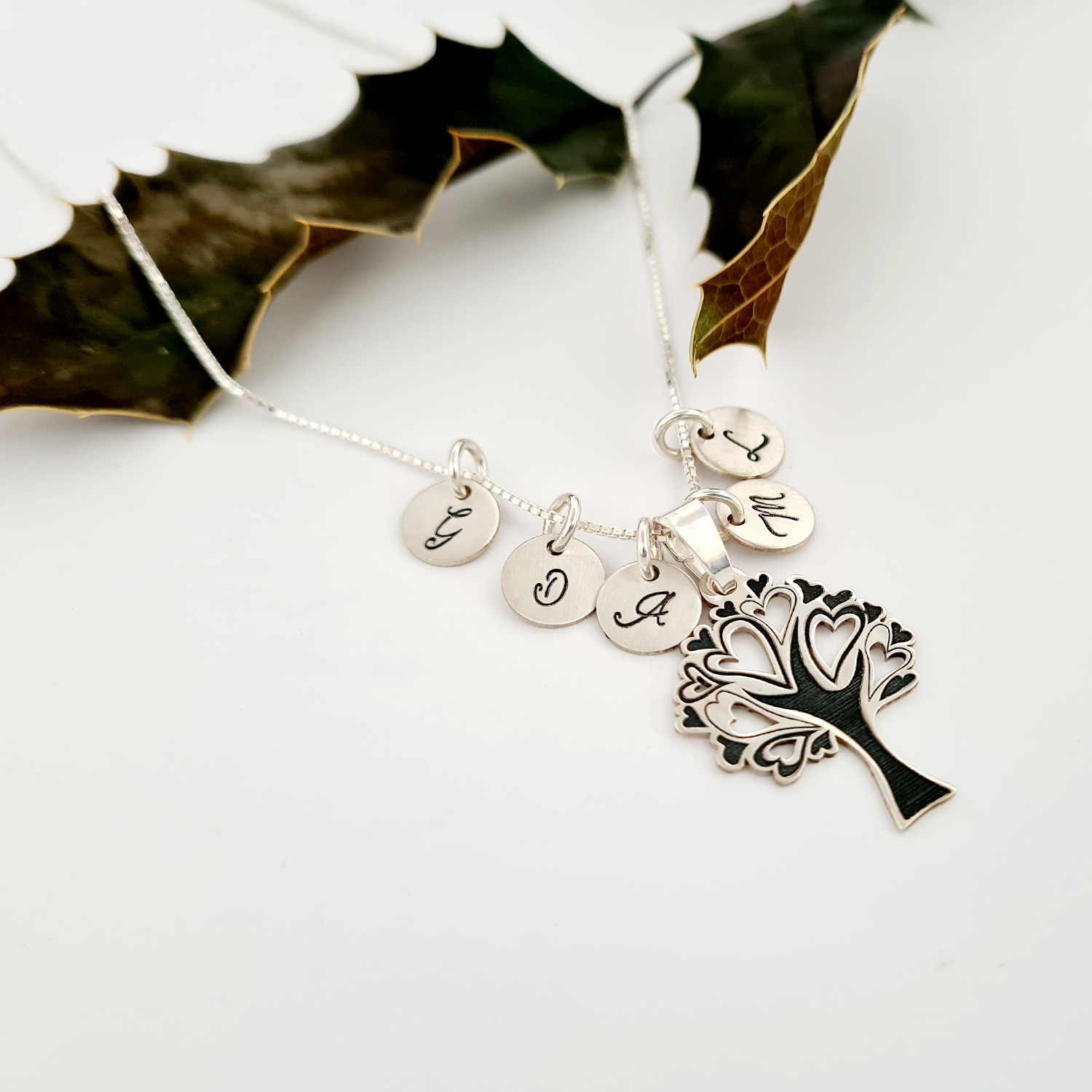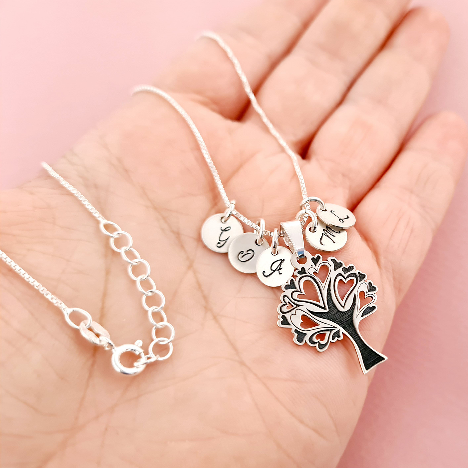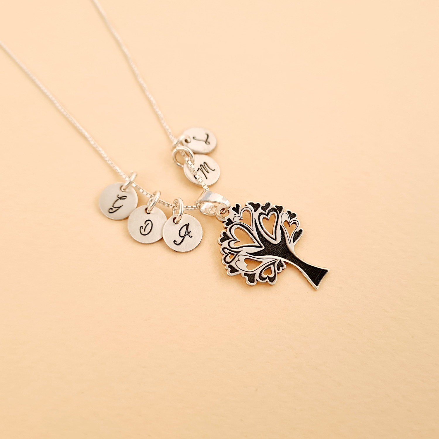 Lantisorul este cadoul perfect pentru a aduce un zambet in plus pe fata unei mame sau bunici. Terminatiile crengilor sunt in forma de inimioare, astfel bijuteria transmitand iubire. Pe langa pandantivul principal sunt atasate de lantisor banuti personalizati cu initiale, reprezentant fiecare membru al familiei.