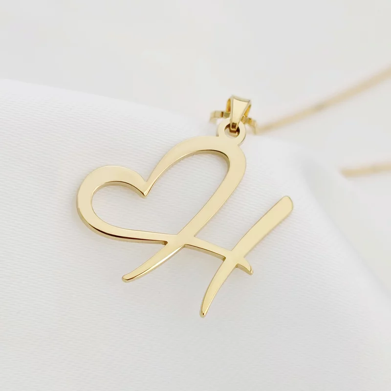 Lantisor personalizat - Pandantiv cu initiala personalizata si inima - Argint placat cu Aur Galben 18K