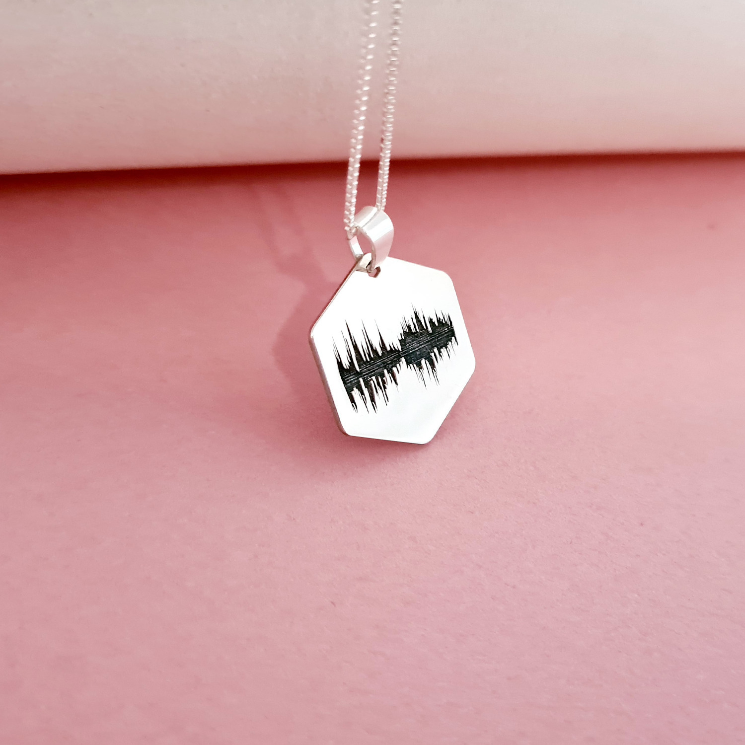 Lantisor personalizat - Pandantiv hexagon uniform - Amprenta Vocala - Argint 925