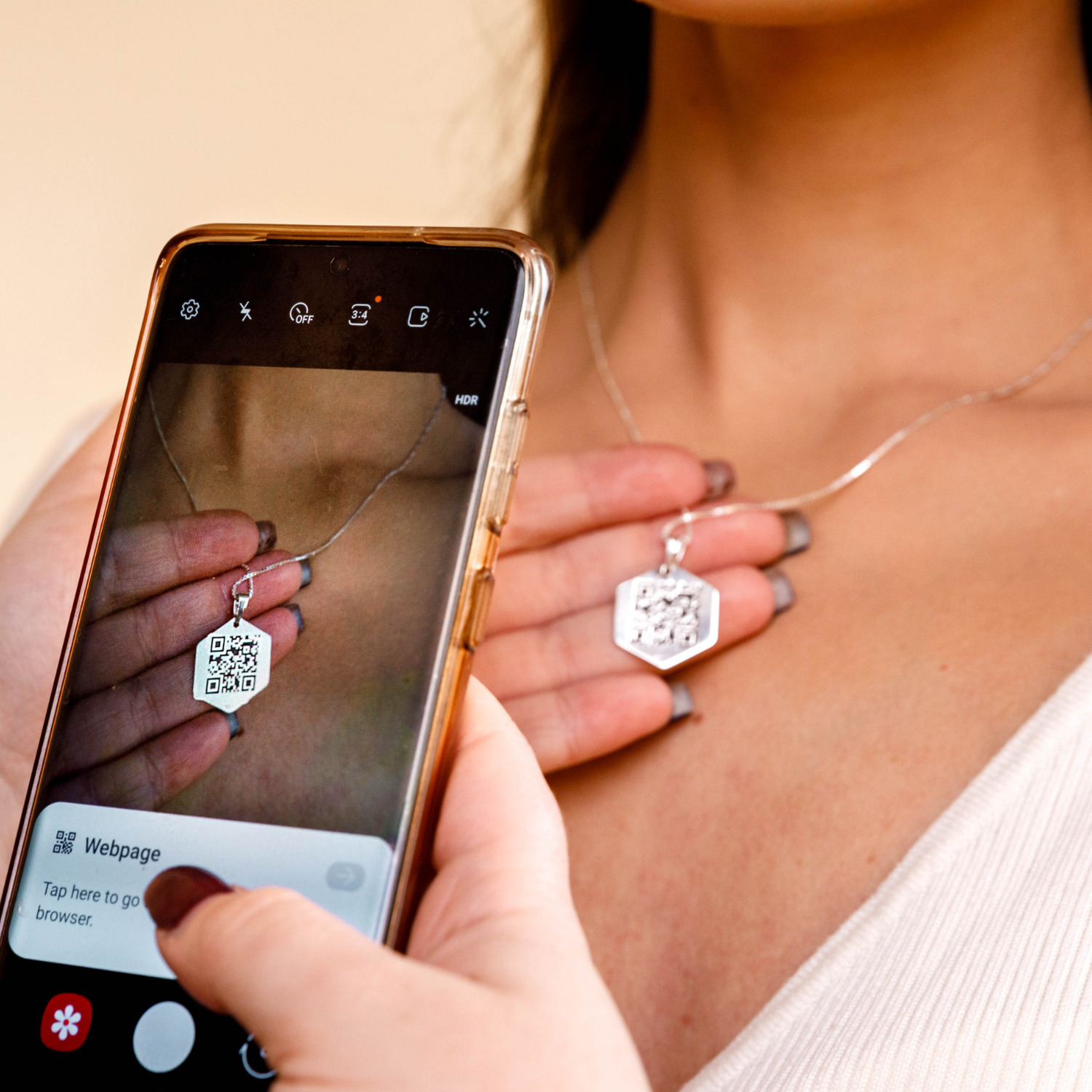 2. O alta modalitate de a asculta unda sonora este de a o introduce intr-un QR Code gravat pe spatele bijuteriei. Vezi mai jos pasii necesari.