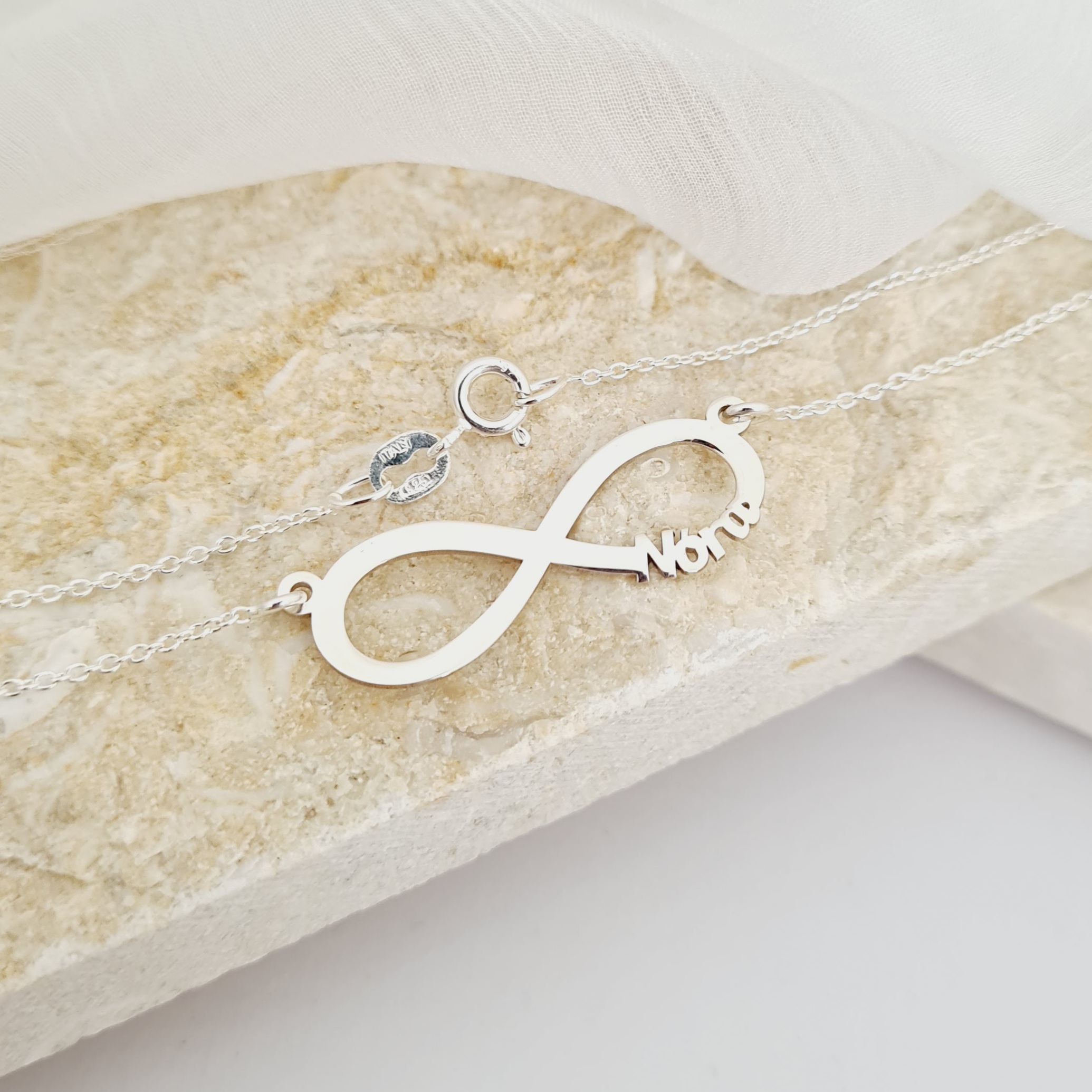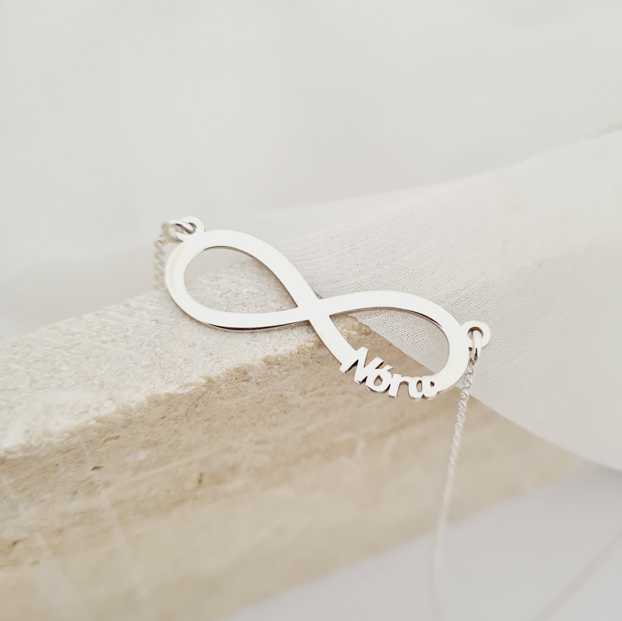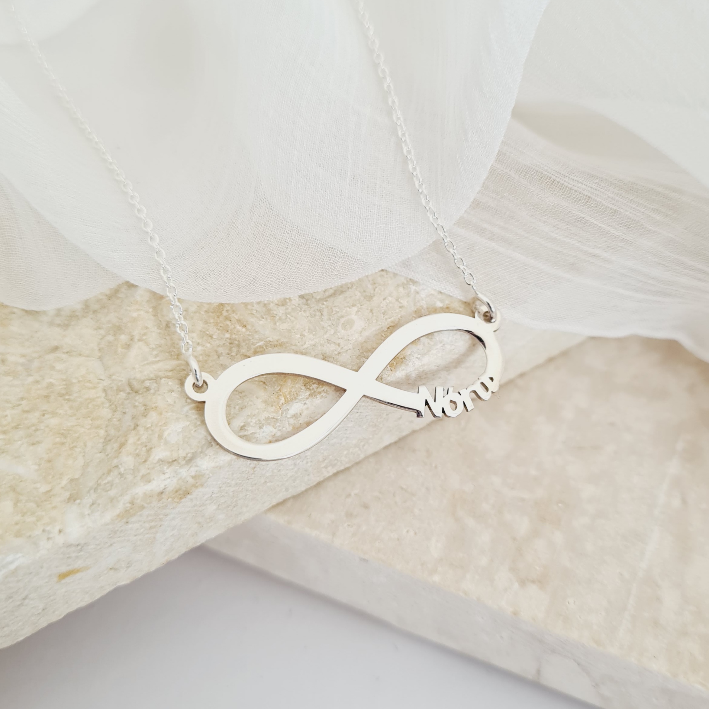 Lantisor personalizat - Pandantiv infinit cu nume decupat - Argint 925