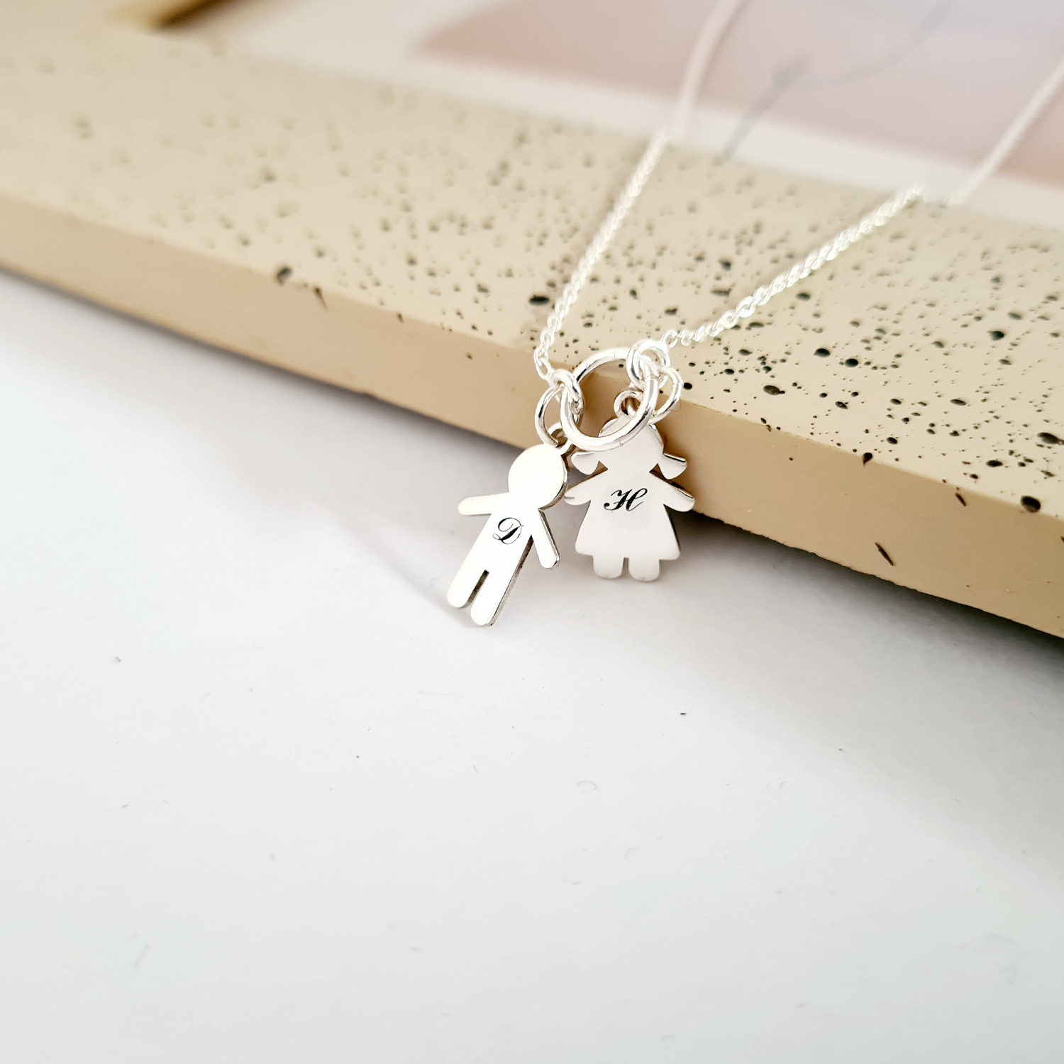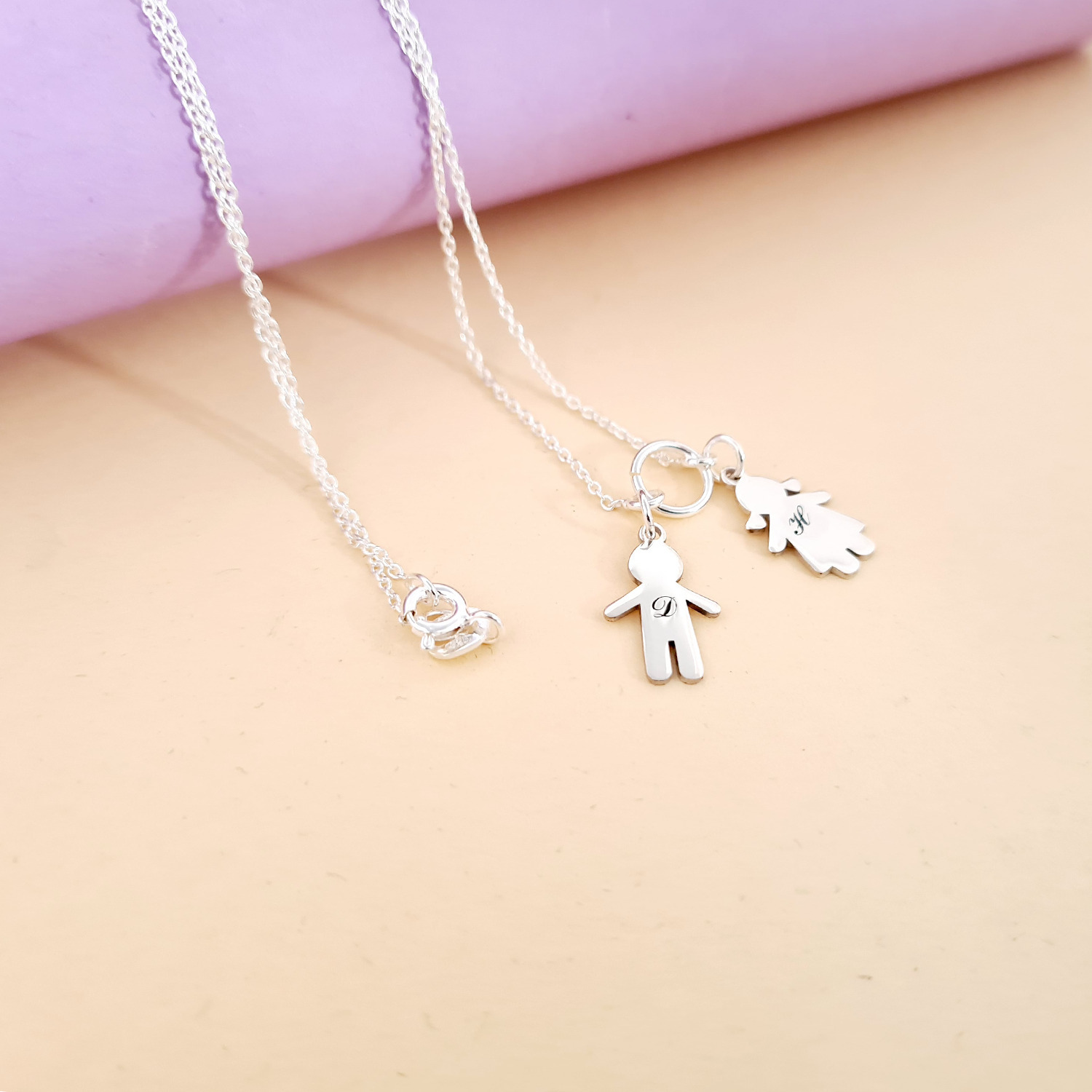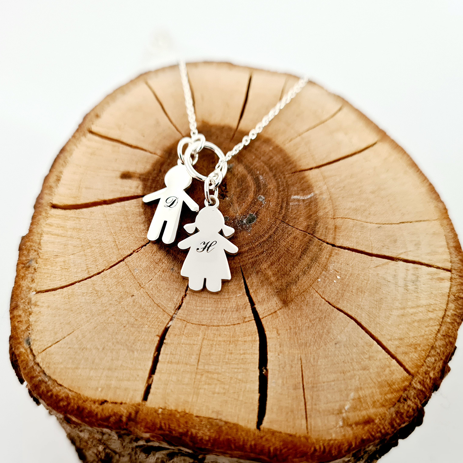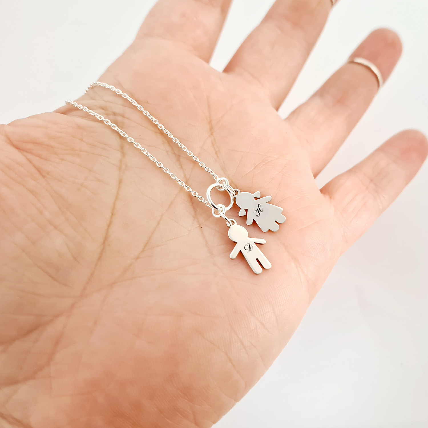Lantisor personalizat - Pandantive siluete de copii gravate cu initiale - Argint 925