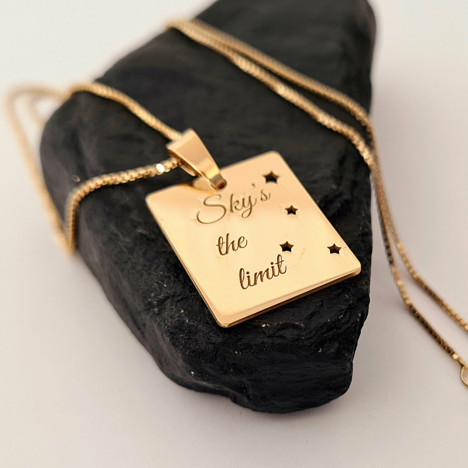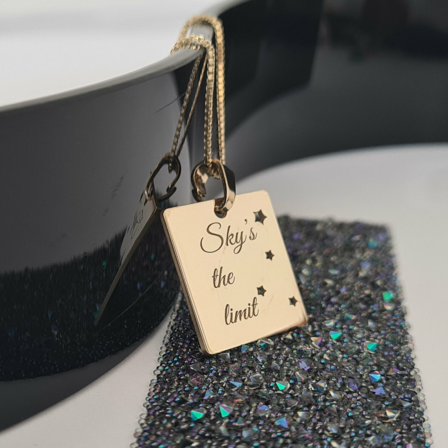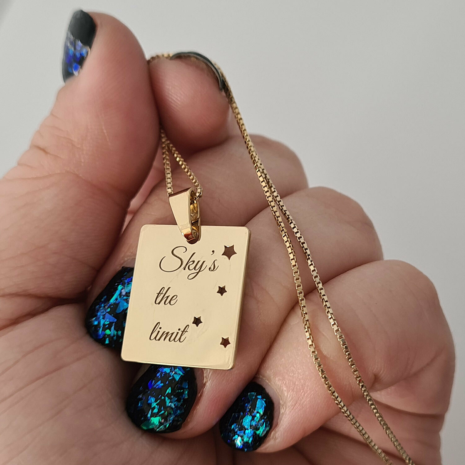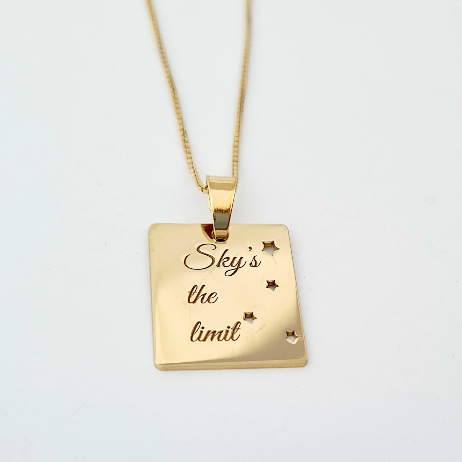 La fel de magic ca si cerul instelat asa este si lantisorul personalizat cu un mesaj deosebit: Sky's the limit.
