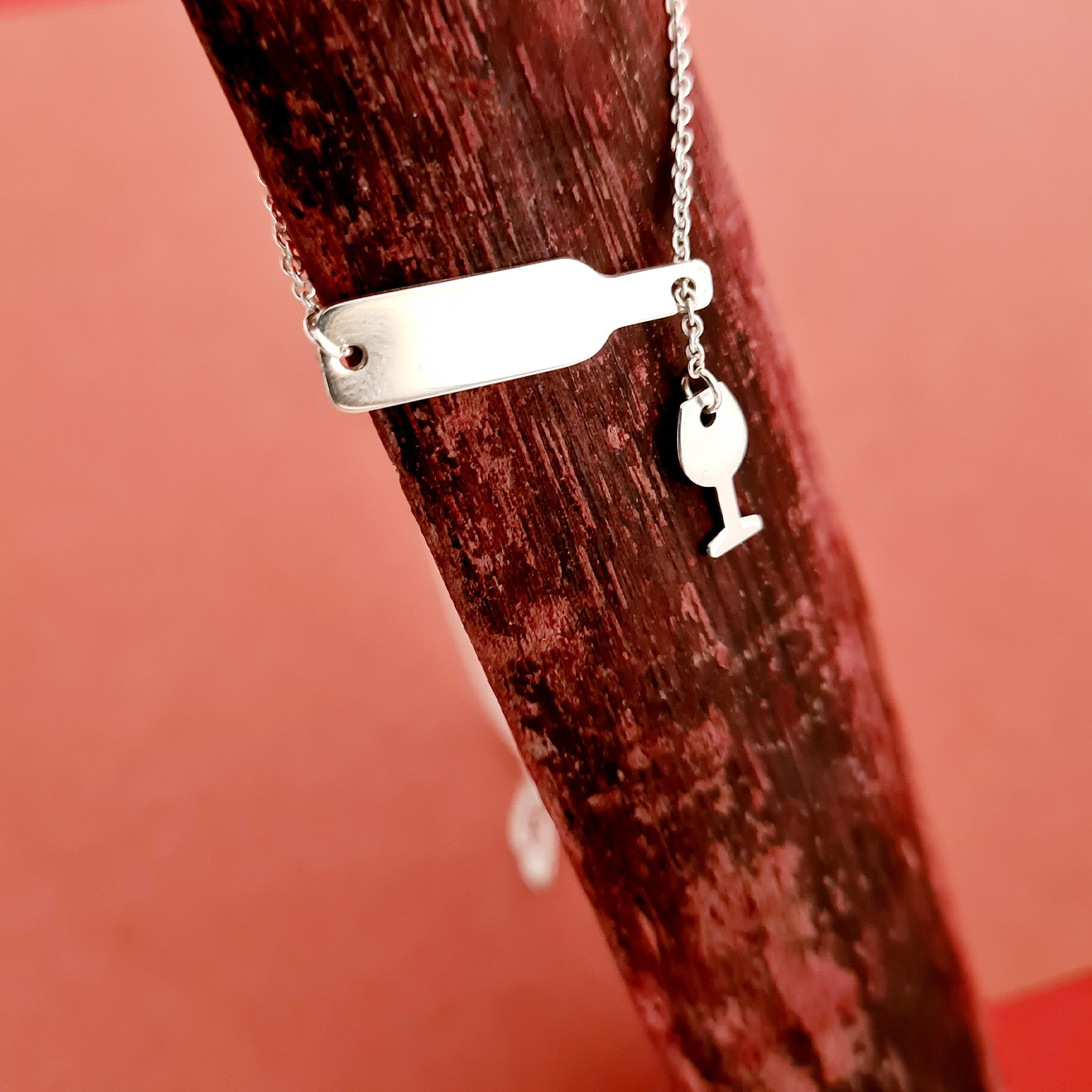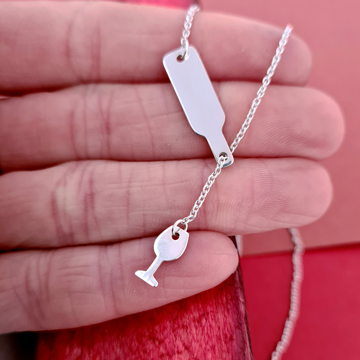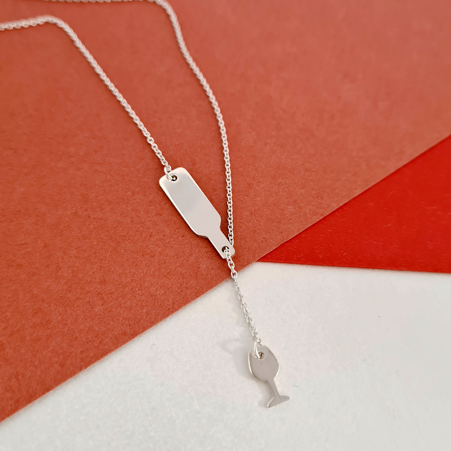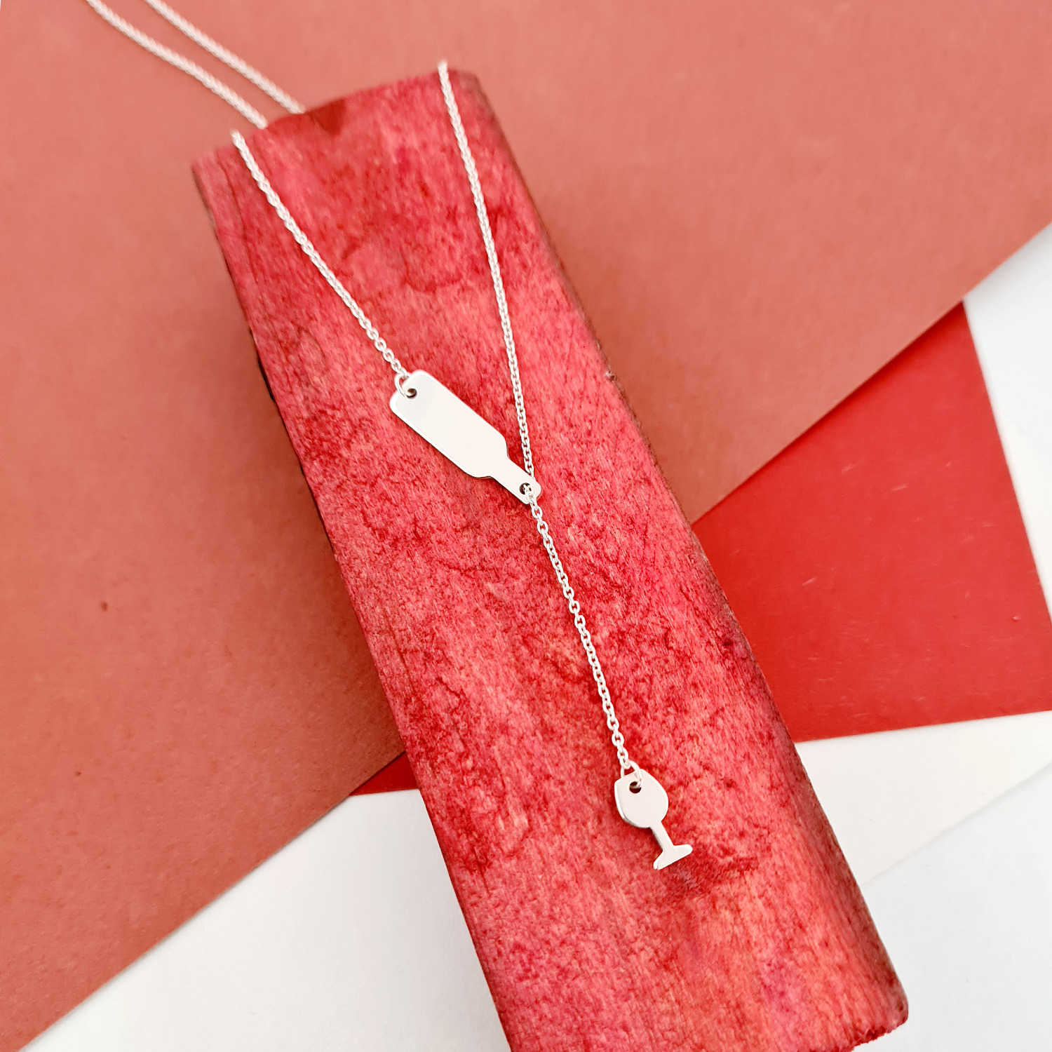 Lantisor personalizat - Sticla de vin si pahar - Model lariat Y - Argint 925