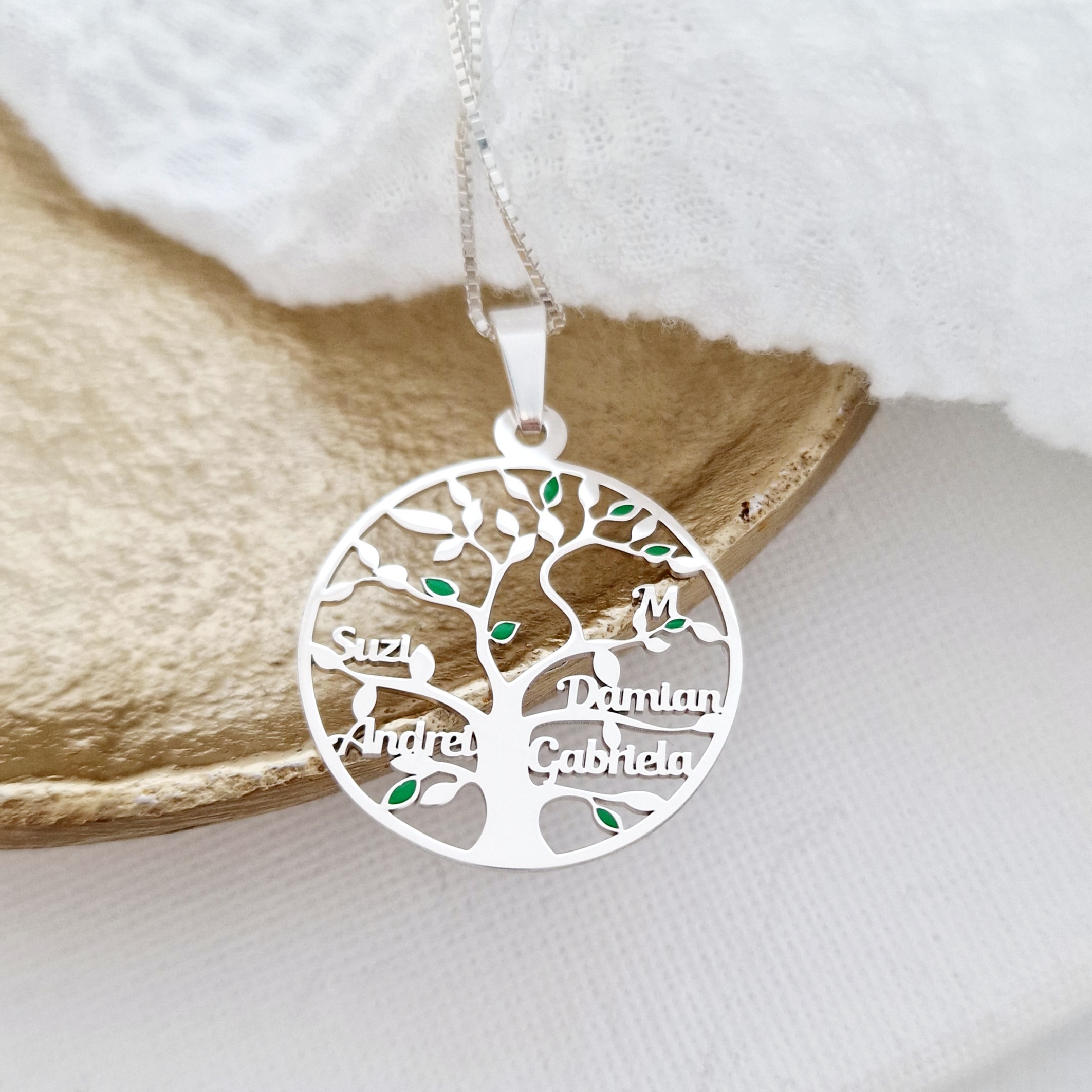 Lantisor premium - Copacul Vietii - Personalizat cu nume si decorat cu email - Argint 925
