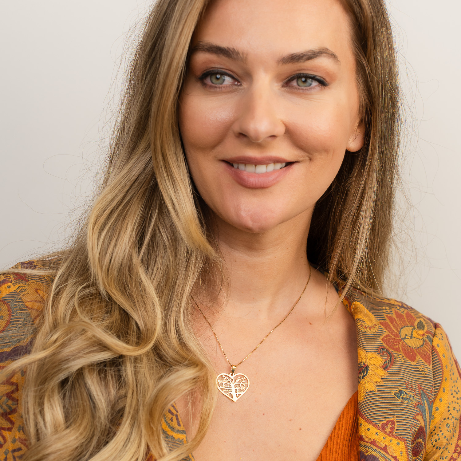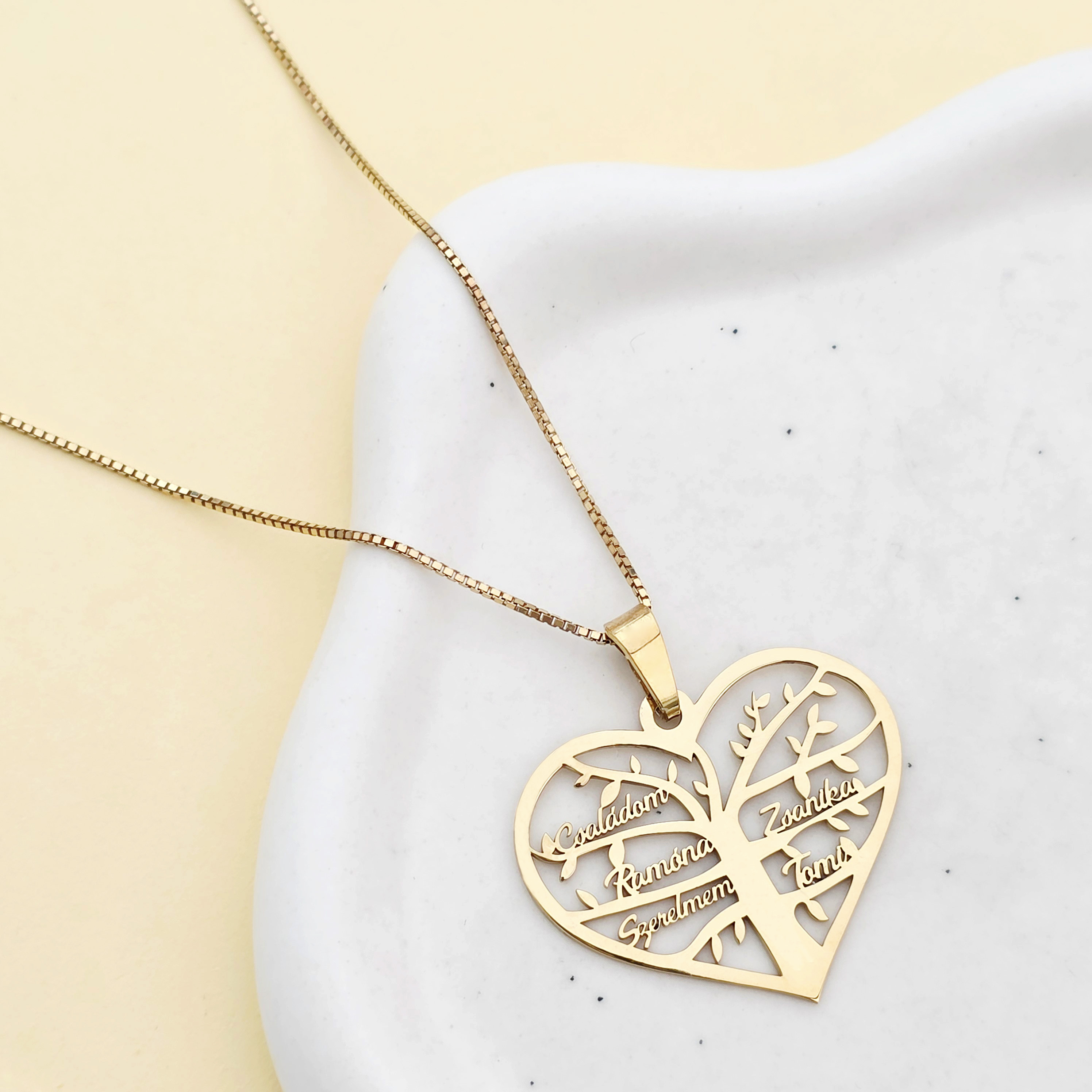 Lantisor premium - Inima Copacului - Pandantiv personalizat cu nume - Argint 925 placat cu Aur Galben 18K