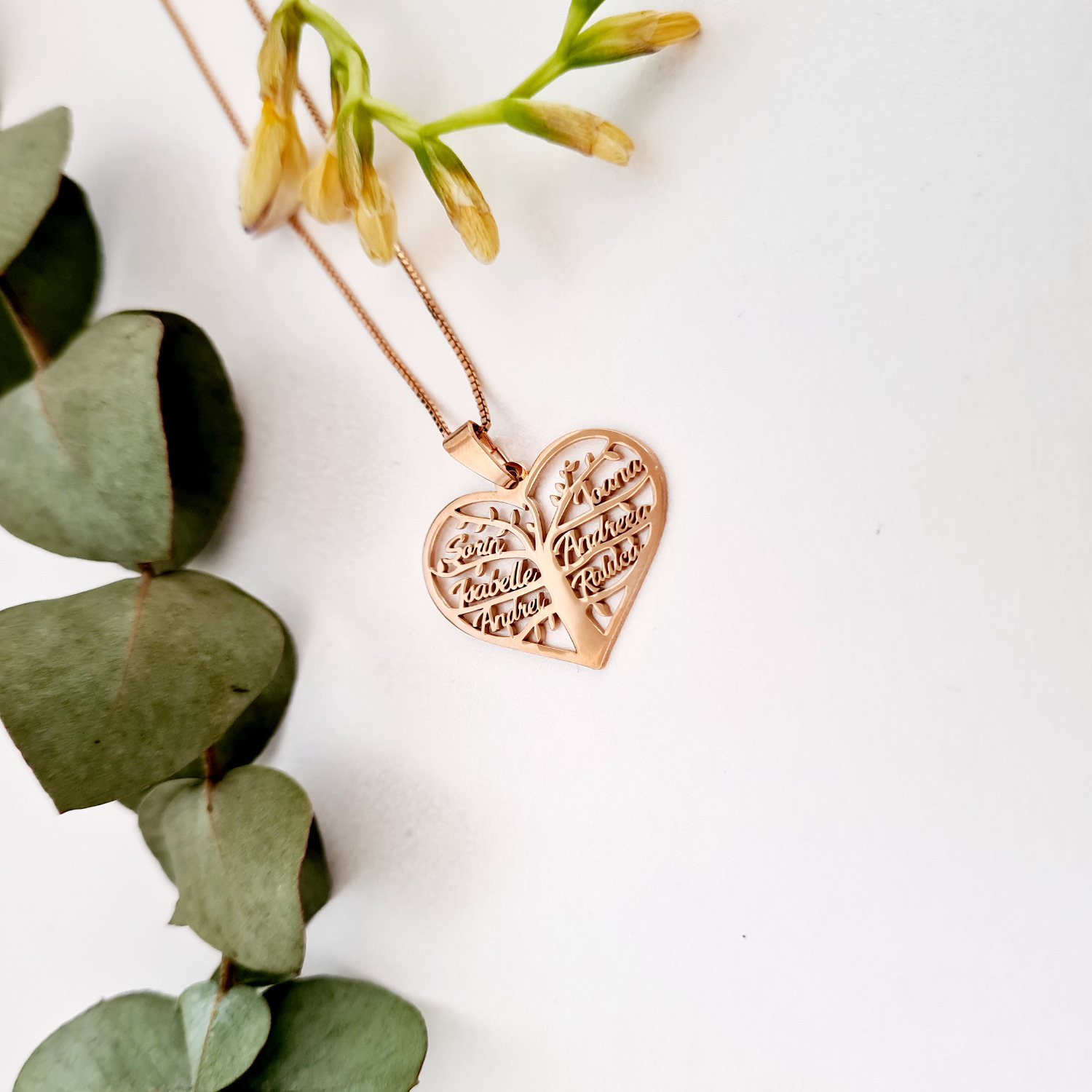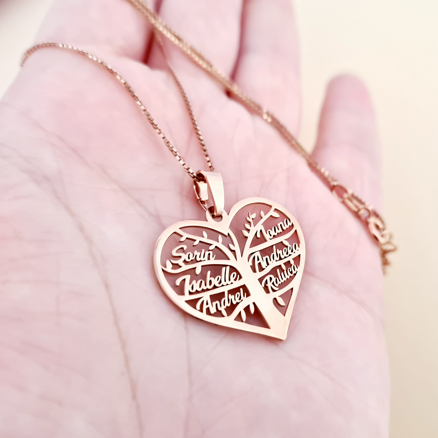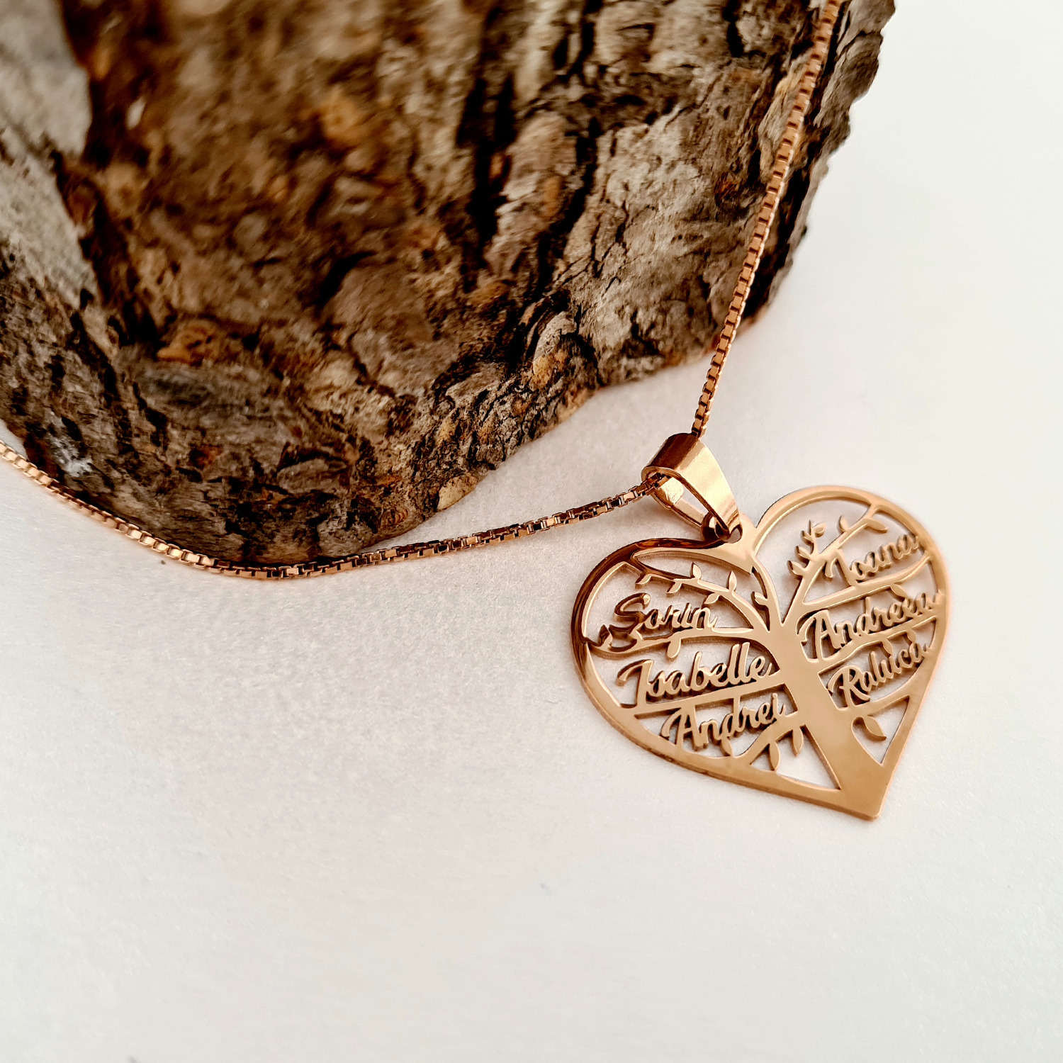 Lantisor premium - Inima Copacului - Pandantiv personalizat cu nume - Argint 925 placat cu Aur Roz 18K
