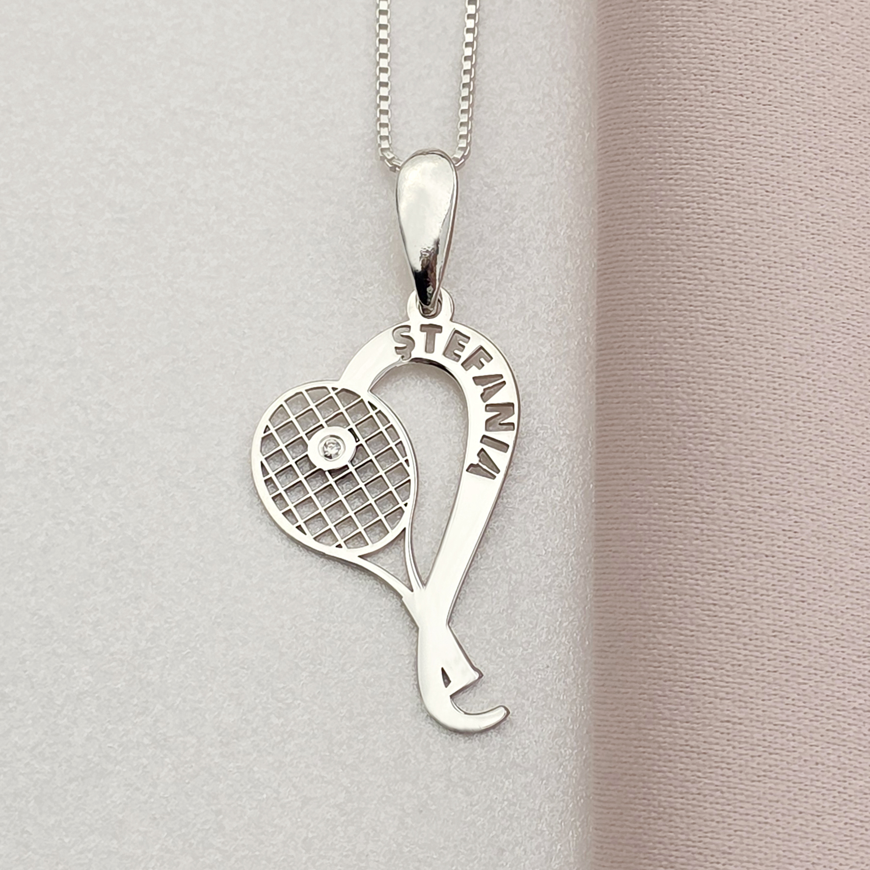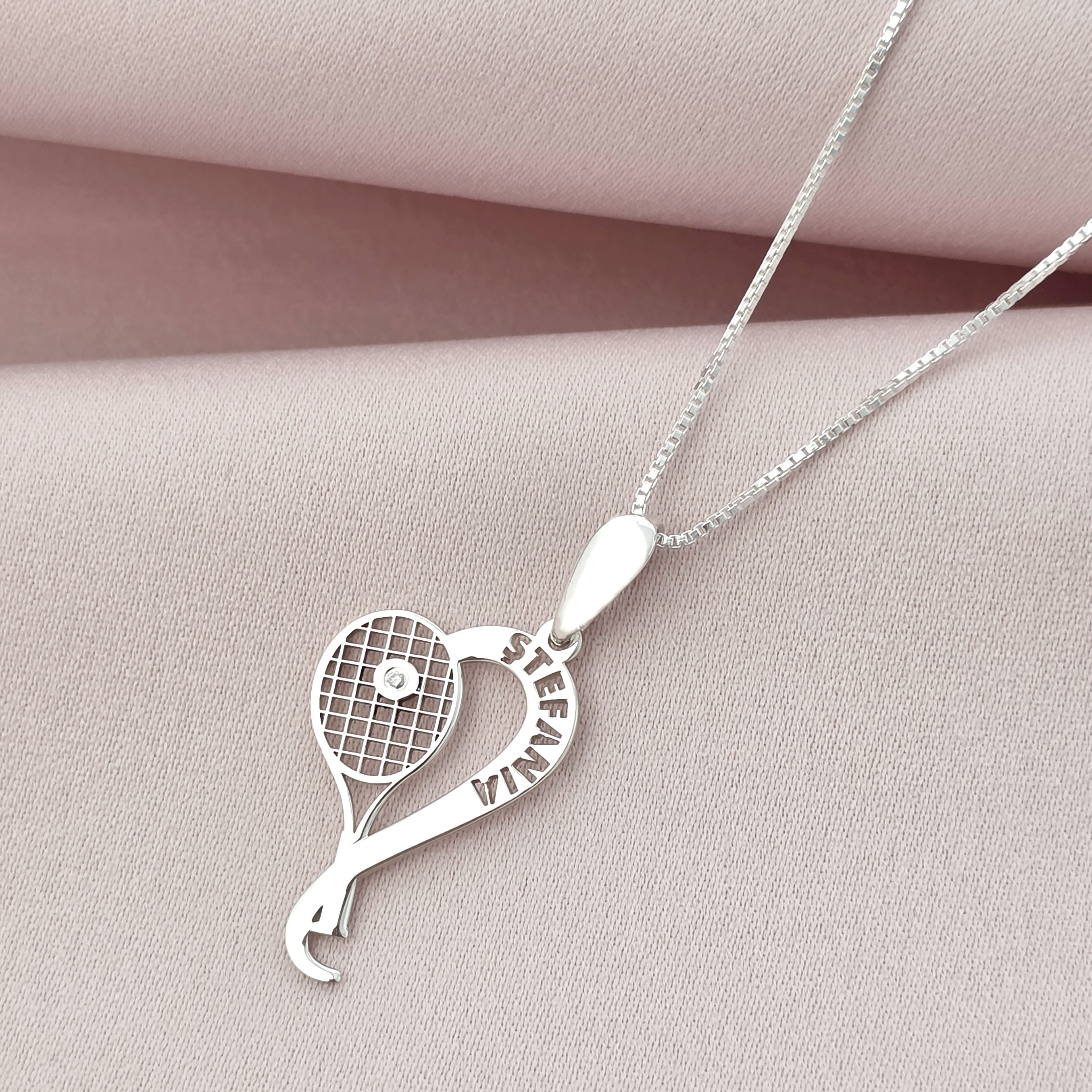 Lantisor Racheta de tenis si minge - nume personalizat Argint 925 - cu Diamant natural