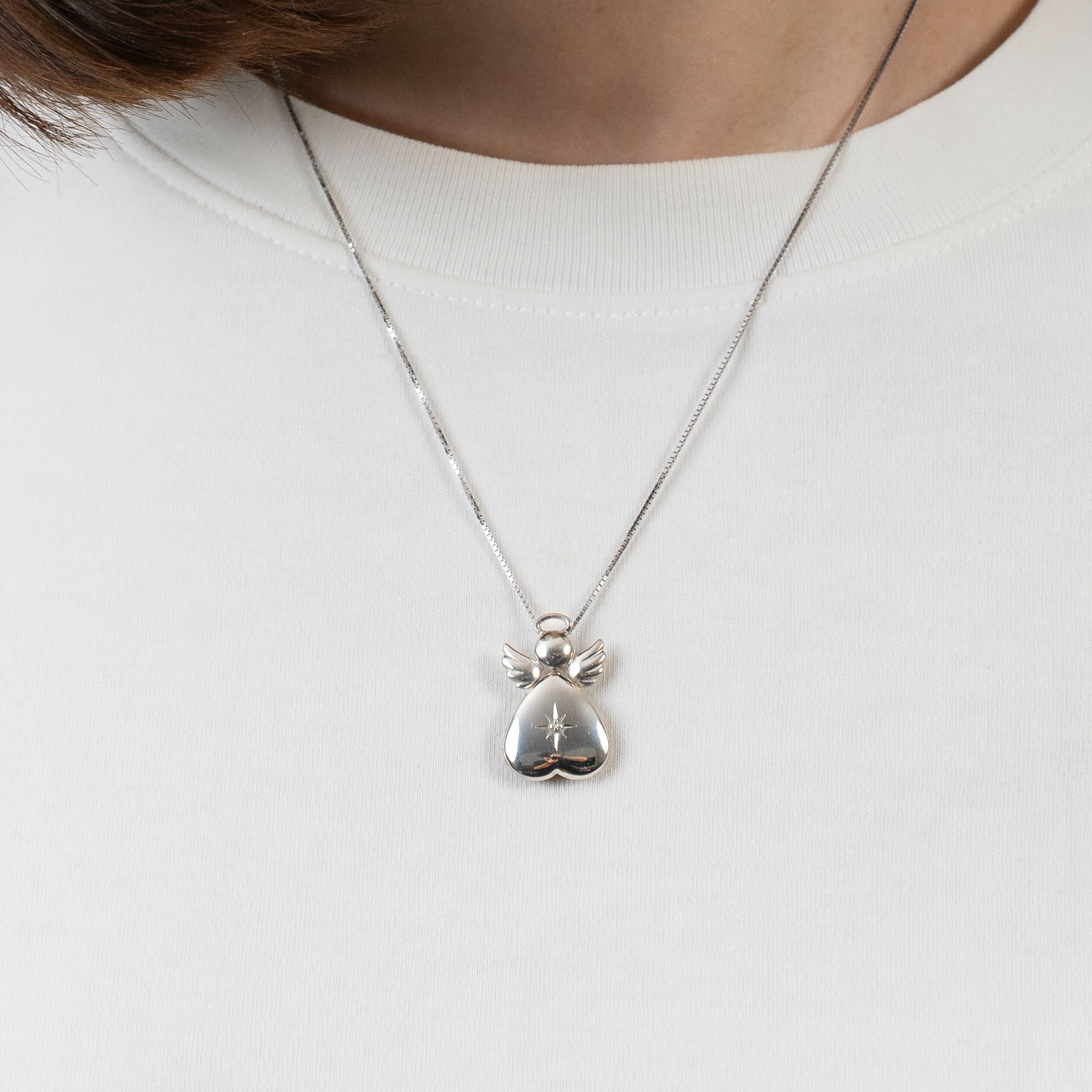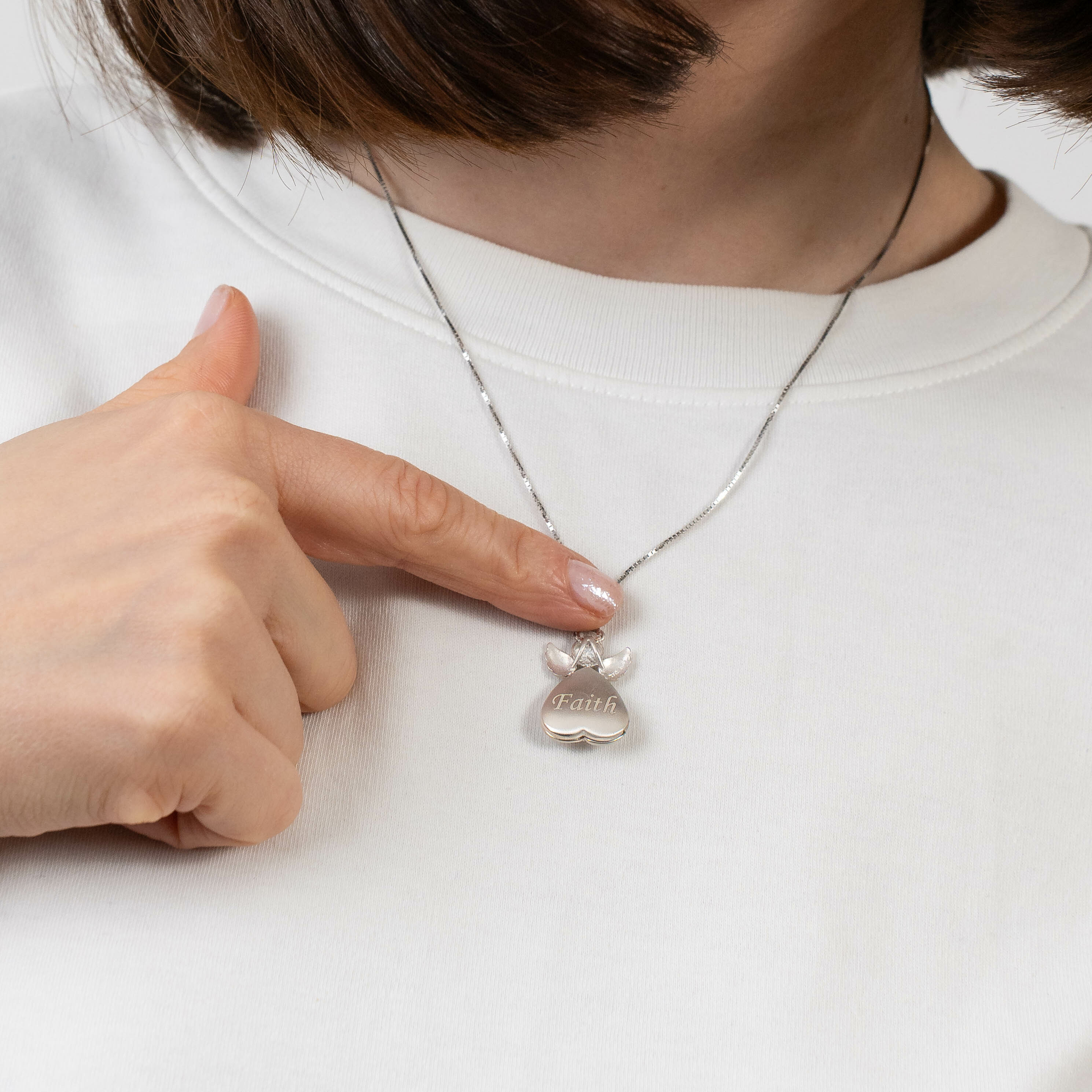 Medalion inger cu poze in interior - Golden Angel - Argint 925 Rodiat - Cristal White Zirconia