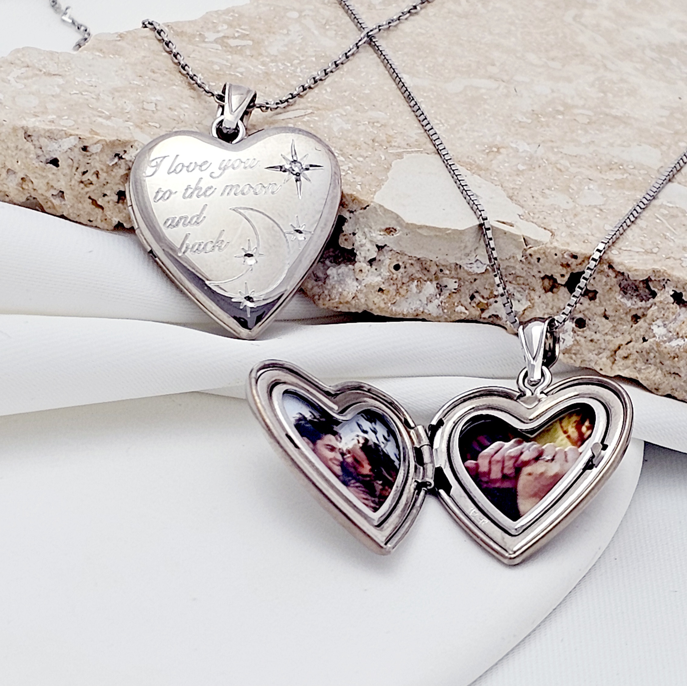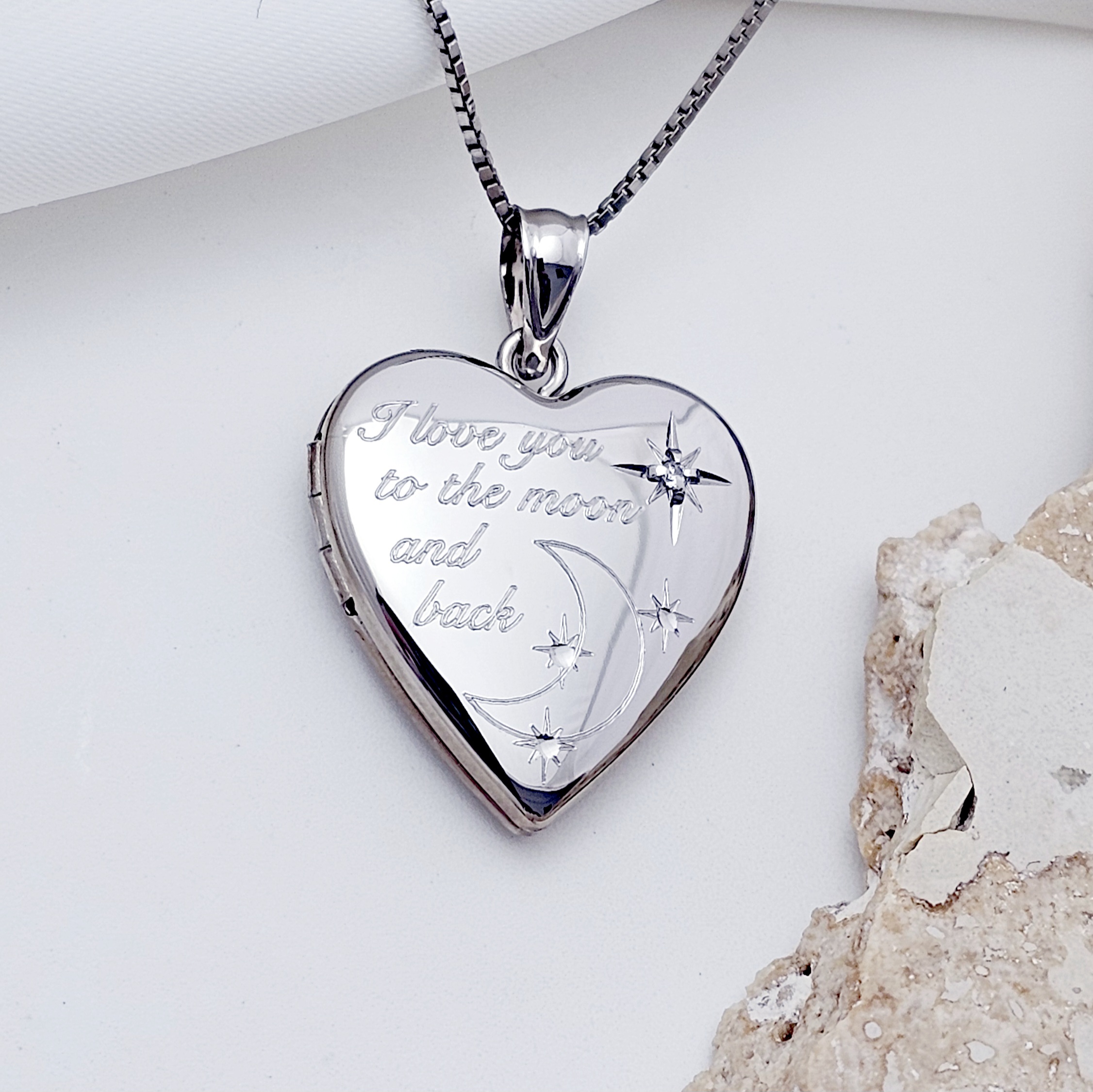 Medalion inima cu poze in interior - I love you to the moon and back - Argint 925 Rodiat