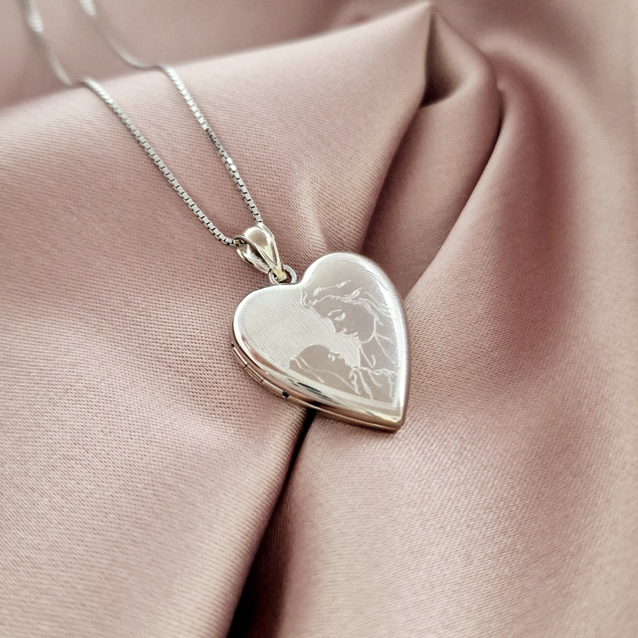 Medalion inima cu poze in interior - Mother&Child - Argint 925 Rodiat