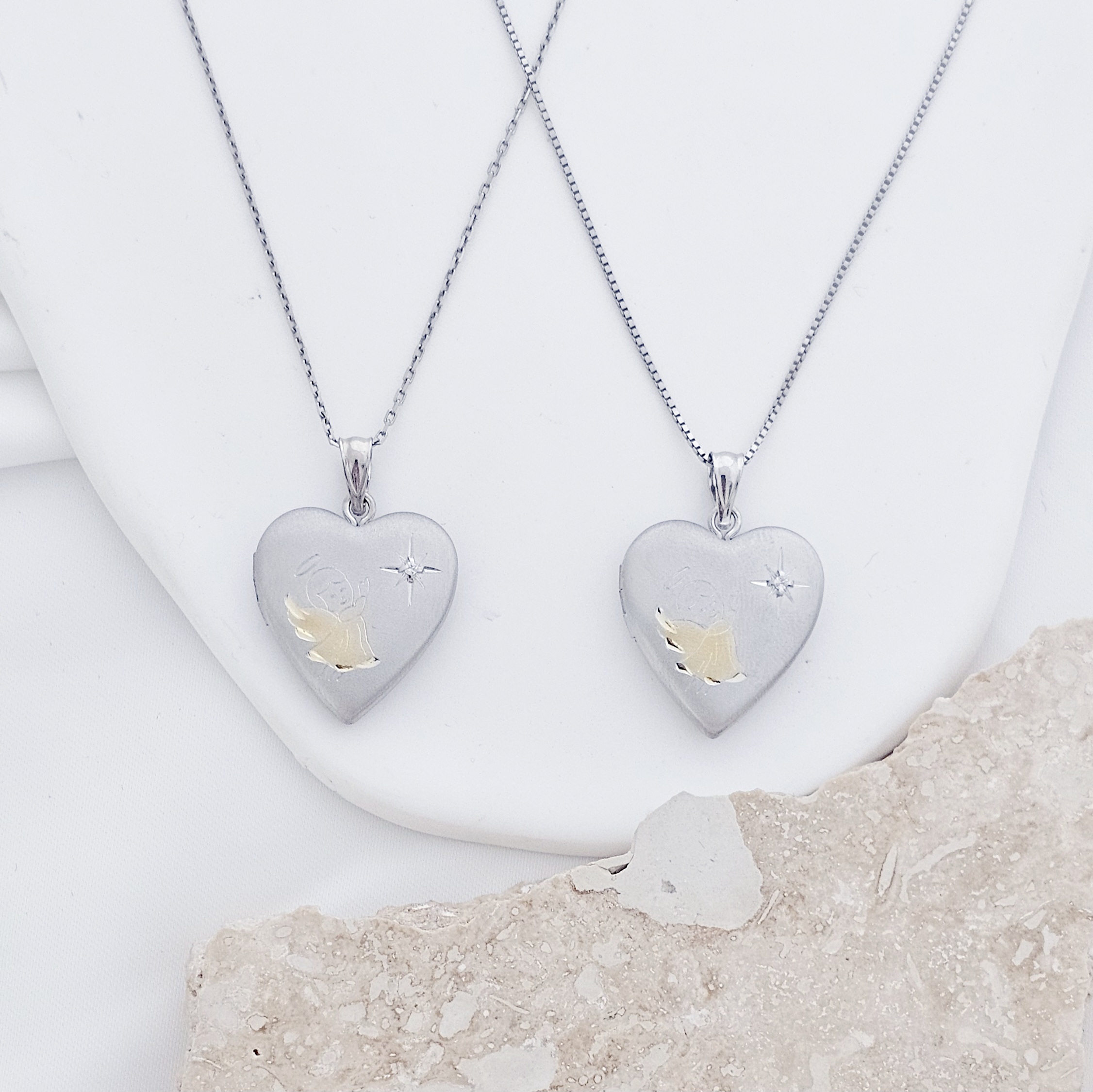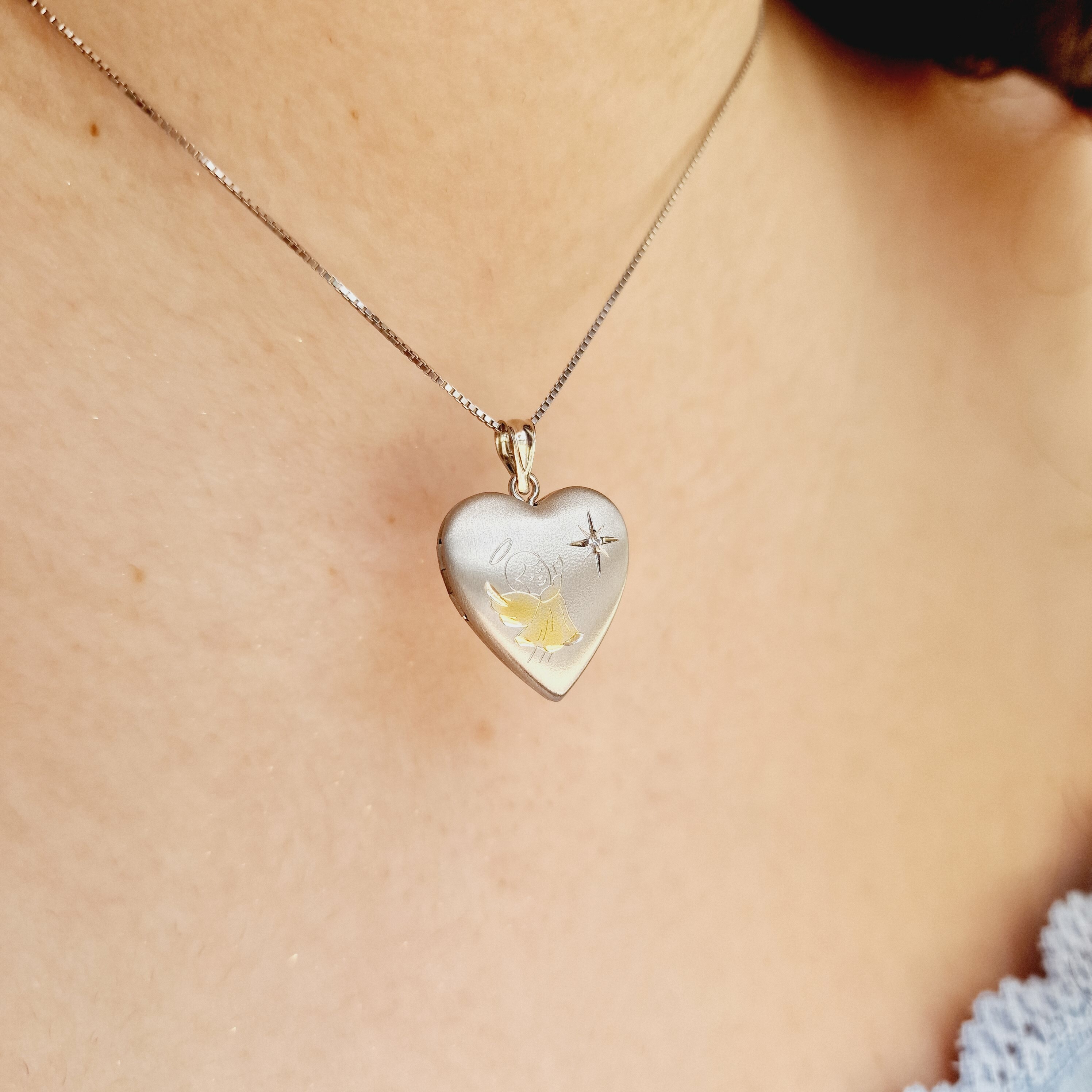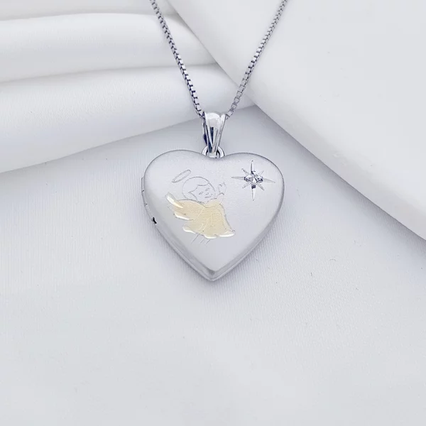 Medalion inima cu poze in interior - Praying Angel - Argint 925 rodiat & haina placata cu Aur Galben 18K - Cristal White Zirconia