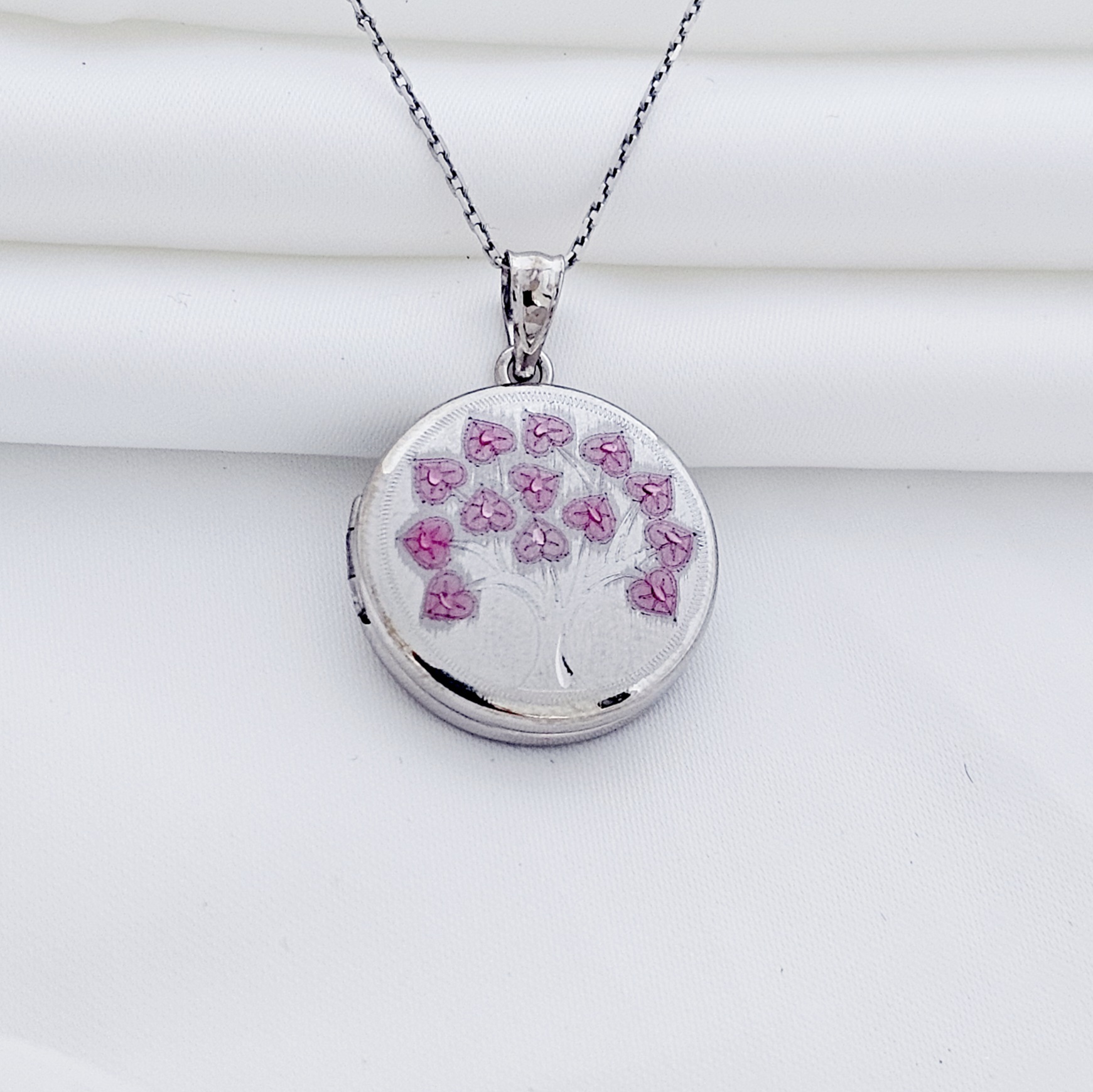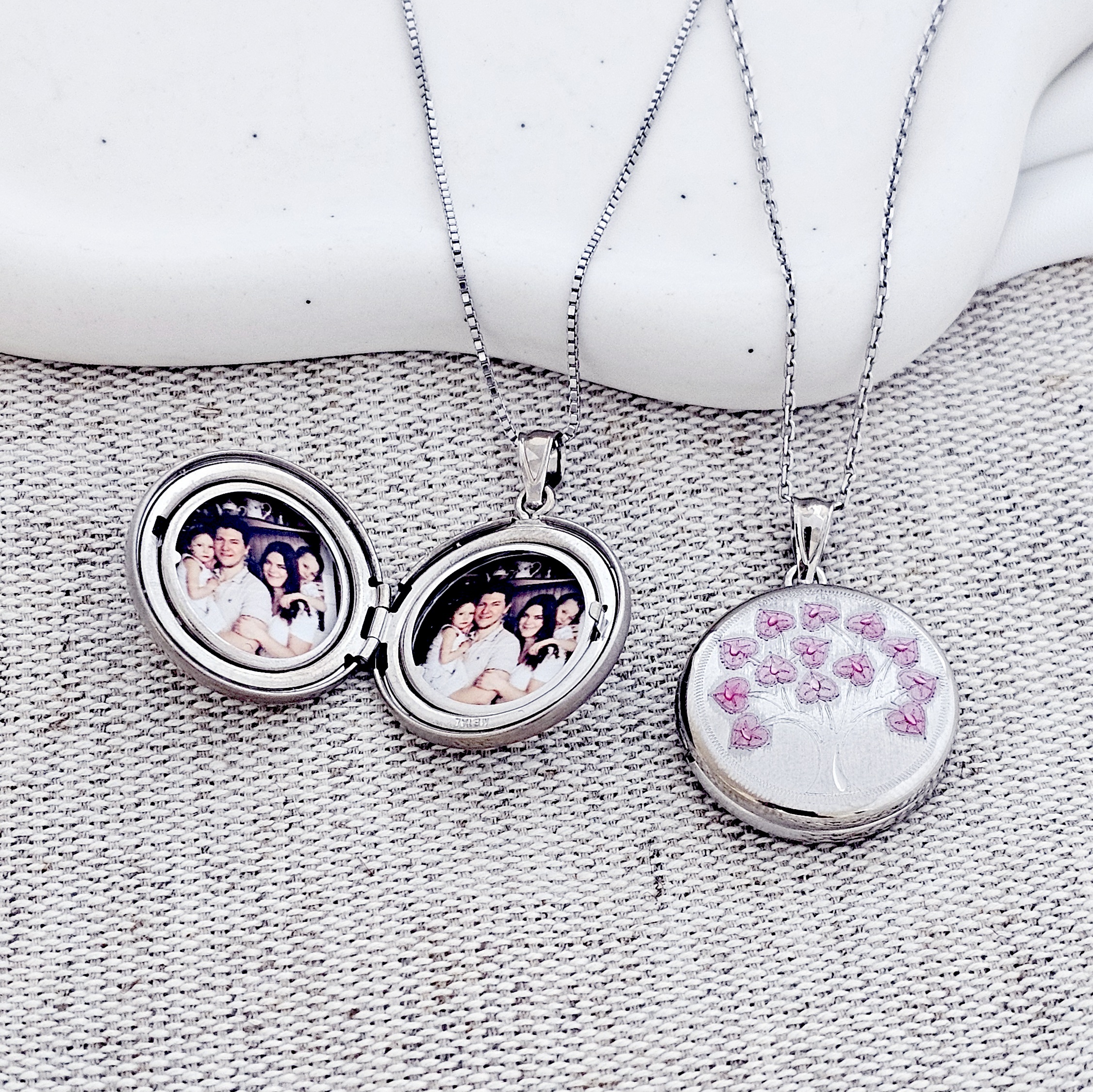 Medalion rotund cu poze in interior - Tree of Love - Argint 925 Rodiat