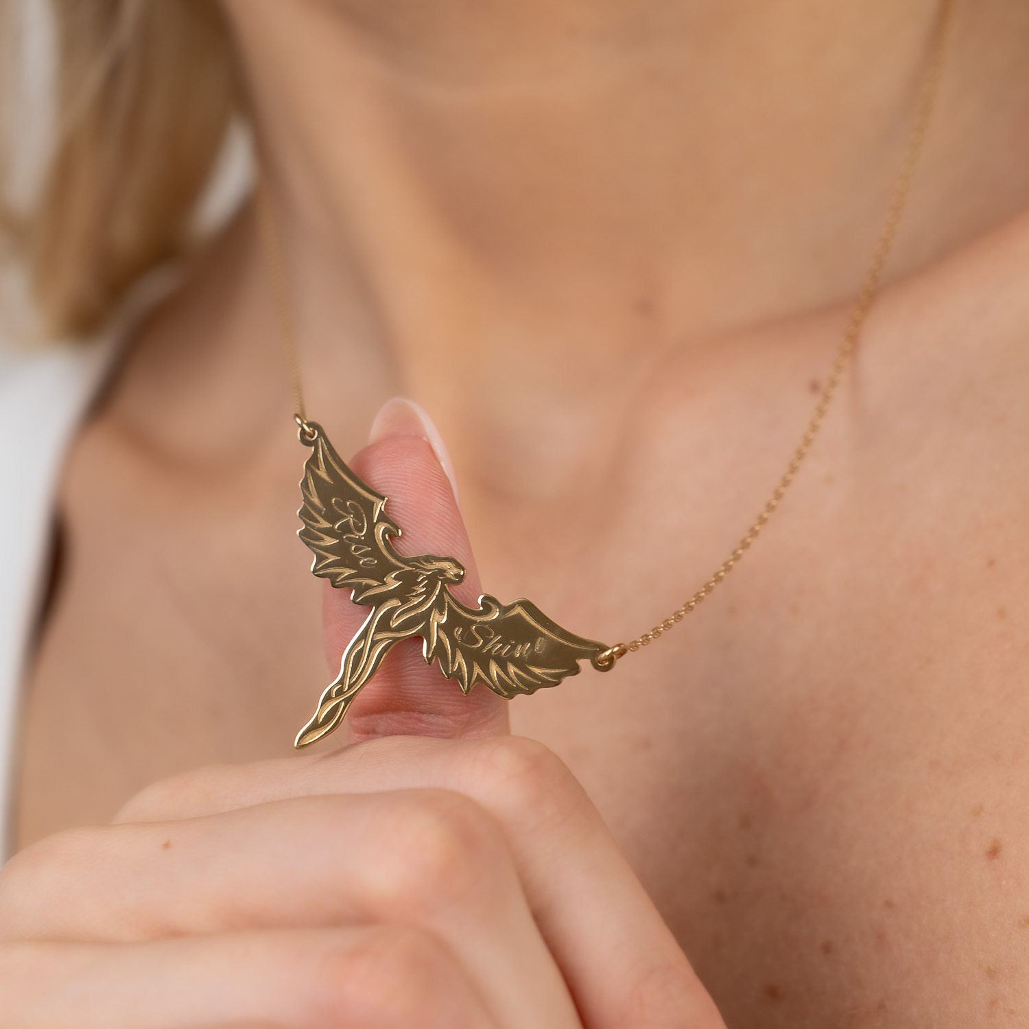 Lantisor Rise&Shine - Pandantiv pasarea Phoenix - Argint 925 placat cu Aur Galben 18K