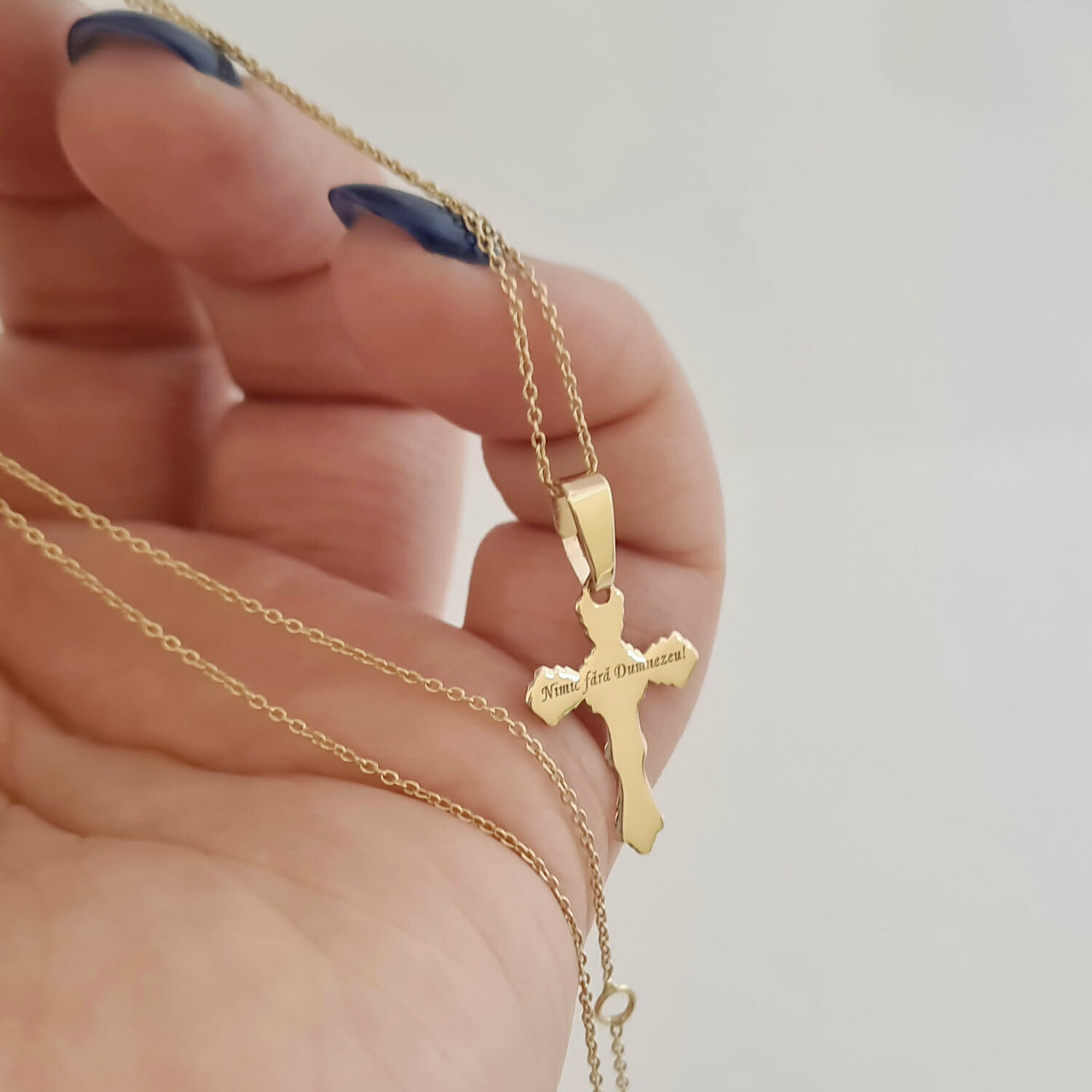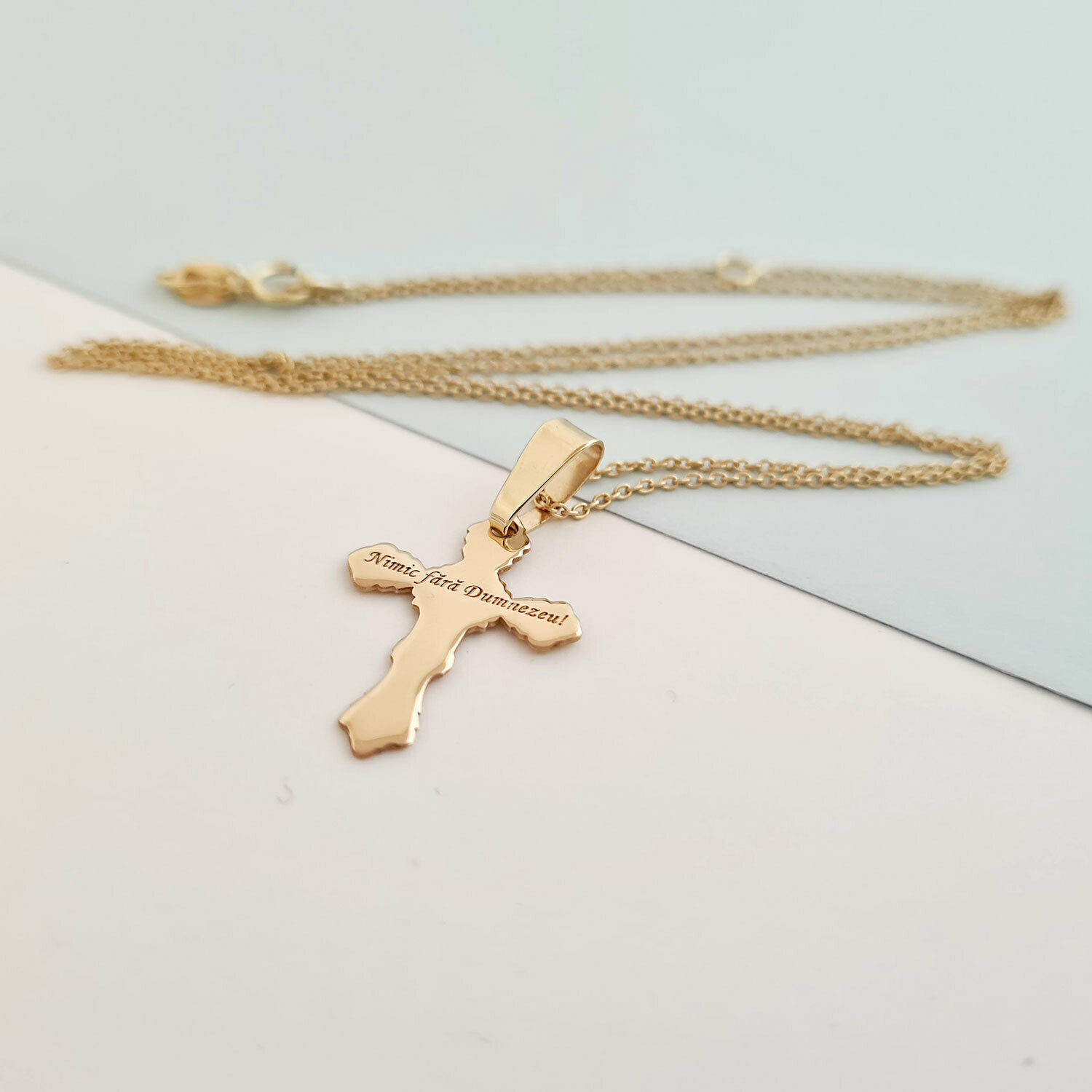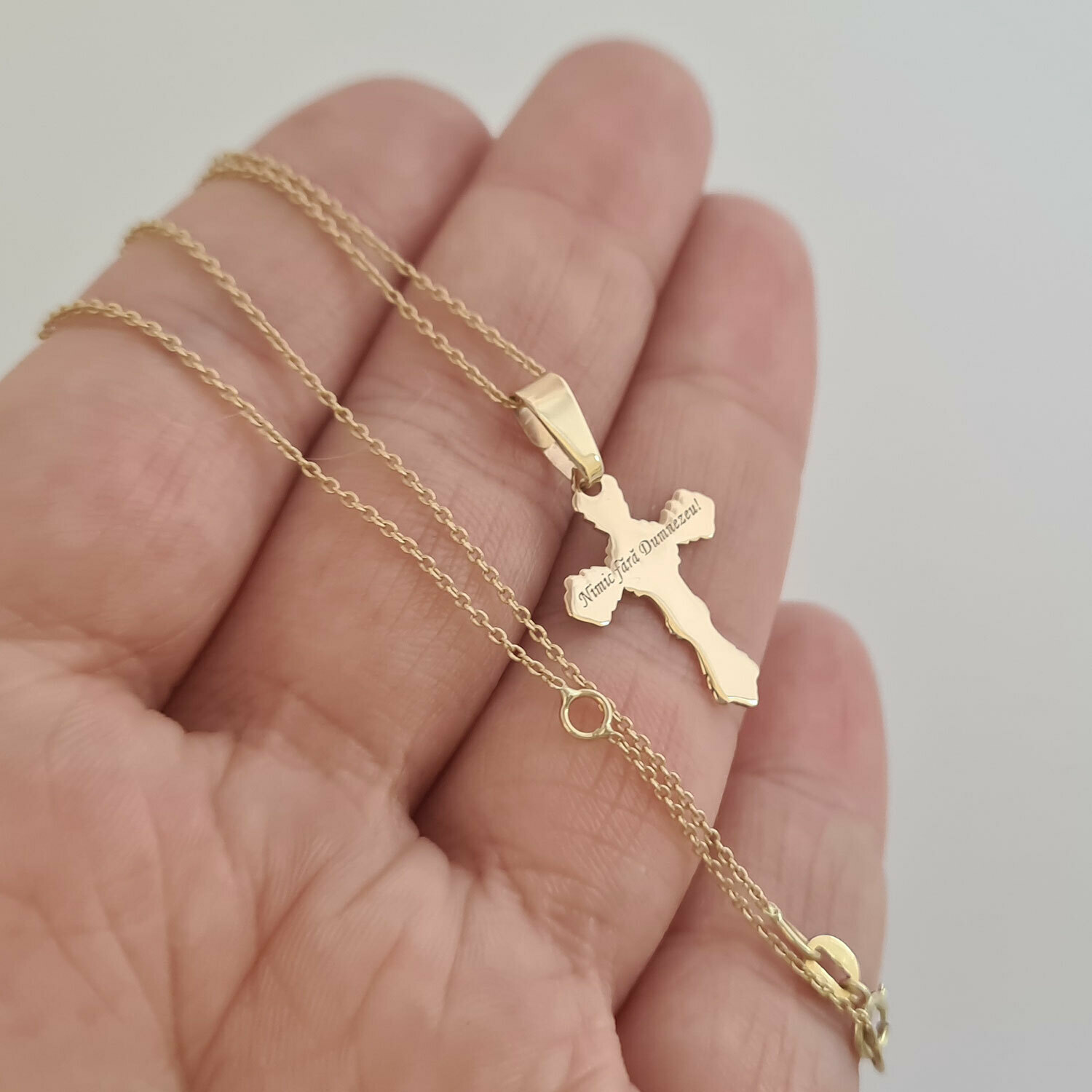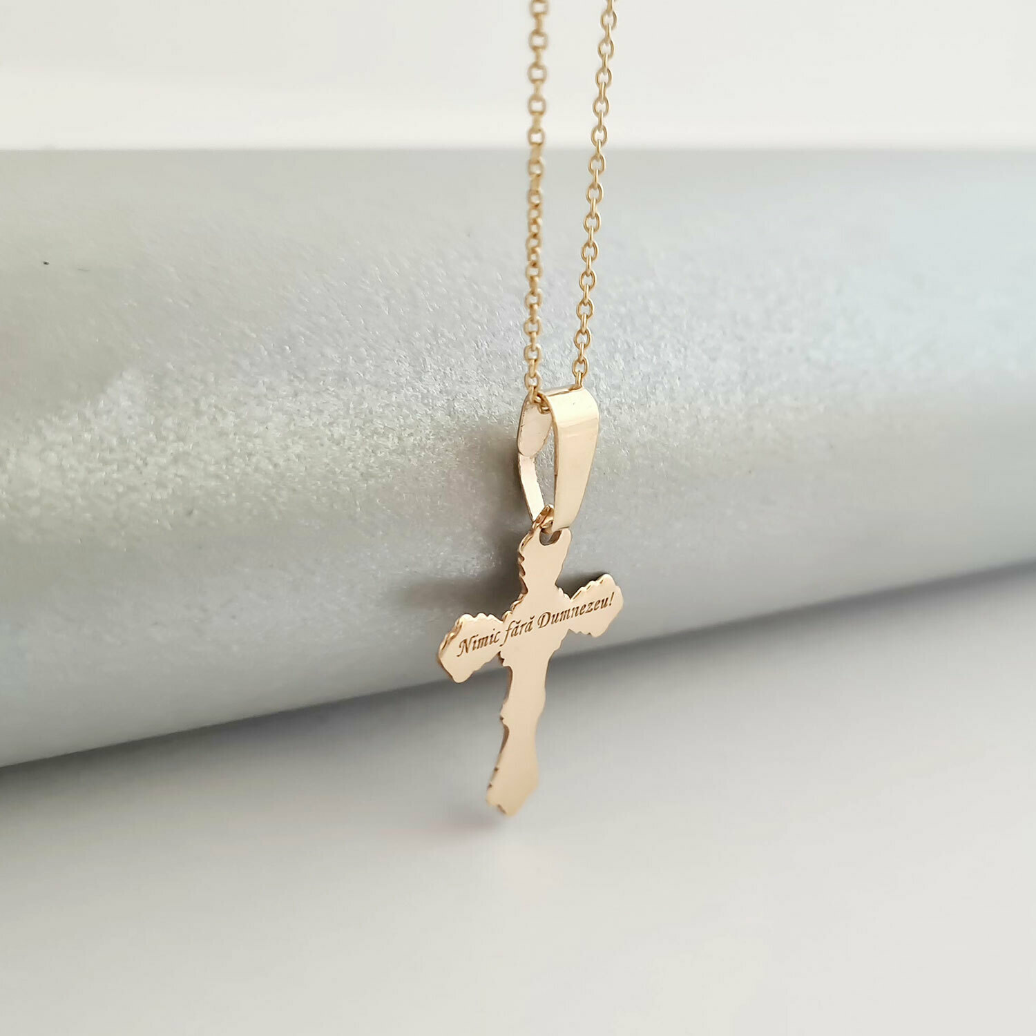 Lantisor cu pandantiv Cruce - Gravura personalizata - Aur Galben 14K