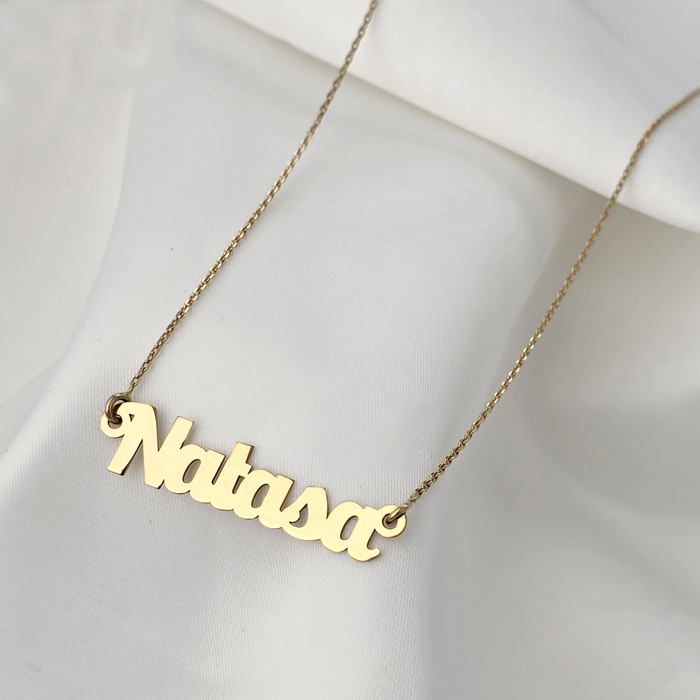 Lantisorul cu nume poate fi realizat din Aur 9K, Aur 14K (galben, alb sau roz) sau din Argint 925, clasic, rodiat sau placat cu Aur 18K (galben sau roz). Fiecare bijuterie este atent finisata manual, astfel incat sa te bucuri de un lantisor cu nume elegant, durabil si potrivit stilului tau personal.