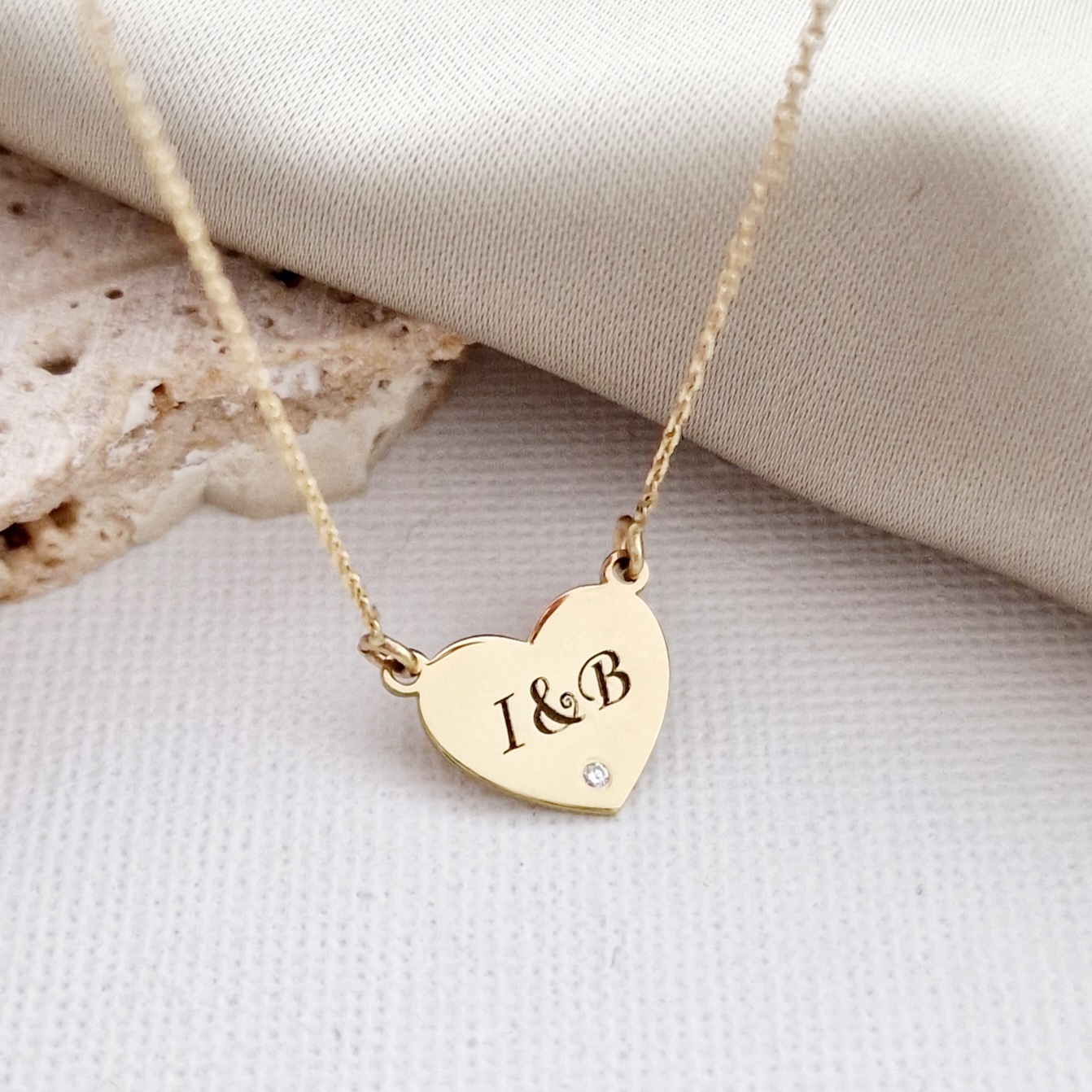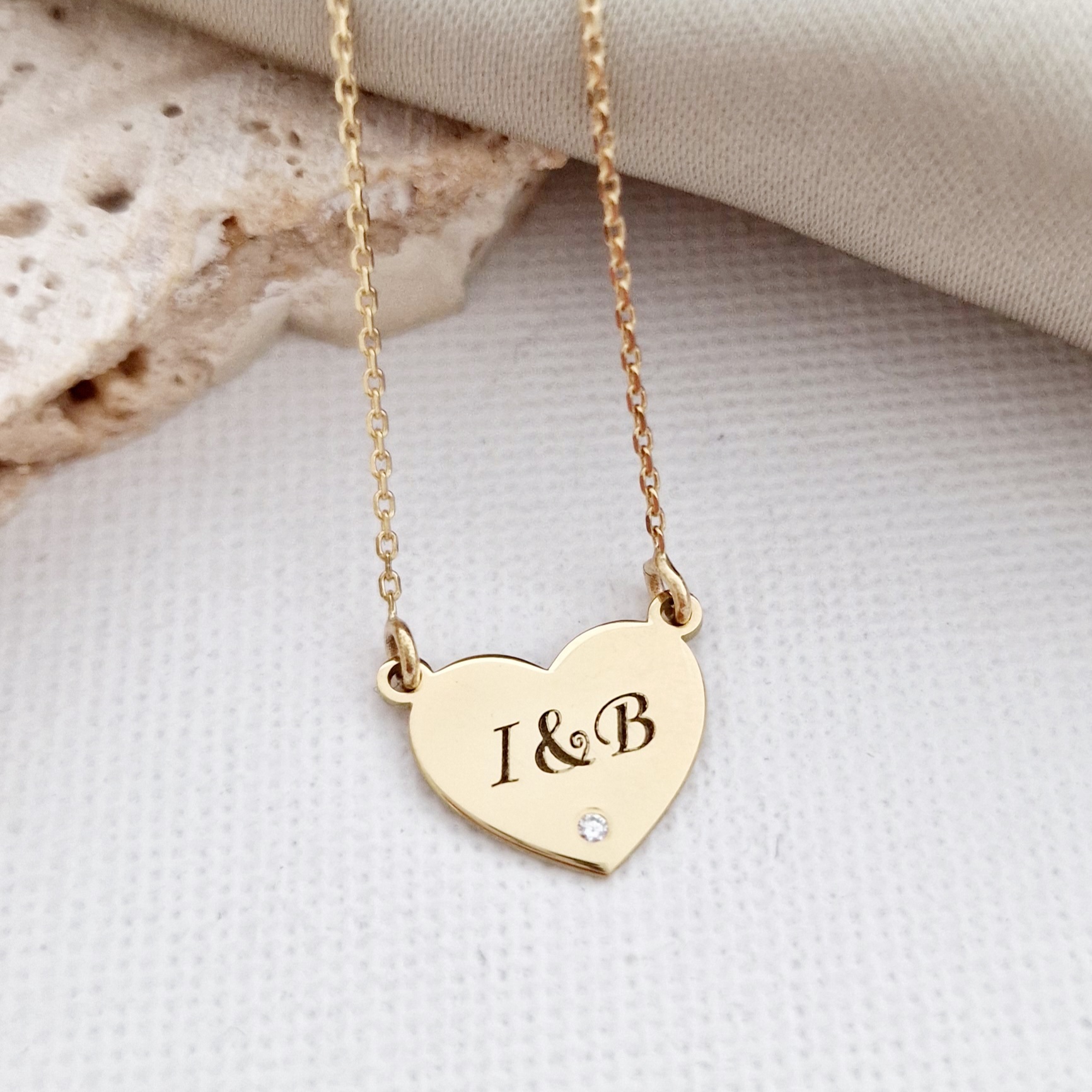 Lantisor personalizat cu Diamant natural - Inima 12 mm - Aur Galben 14K