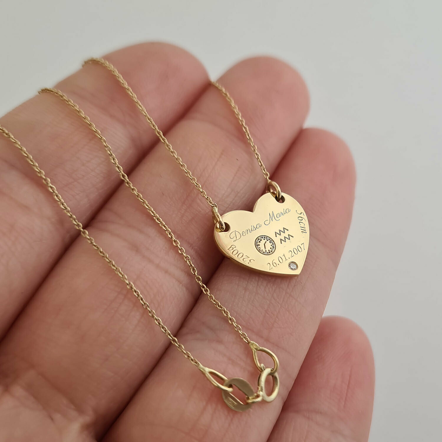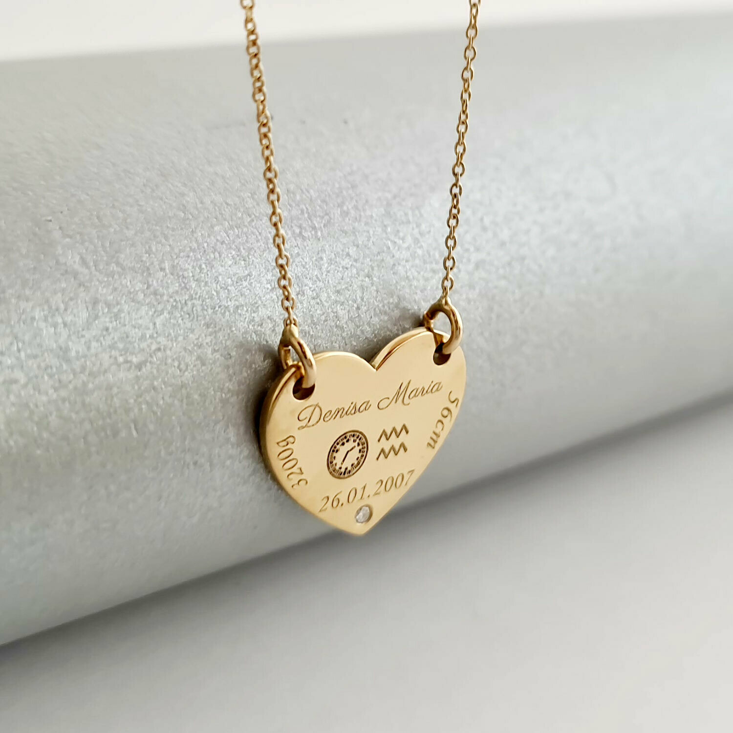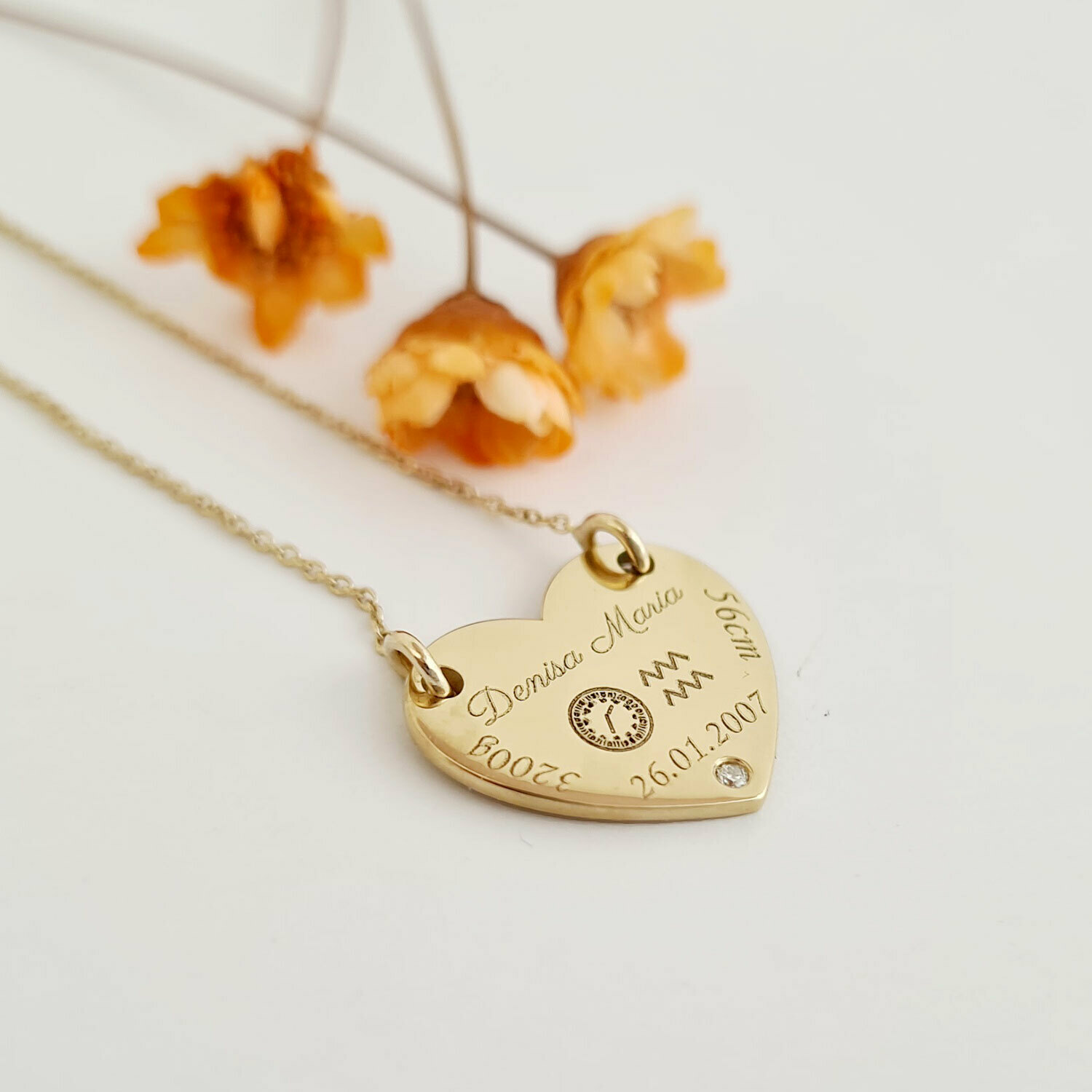 Fie ca este vorba de o mica printesa sau un mic print ce urmeaza sa primeasca taina botezului, marcheaza acest eveniment special asa cum se cuvine printr-un lantisor cu pandantiv personalizat care contine numele micutului/micutei, data si ora nasterii, zodia, precum si greutatea si inaltimea avuta la nastere.
