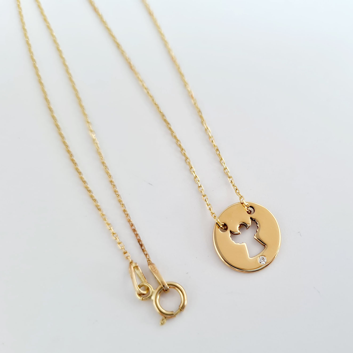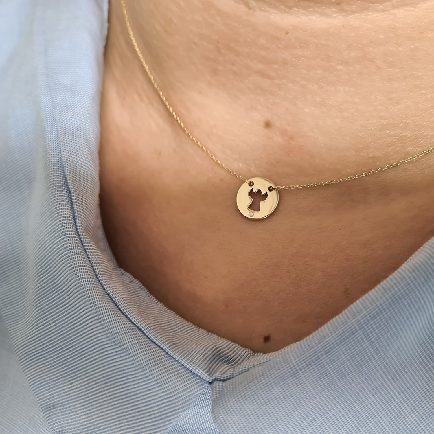 Lantisor personalizat cu Diamant natural - Pandantiv banut ingeras decupat - Aur Galben 14 K
